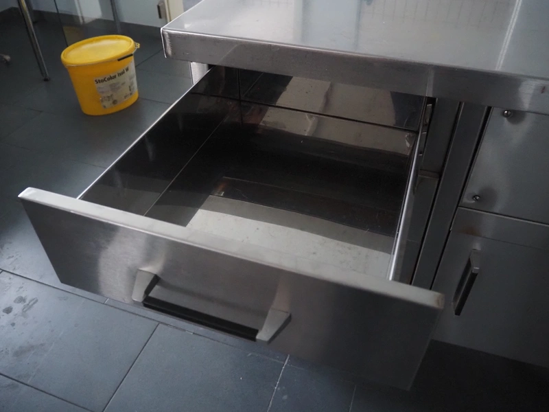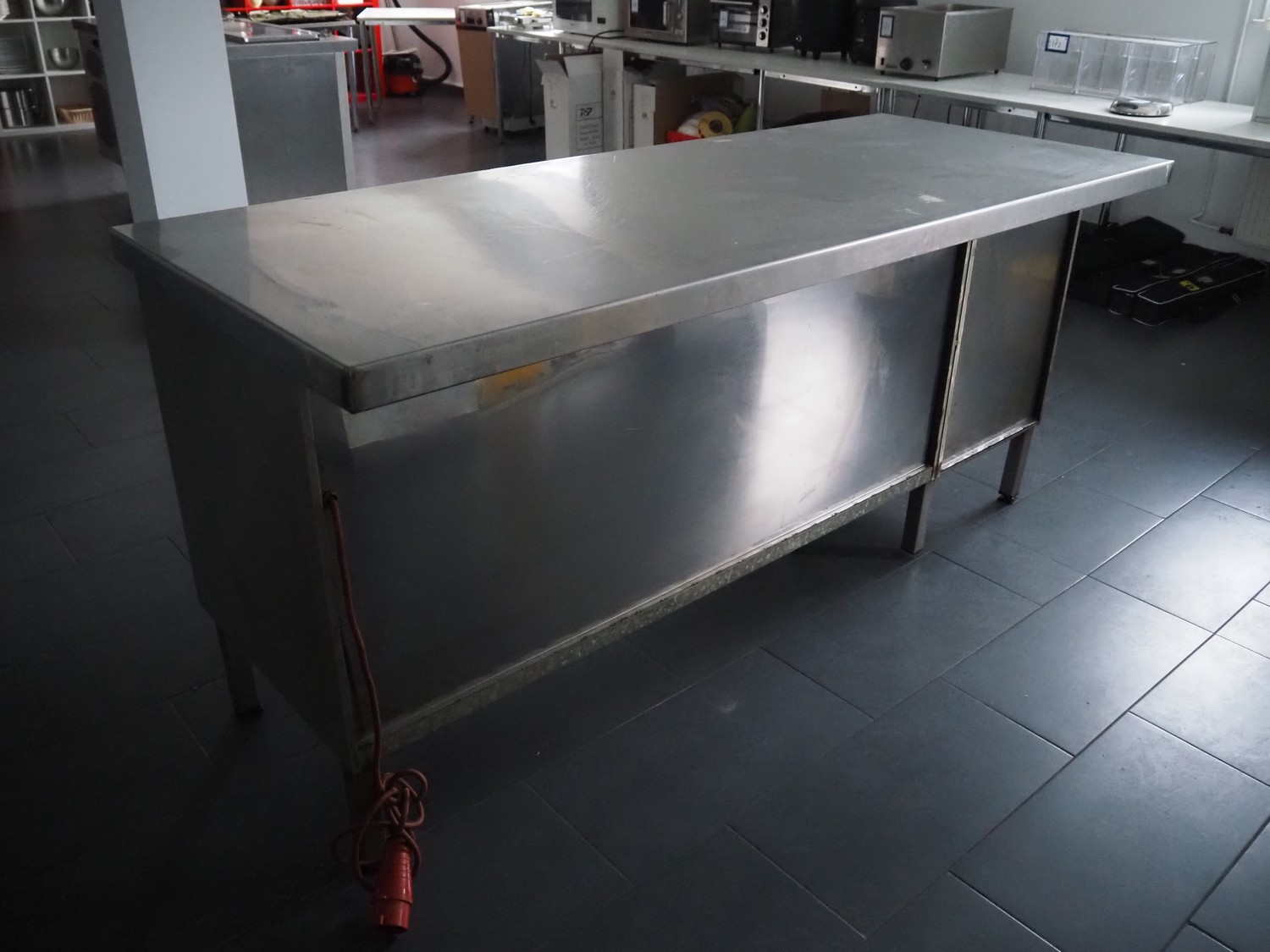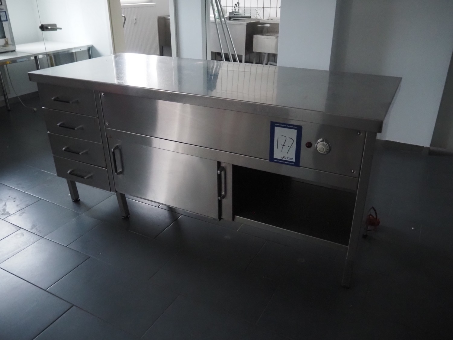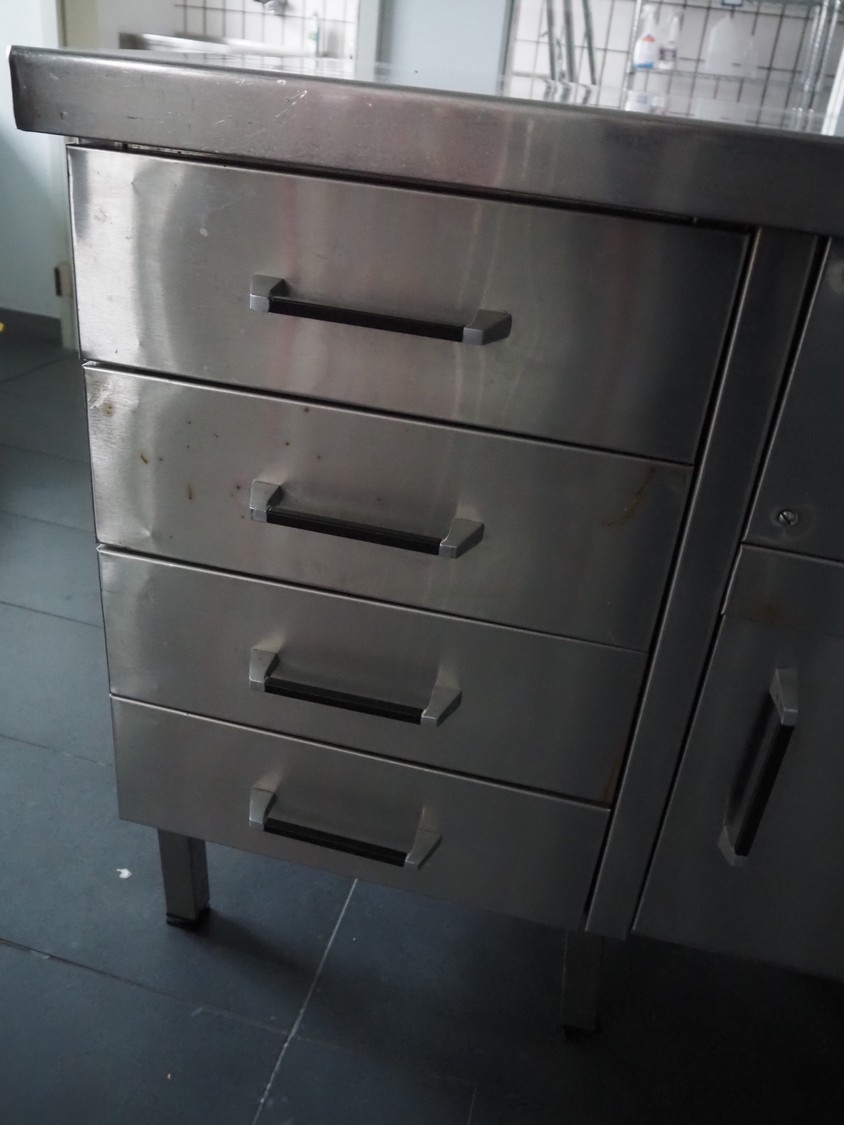 S/s heated cabinet, 4 drawers, total dimensions: 2000 mm x 800 mm x 920 mm.