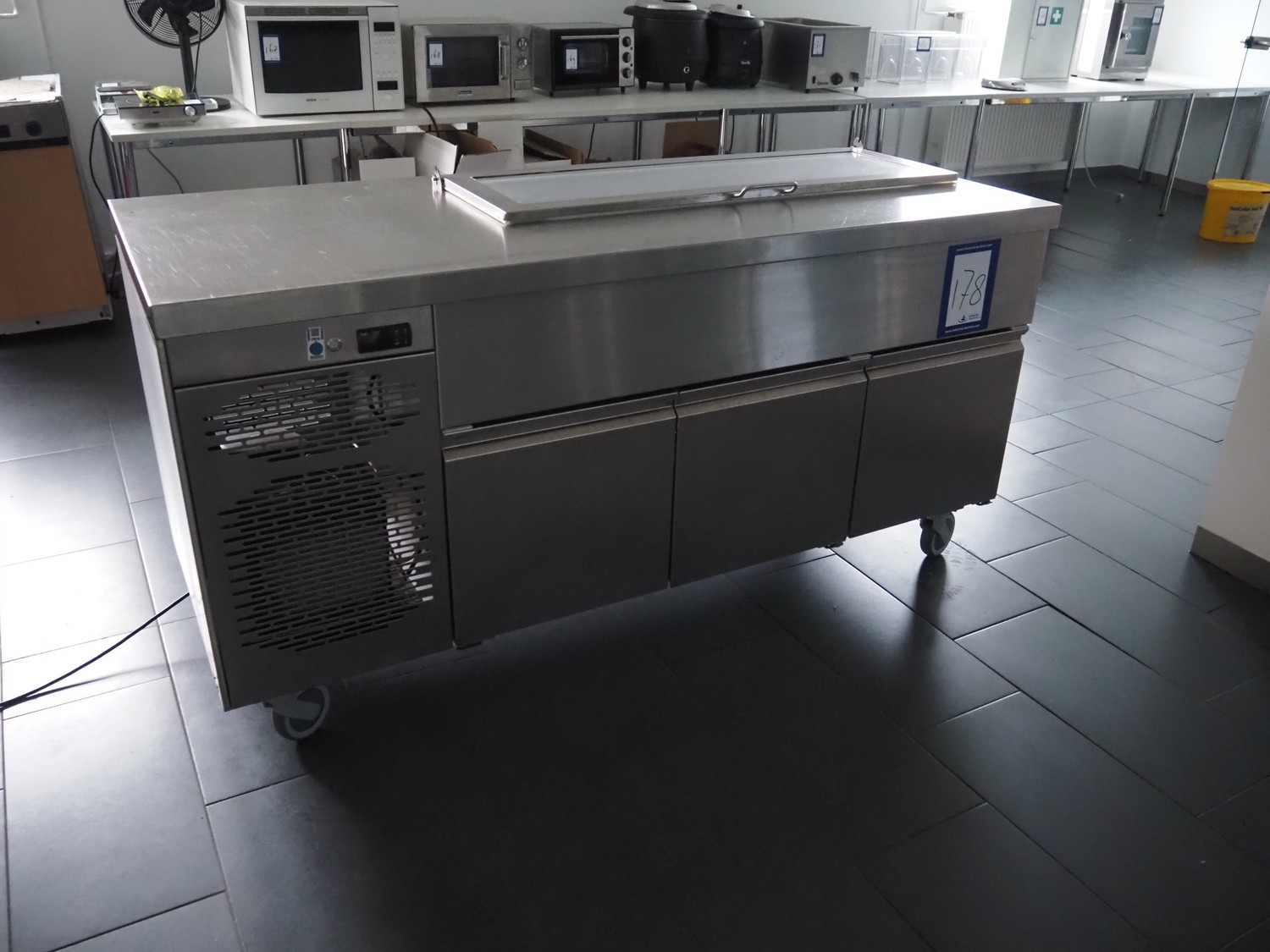 S/s mobile cooled cabinet, 3 drawers, total dimensions: 1750 mm x 750 mm x 900 mm.