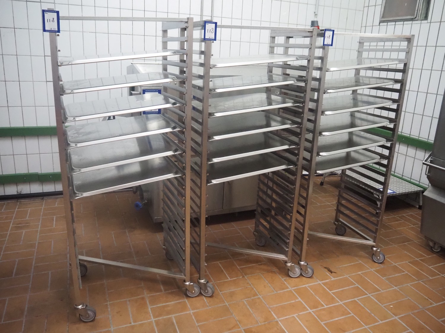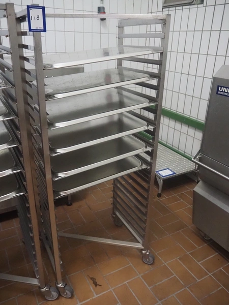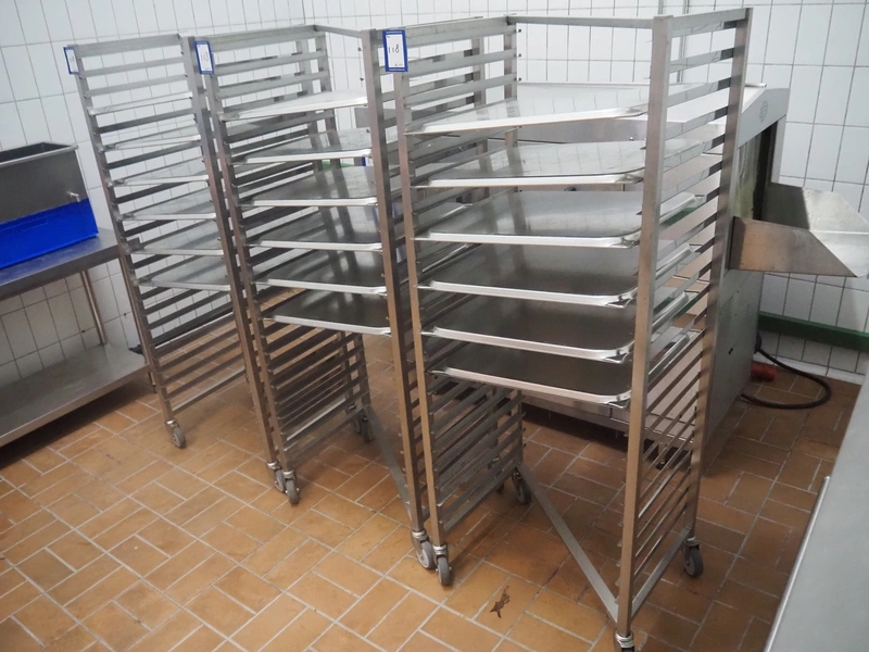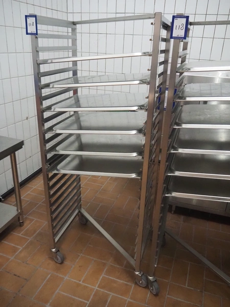 3 s/s trolleys with plates, (3x) 22 floors, plate dimensions: 640 mm x 530 mm, total dimensions: (3x) 720 mm x 540 mm x 1780 mm.