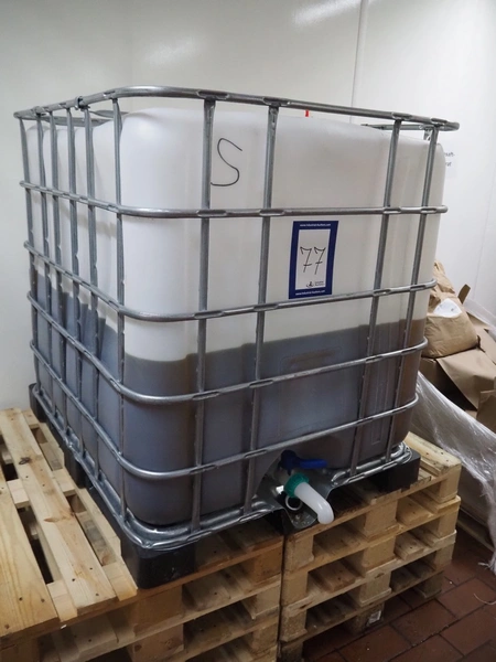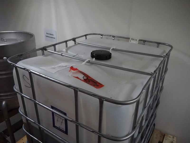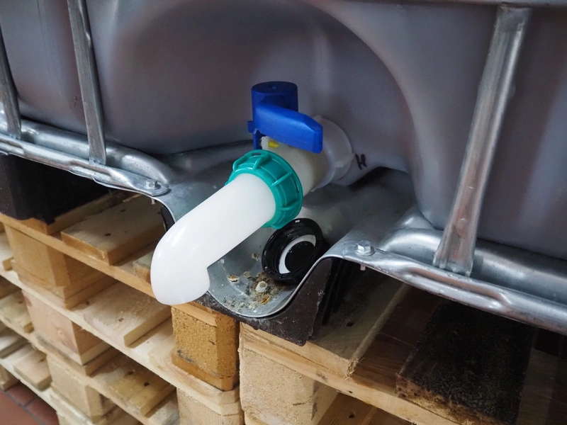 IBC tank, dimensions: 1200 mm x 1000 mm x 1170 mm.