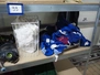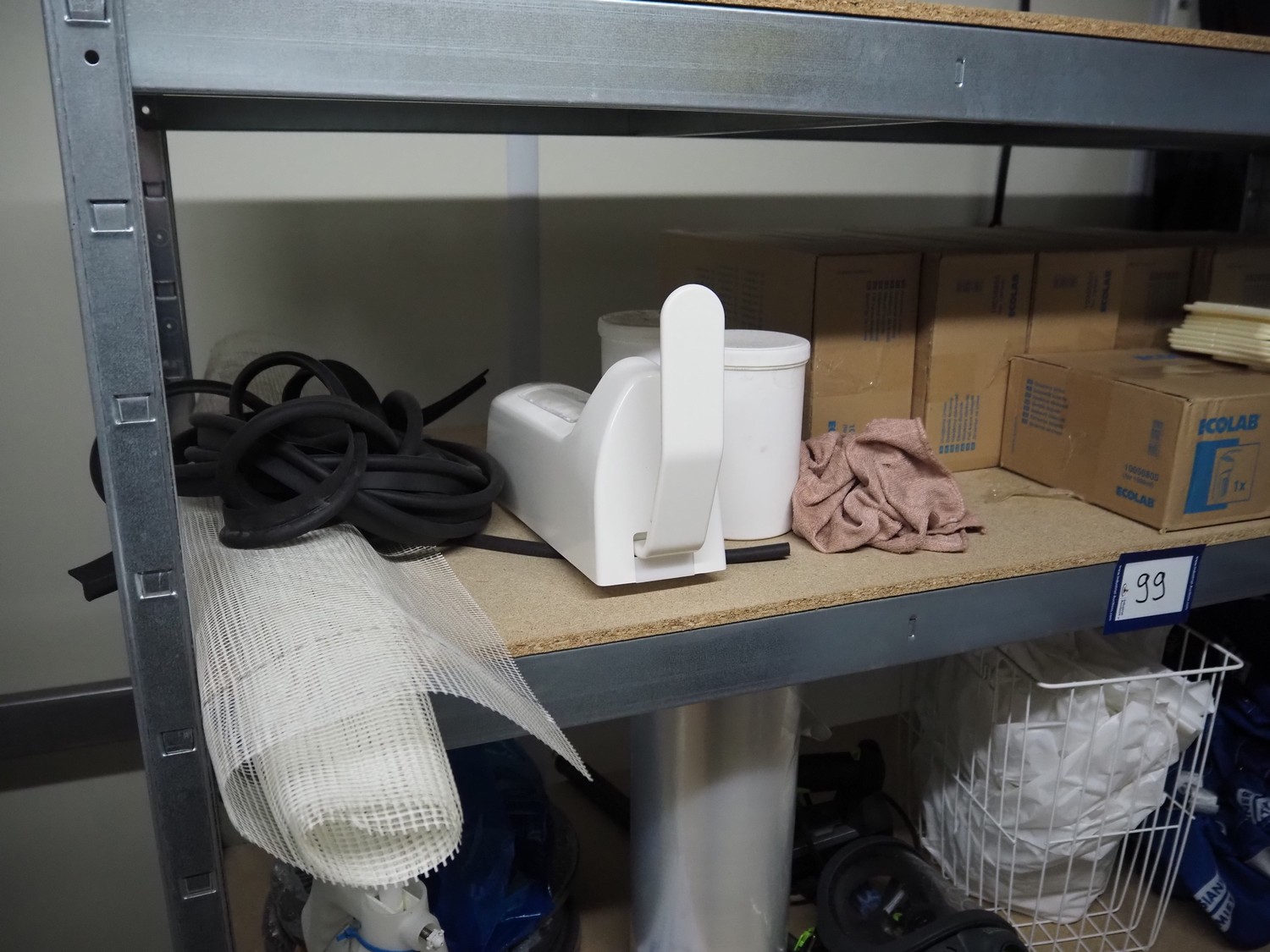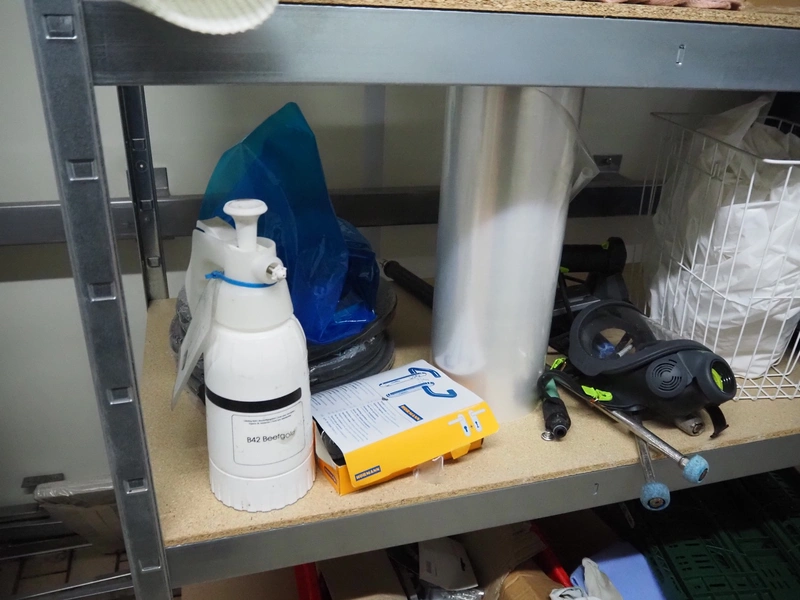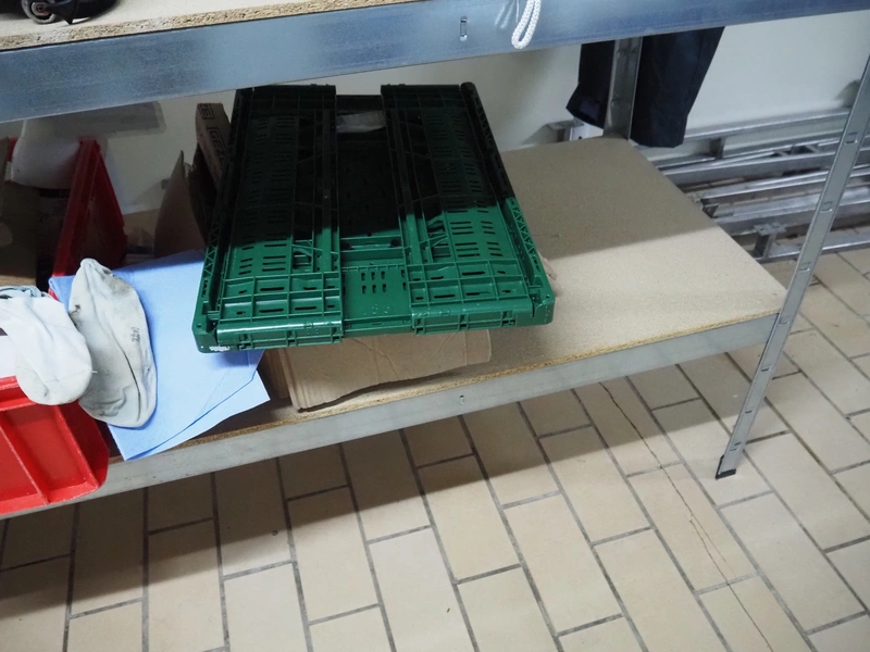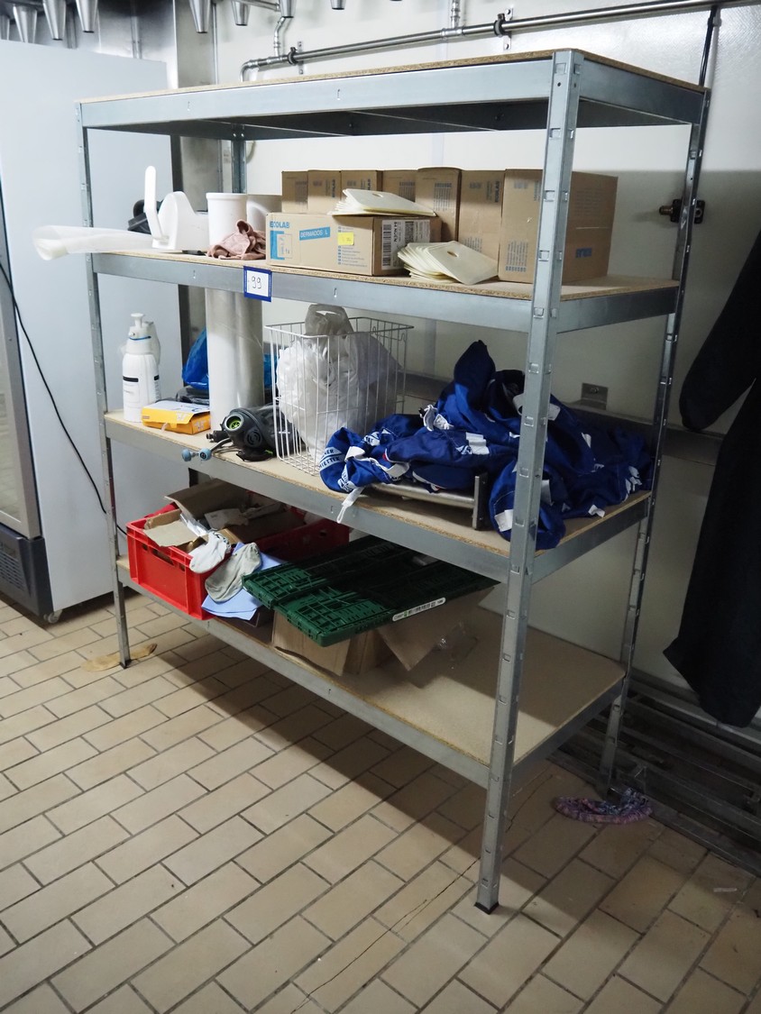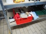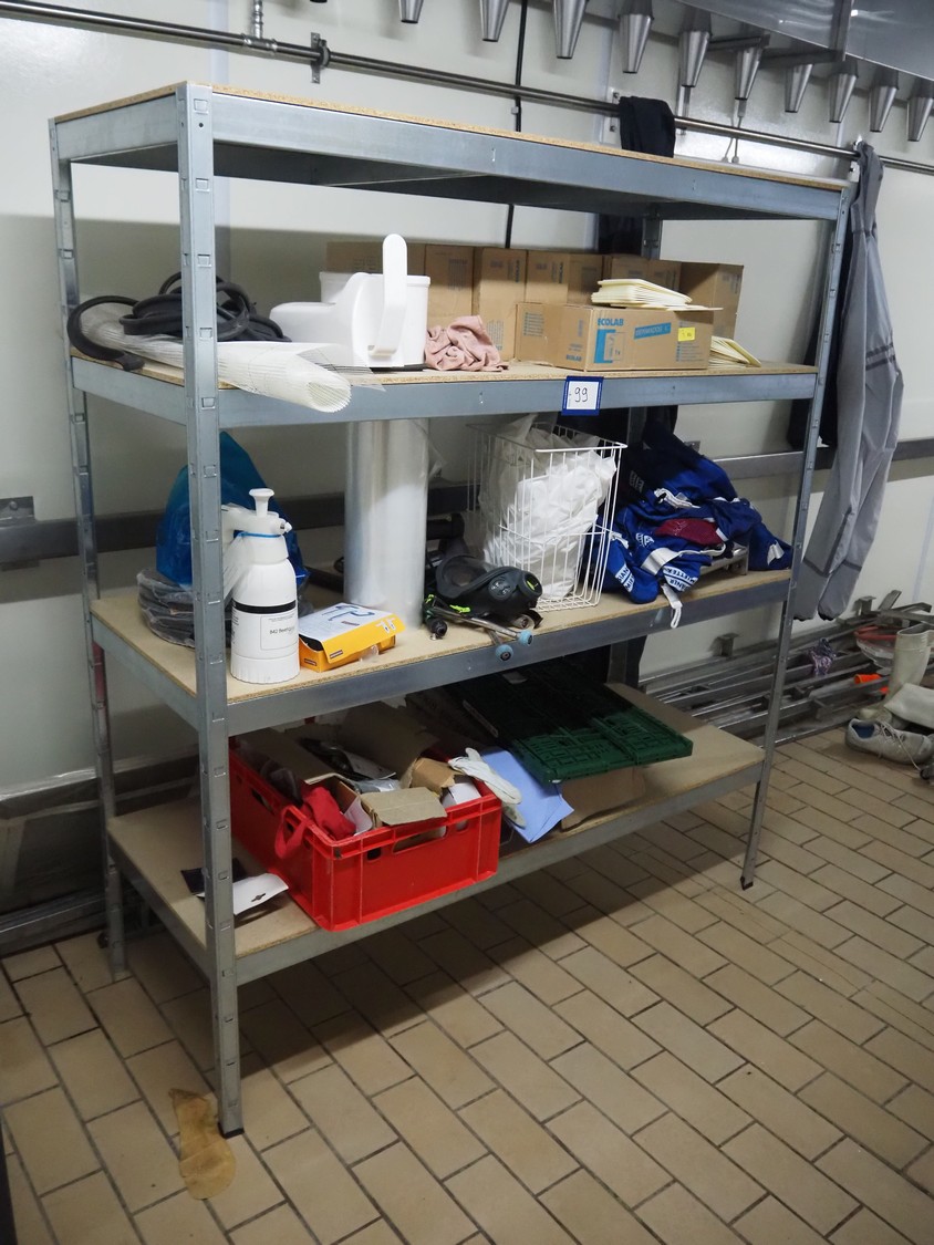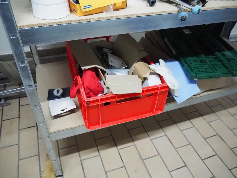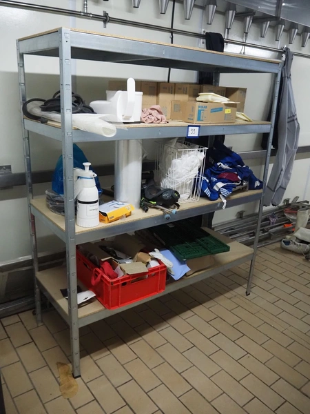 Aluminum rack with large amount of parts, 4 floors, dimensions: 1600 mm x 600 mm x 1810 mm.