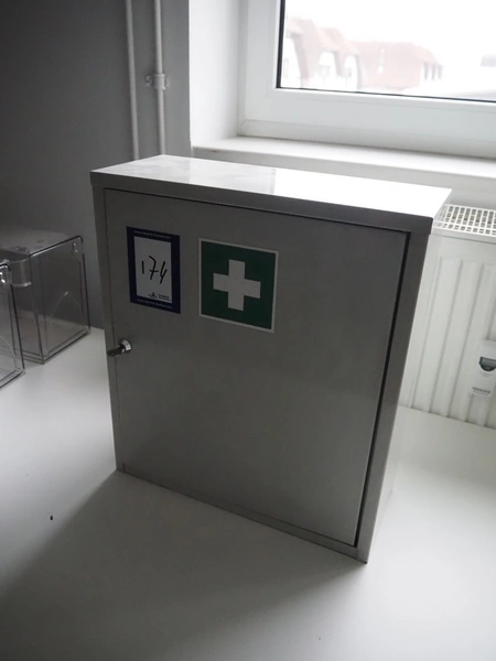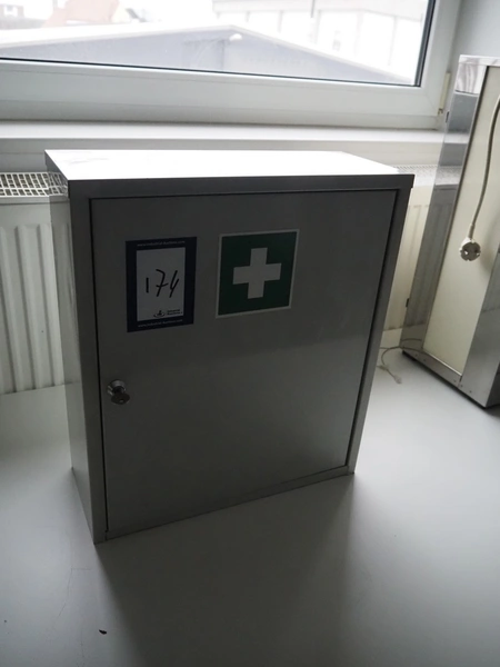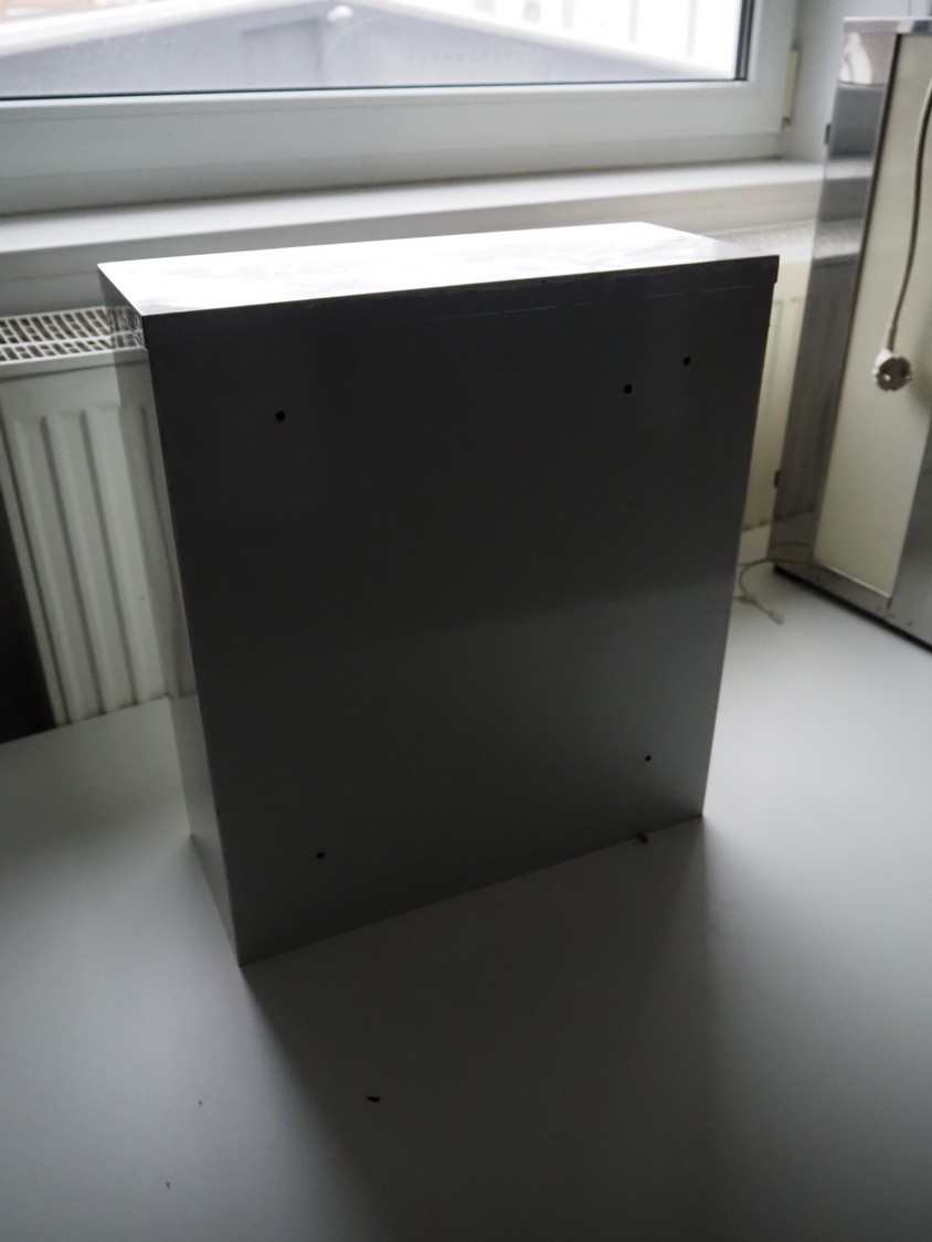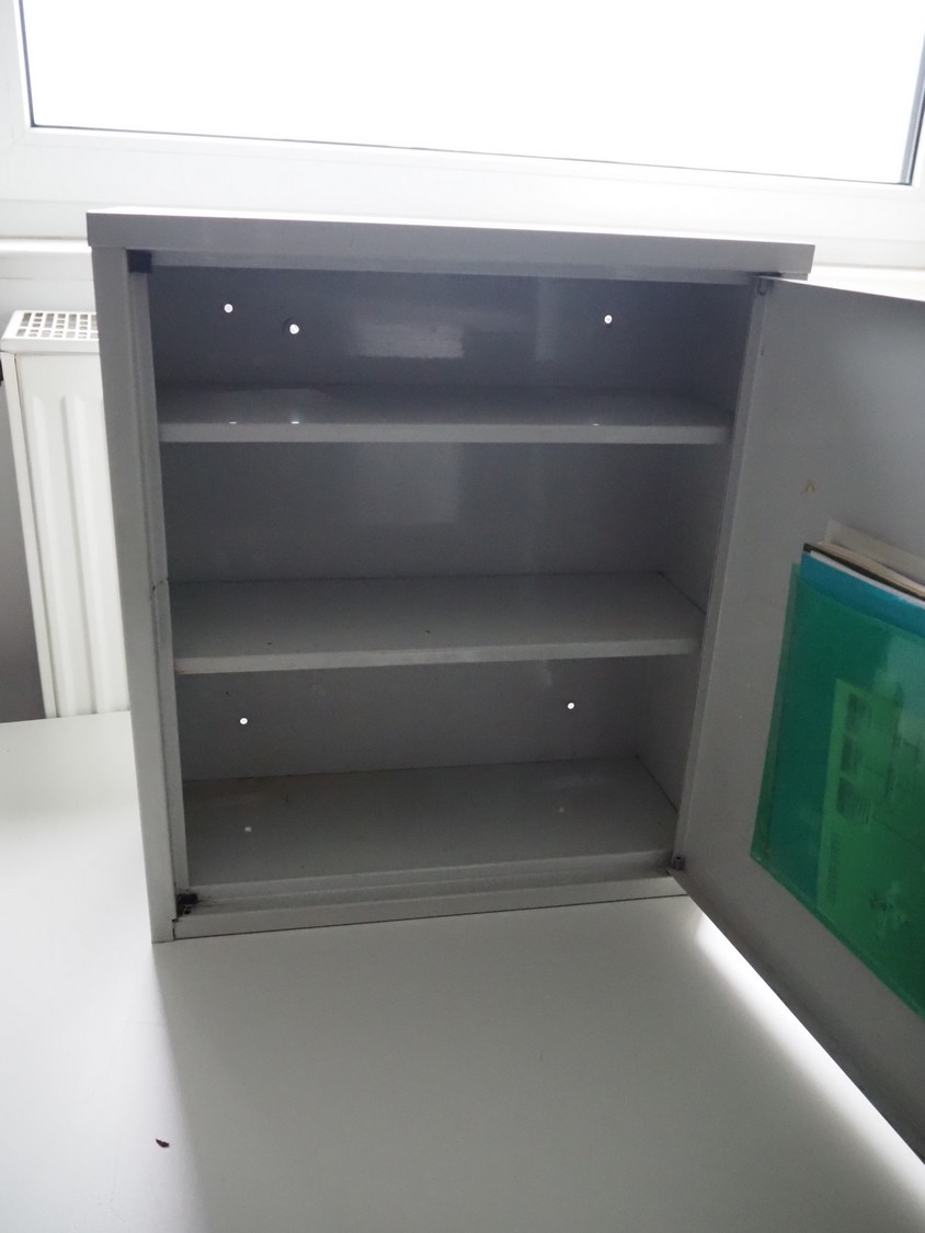 Steel wall mounted cabinet, dimensions: 170 mm x 400 mm x 460 mm.