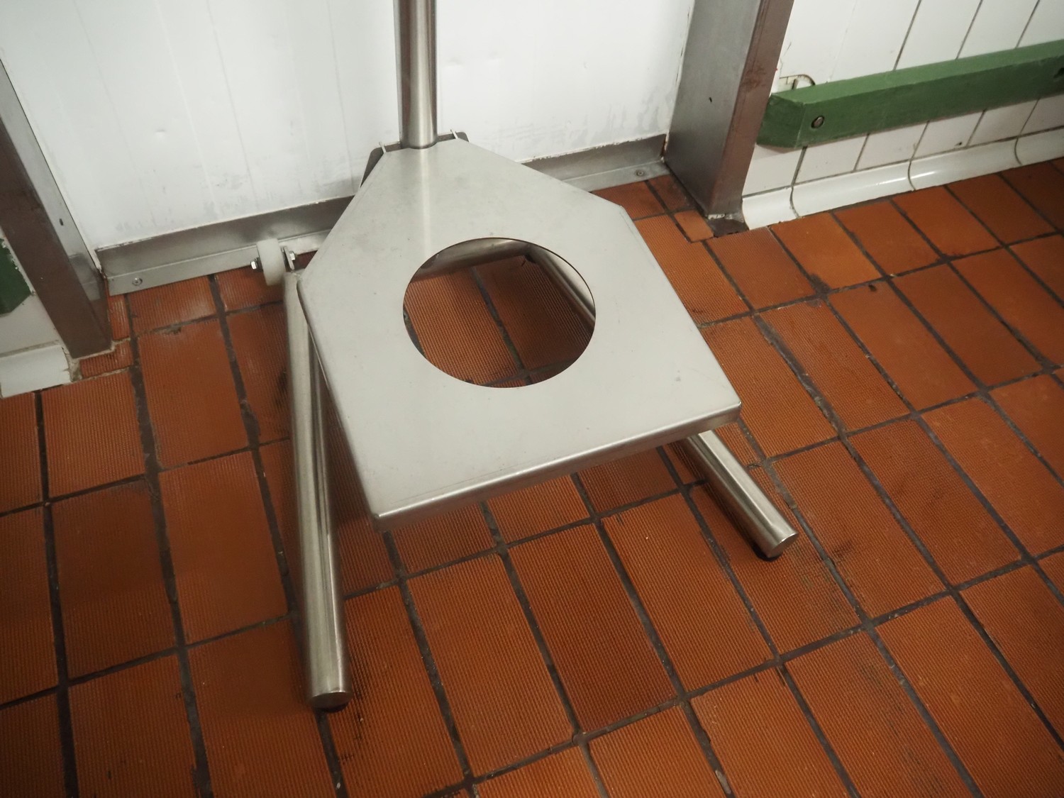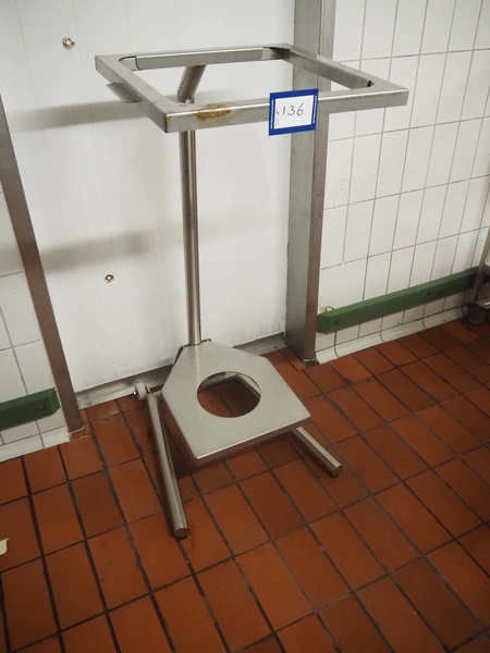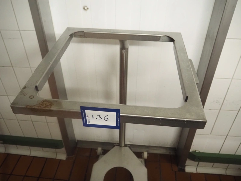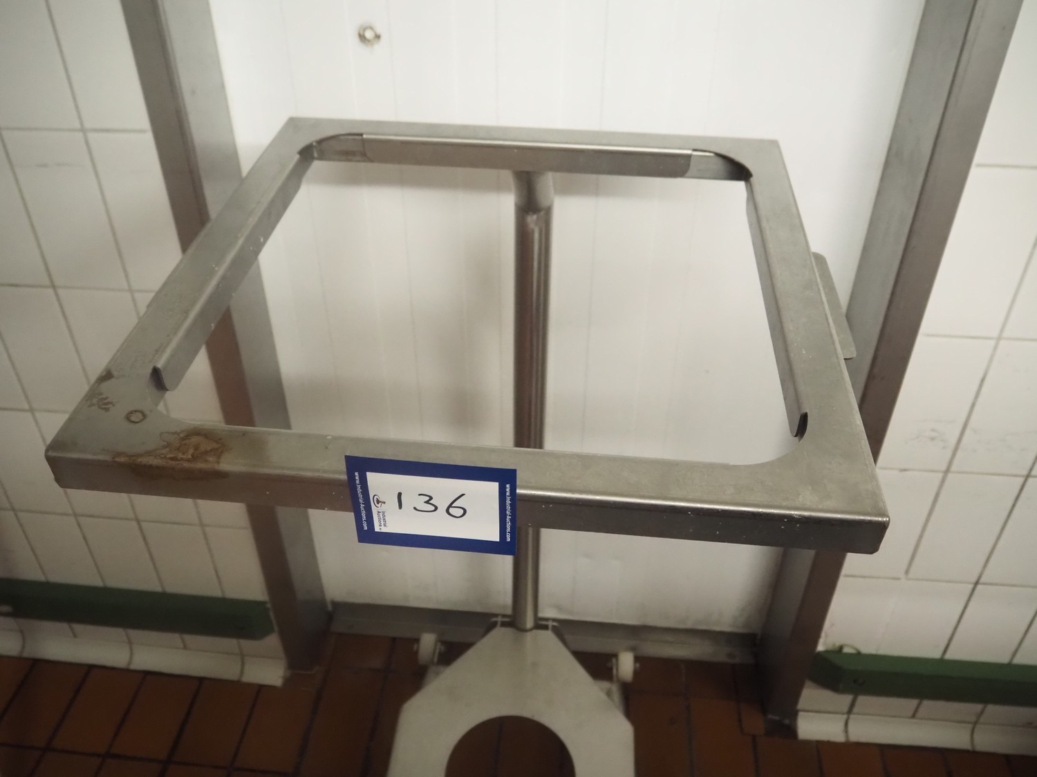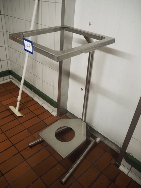 S/s mobile waste bag holder, dimensions: 700 mm x 600 mm x 1270 mm.