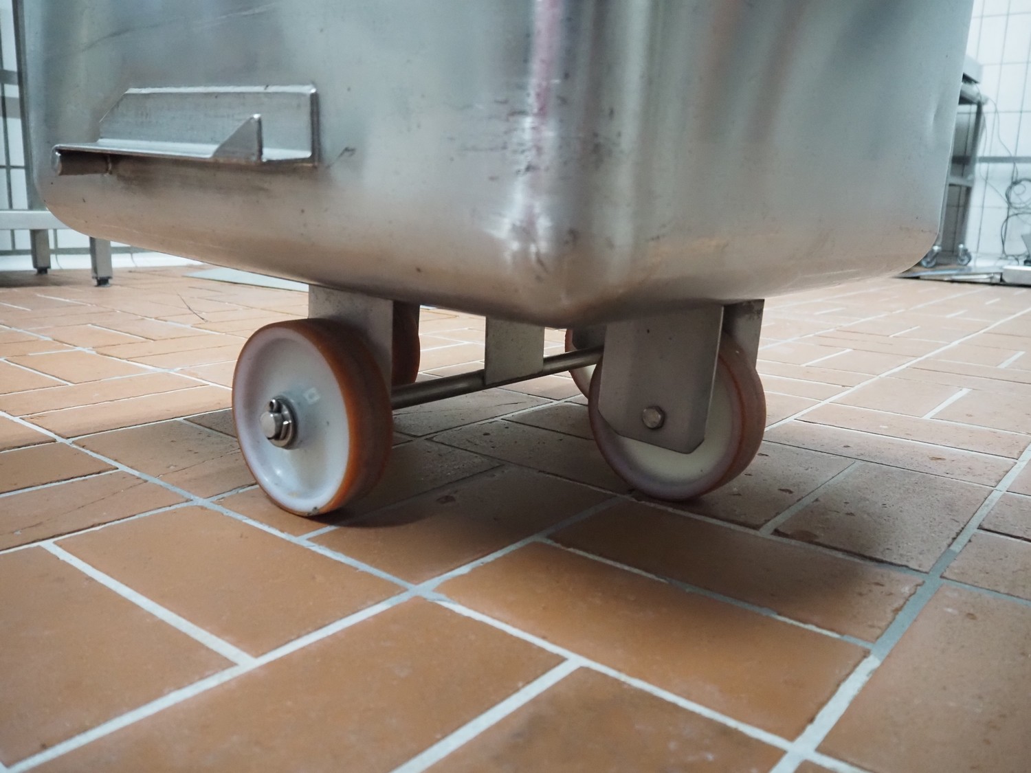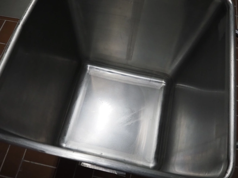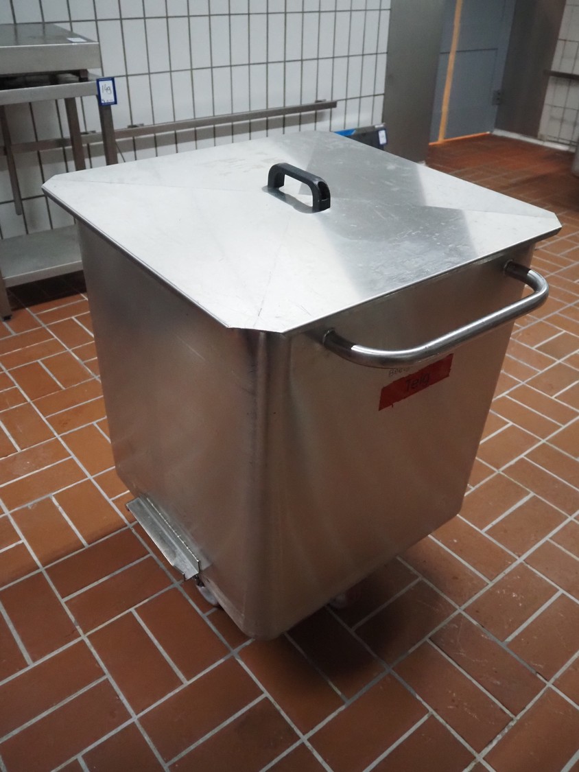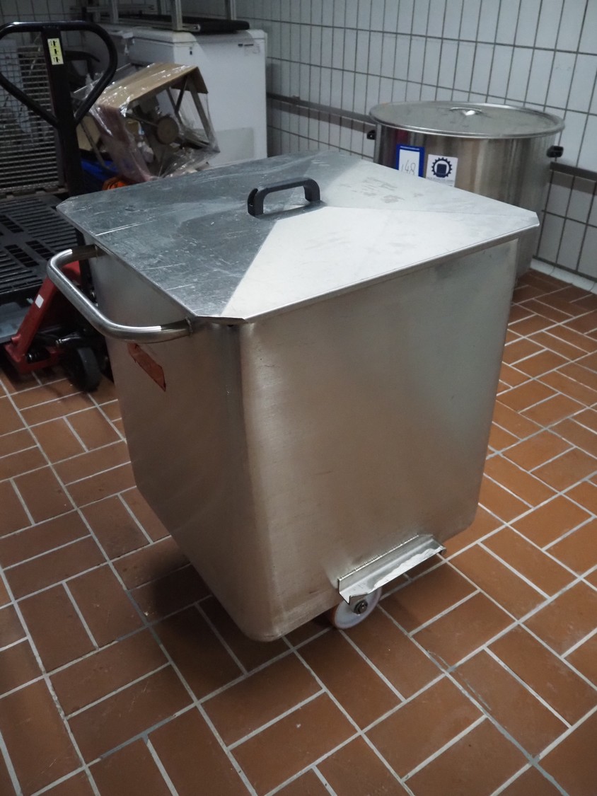 S/s 300 liter meat bin with lid, dimensions: 760 mm x 670 mm x 940 mm.