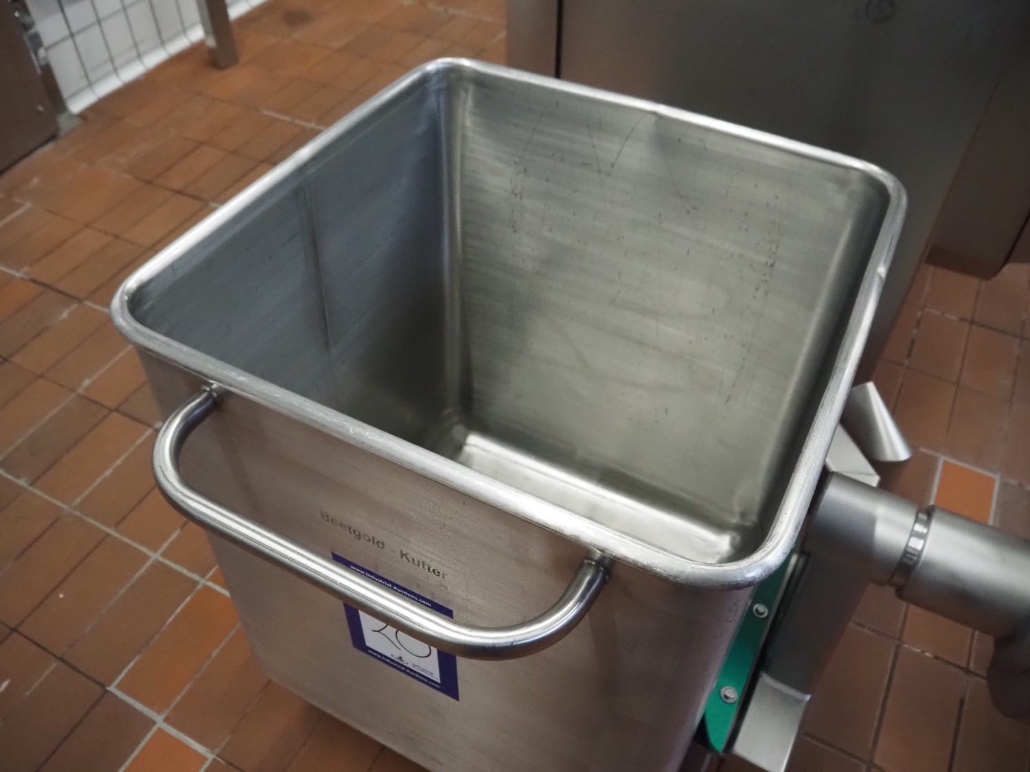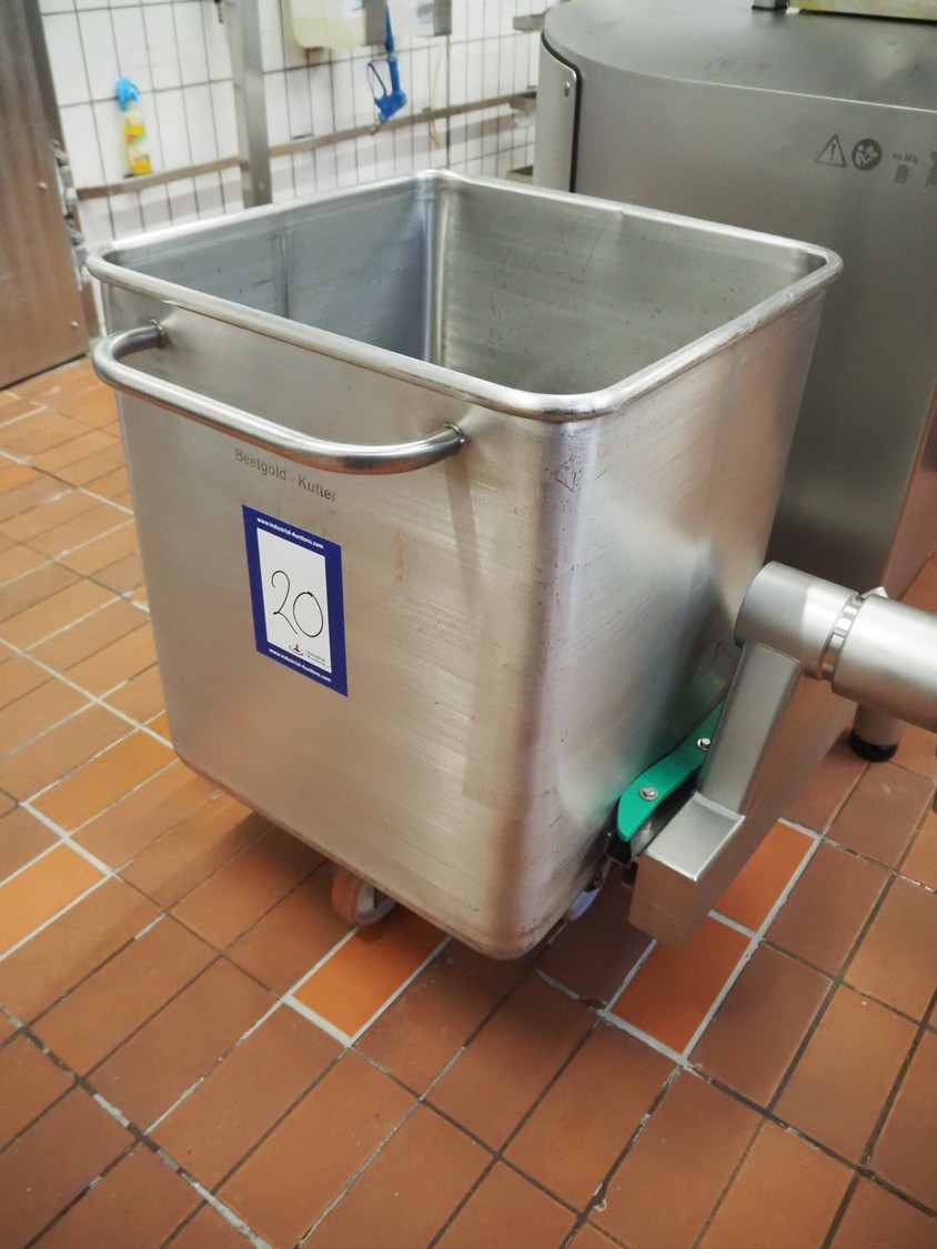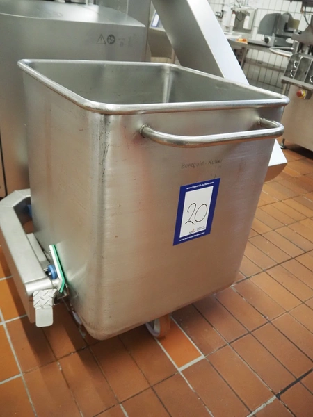 S/s 300 liter meat bin, dimensions: 760 mm x 670 mm x 940 mm.