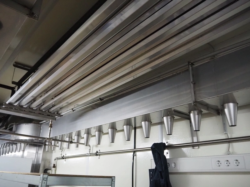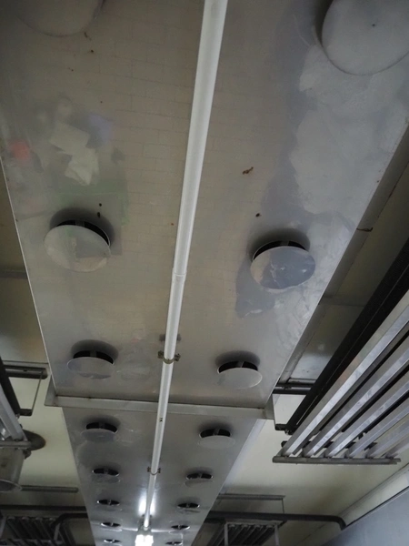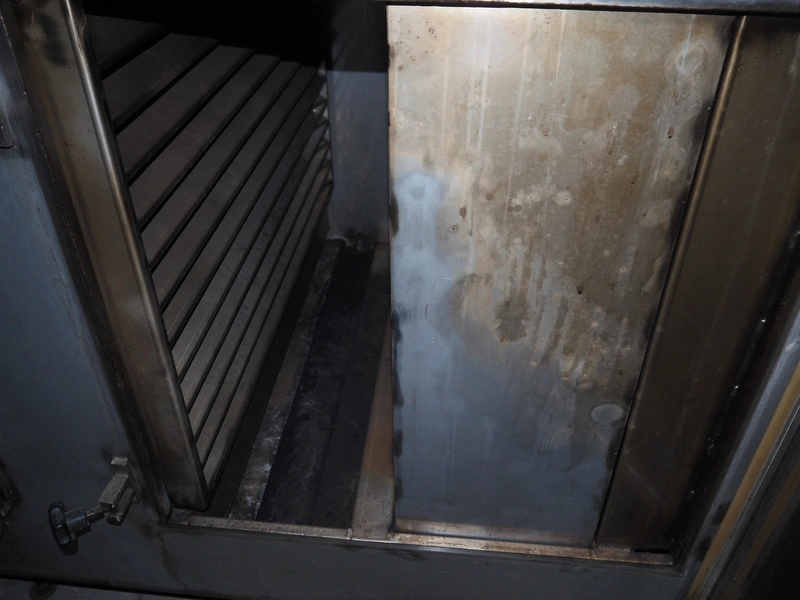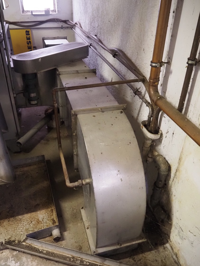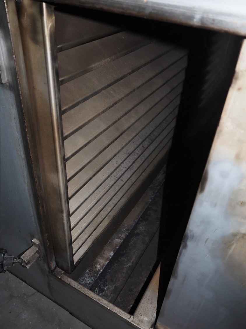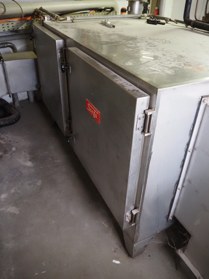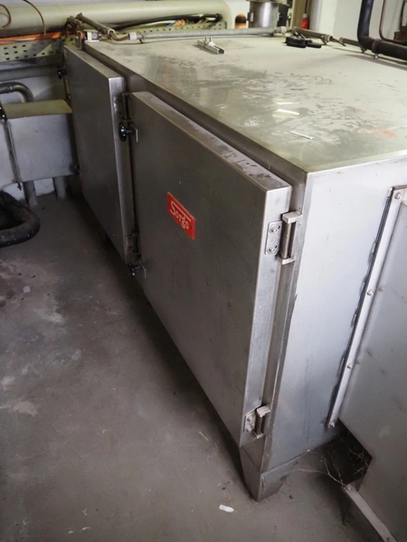 - Sorgo ripening chamber with door and 3 channels, door dimensions: 1150 mm x 100 mm x 2030 mm, channel dimensions: (2x) 12600 mm x 300 mm x 400 mm, (1x) 13000 x 600 mm x 300 mm, total chamber dimensions: 13300/14200 mm x 3500 mm x 2850 mm.