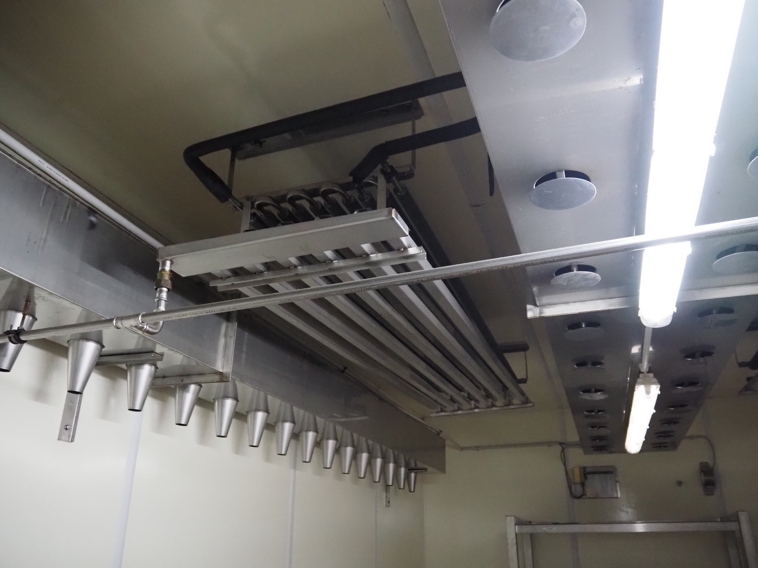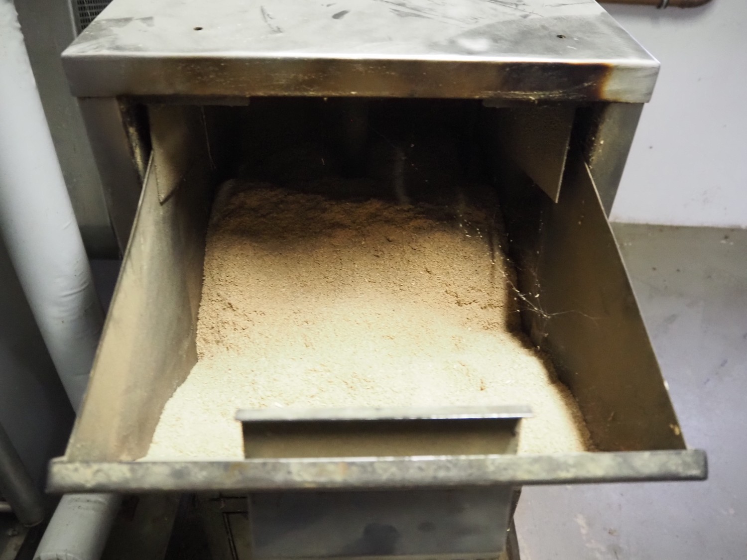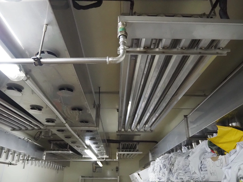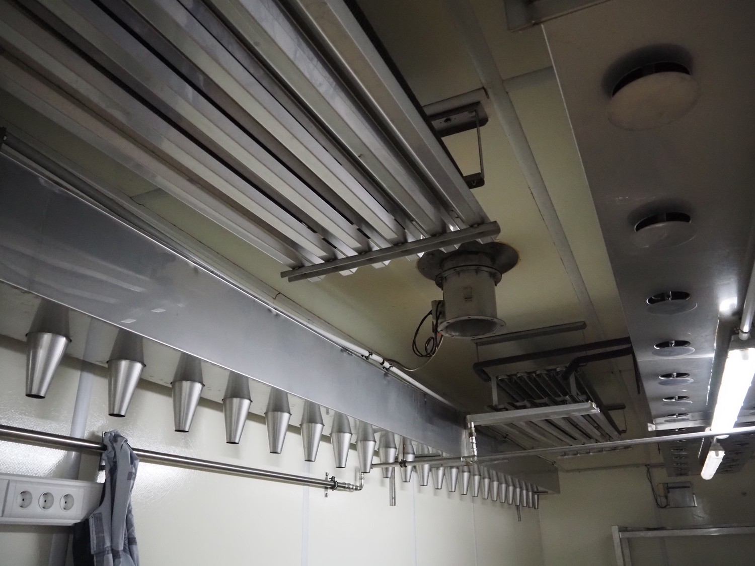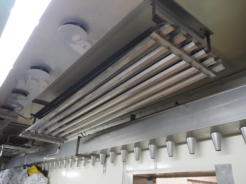 - Sorgo ripening chamber with door and 3 channels, door dimensions: 1150 mm x 100 mm x 2030 mm, channel dimensions: (2x) 12600 mm x 300 mm x 400 mm, (1x) 13000 x 600 mm x 300 mm, total chamber dimensions: 13300/14200 mm x 3500 mm x 2850 mm.