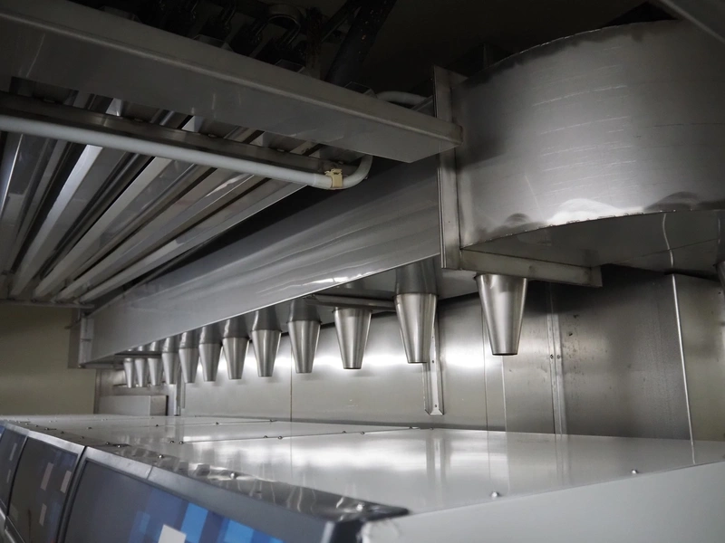 - 3 channels, dimensions: (1x) 3850 mm x 300 mmm x 400 mm, (1x) 4600 mm x 300 mm x 400 mm, (1x) 4200 mm x 600 mm x 400 mm, total chamber dimensions: 4100/5000 mm x 3800 mm x 2700 mm.