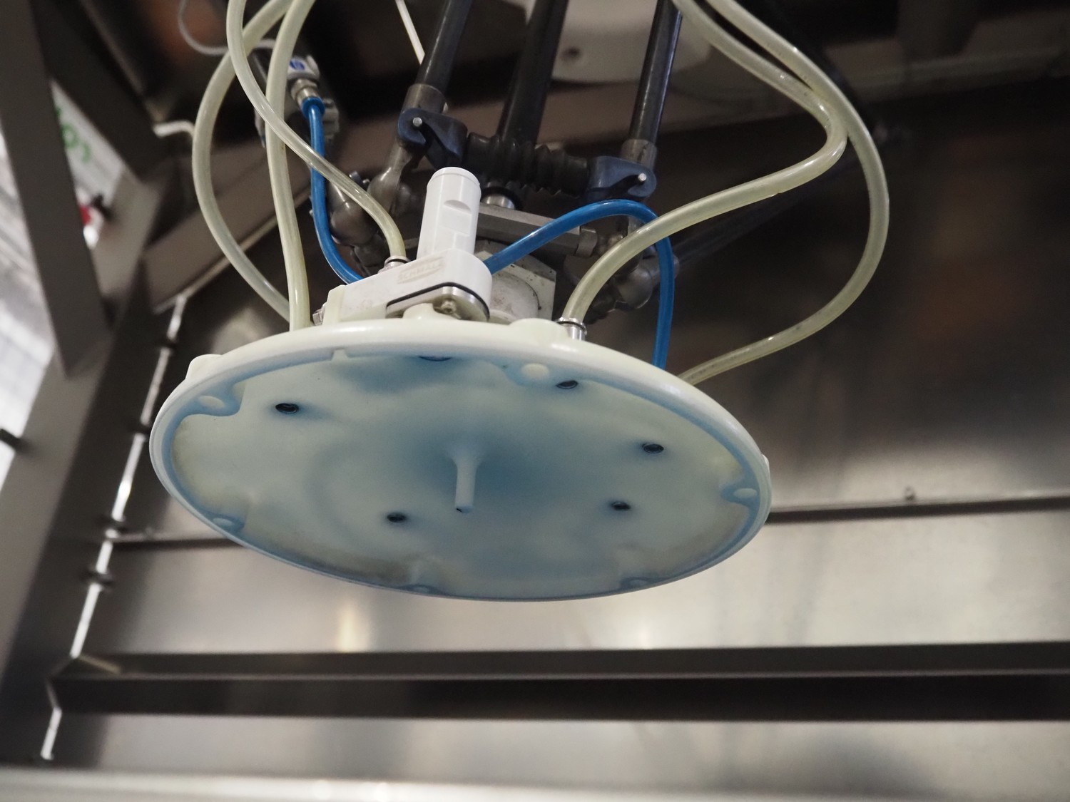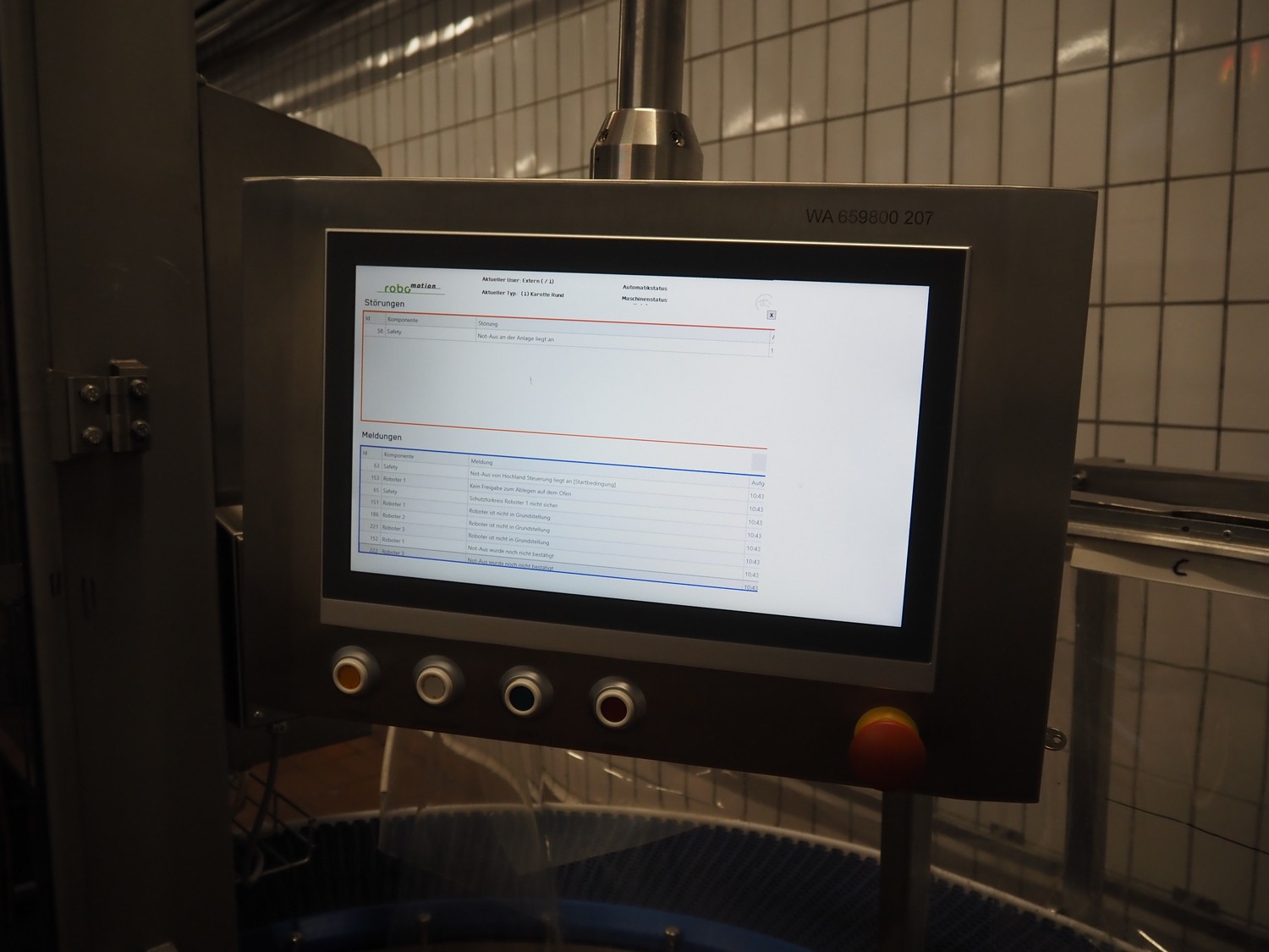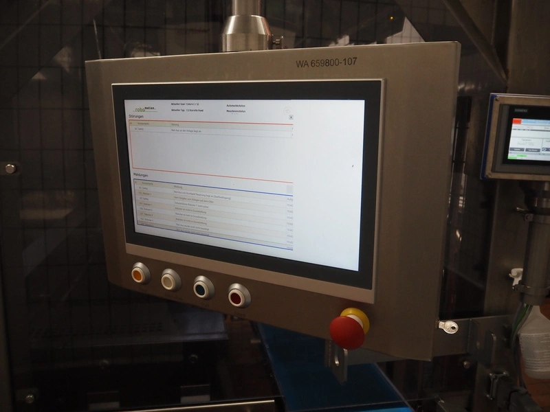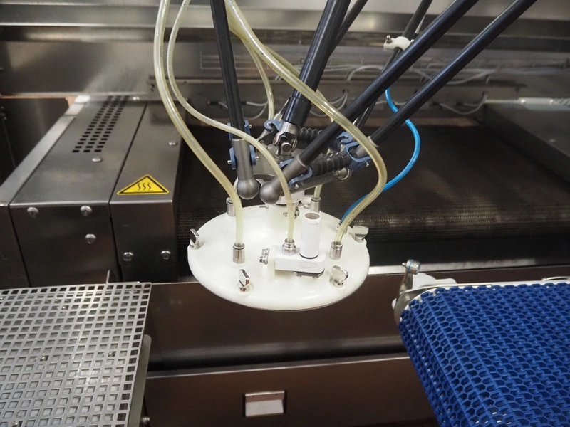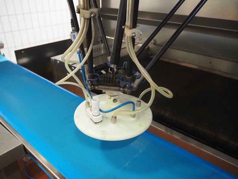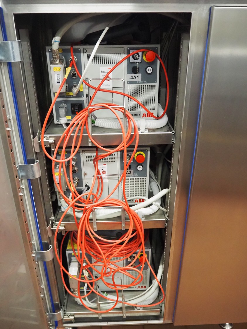 - (2x) Robomotion automatic dough placer with ABB pick and place robot, name: Tortilla-Handhabung, type: Delta-Robotanlage, serial number: 212417002, year of construction: 2012, 400 V, 3 Ph, 50 Hz, 10 A, 7 kW, diameter picker: 250 mm, total dimensions Robomotion: 3000 mm x 1640 mm x 2930 mm.