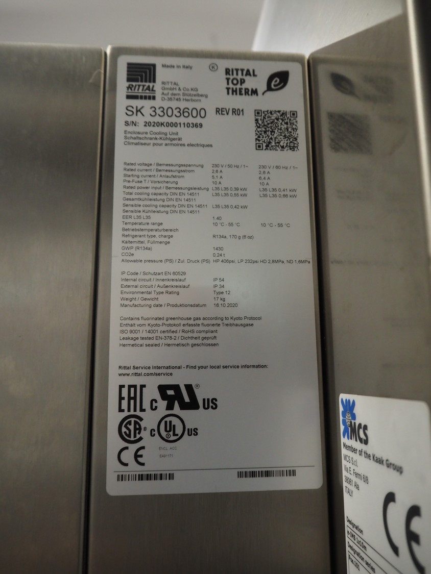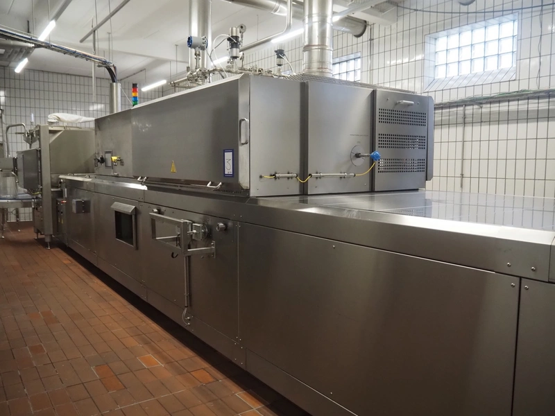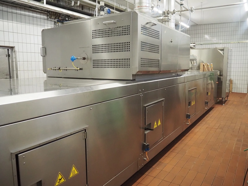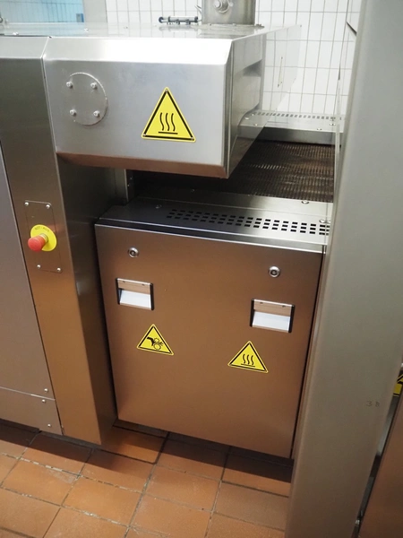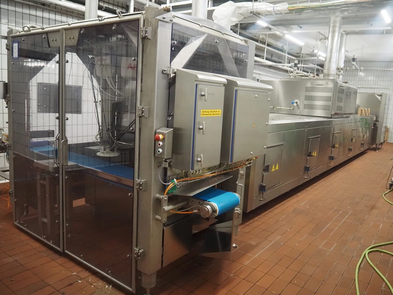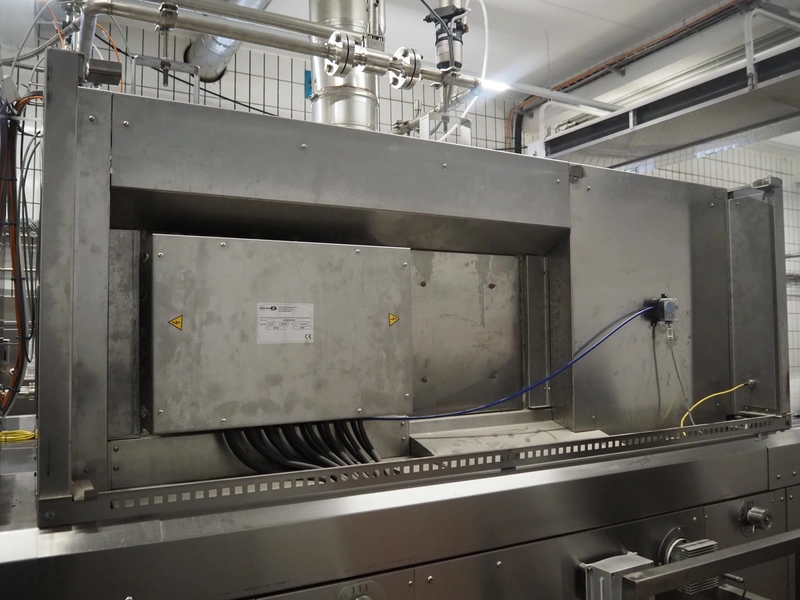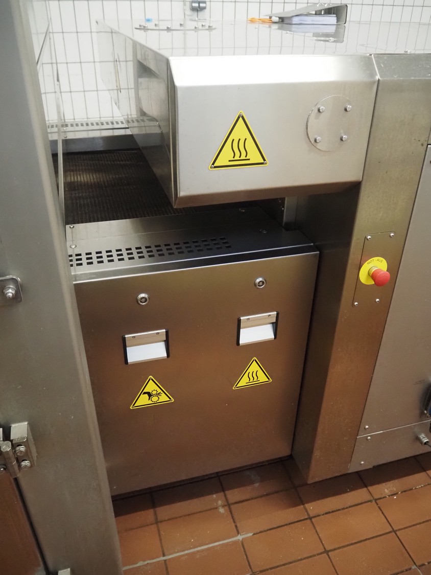 - MCS srl oven, type: e-IMS 1 x 10m, serial number: XC00289-XLA.02139, year of construction: 2021, 400 V, 3 Ph, 50 Hz, 6000 A, baking time: 20 to 15 minutes, s/s mesh belt, belt width: 1000 mm, clearance: 1000 mm x 20 mm, total belt length: 10000 mm, total dimensions: 13000 mm x 2300 mm x 2900 mm.