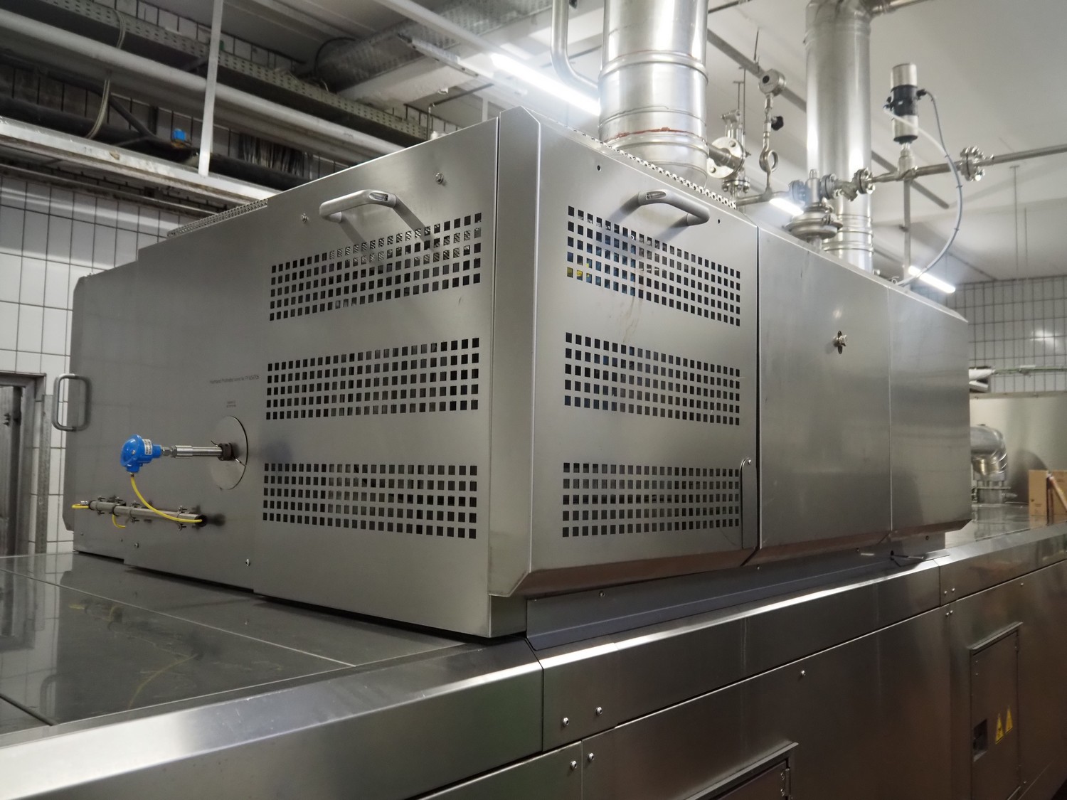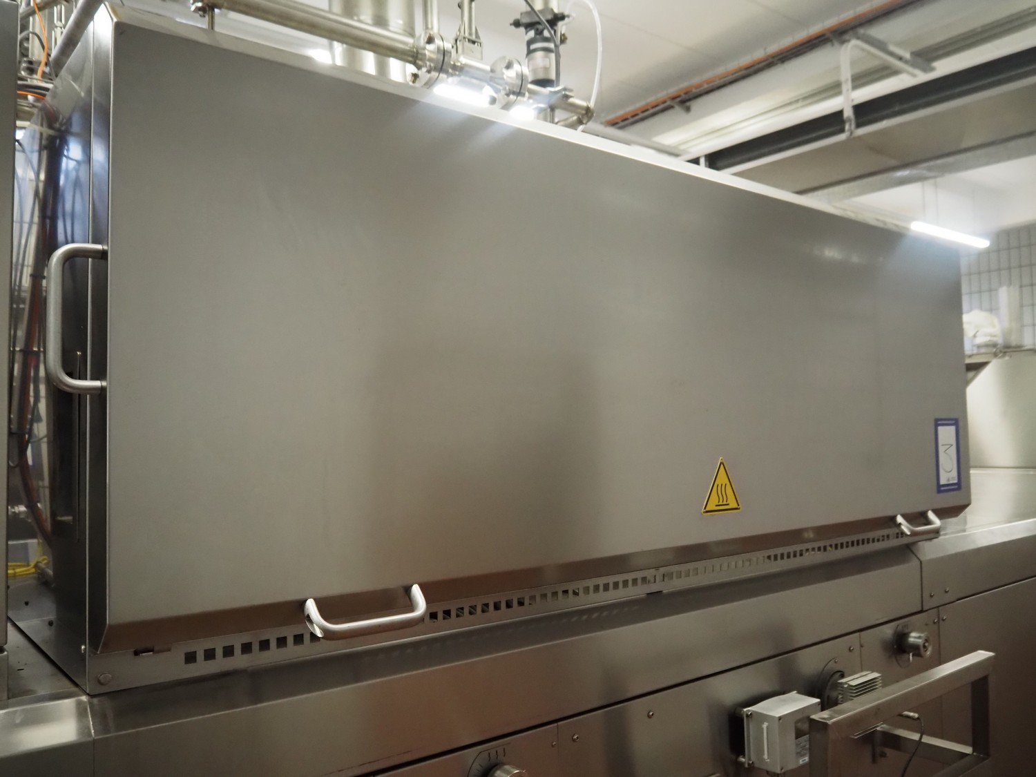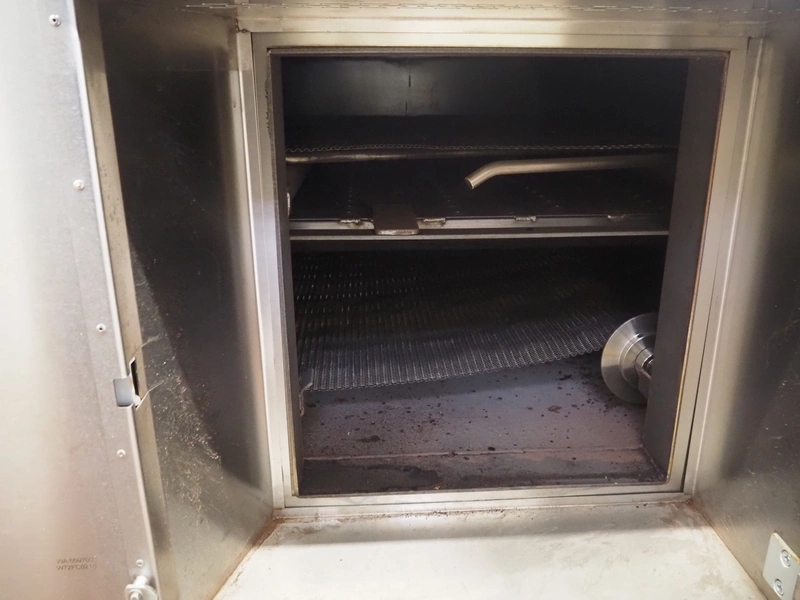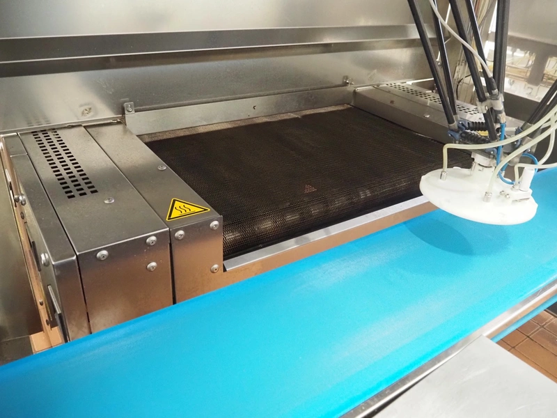 - MCS srl oven, type: e-IMS 1 x 10m, serial number: XC00289-XLA.02139, year of construction: 2021, 400 V, 3 Ph, 50 Hz, 6000 A, baking time: 20 to 15 minutes, s/s mesh belt, belt width: 1000 mm, clearance: 1000 mm x 20 mm, total belt length: 10000 mm, total dimensions: 13000 mm x 2300 mm x 2900 mm.