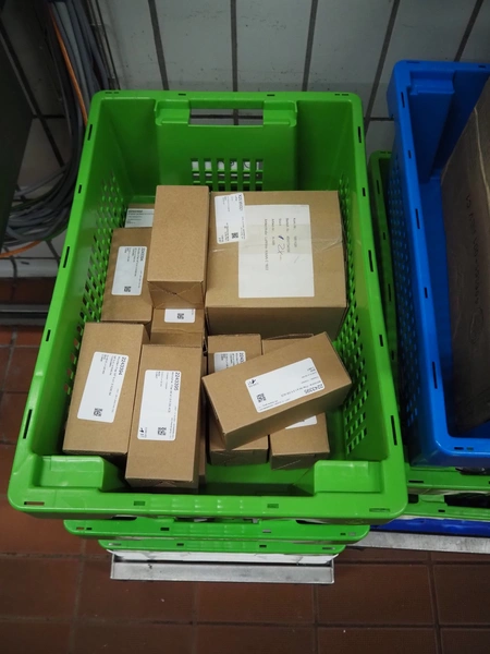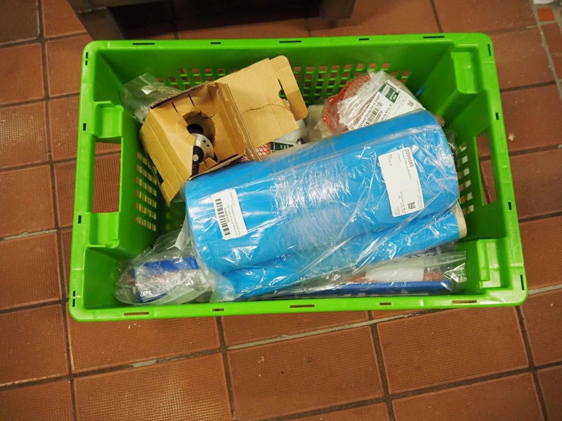 - Pallet with parts, dimensions pallet: 1200 mm x 800 mm x 500 mm.