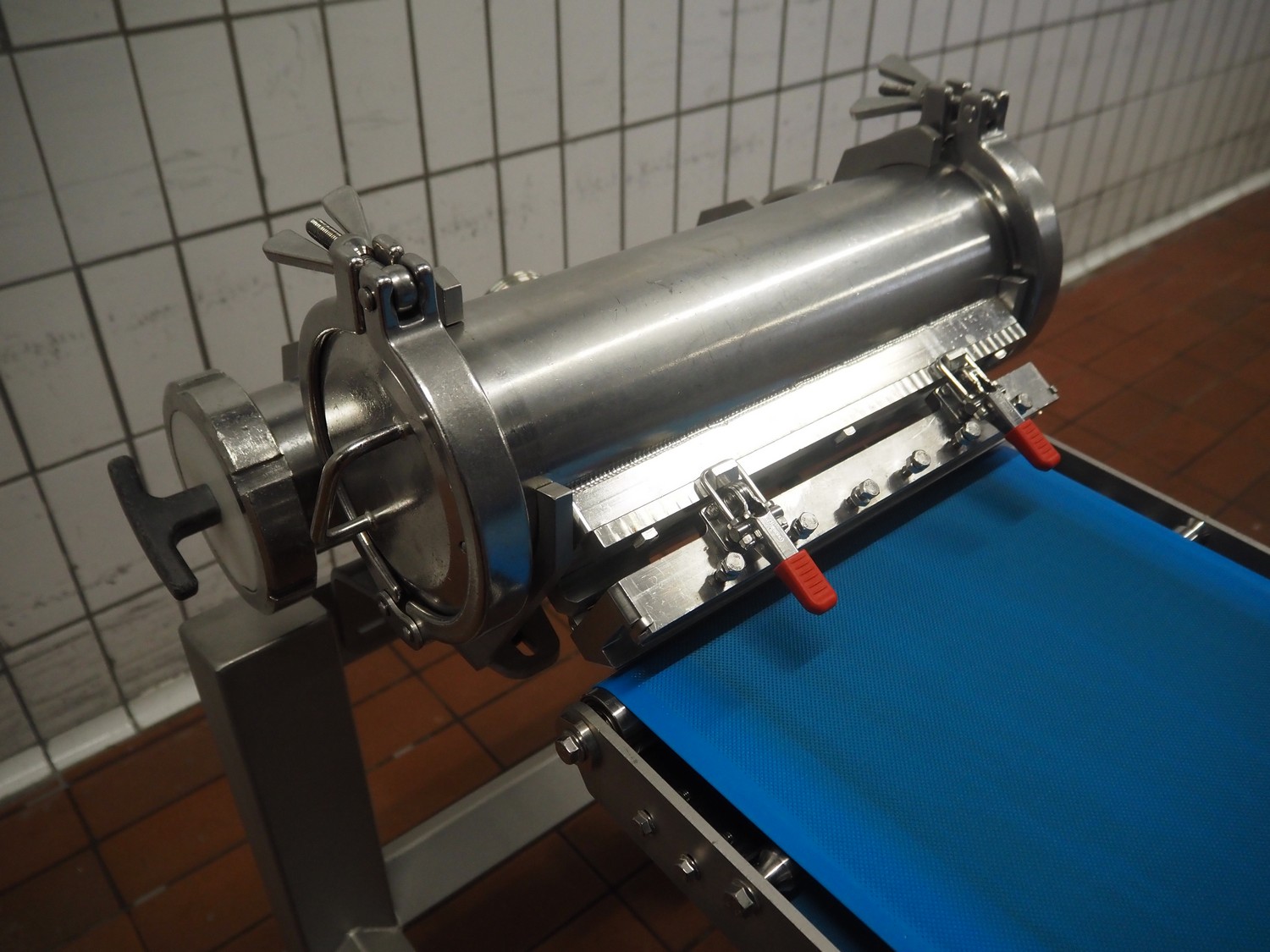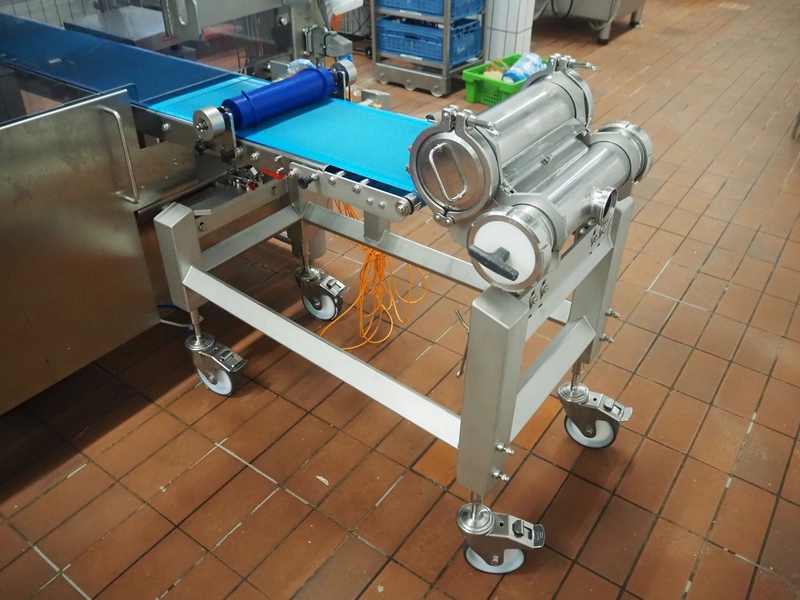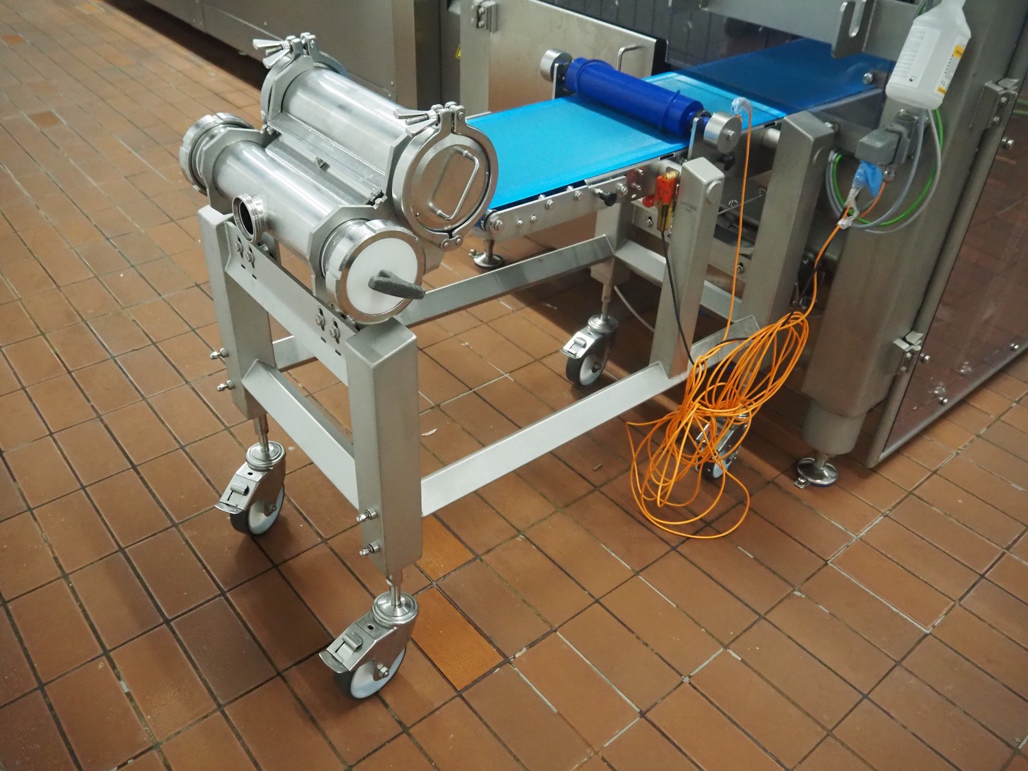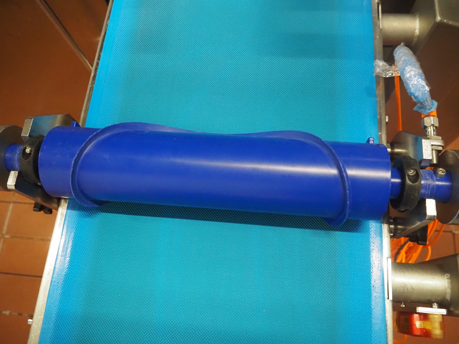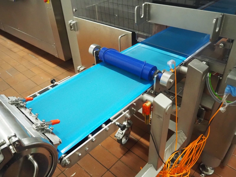 - Mobile waterwheel with forming roll and transport belt, diameter form: 250 mm, plastic belt, belt width: 340 mm, total dimensions: 4000 mm x 400 mm x 1200 mm.