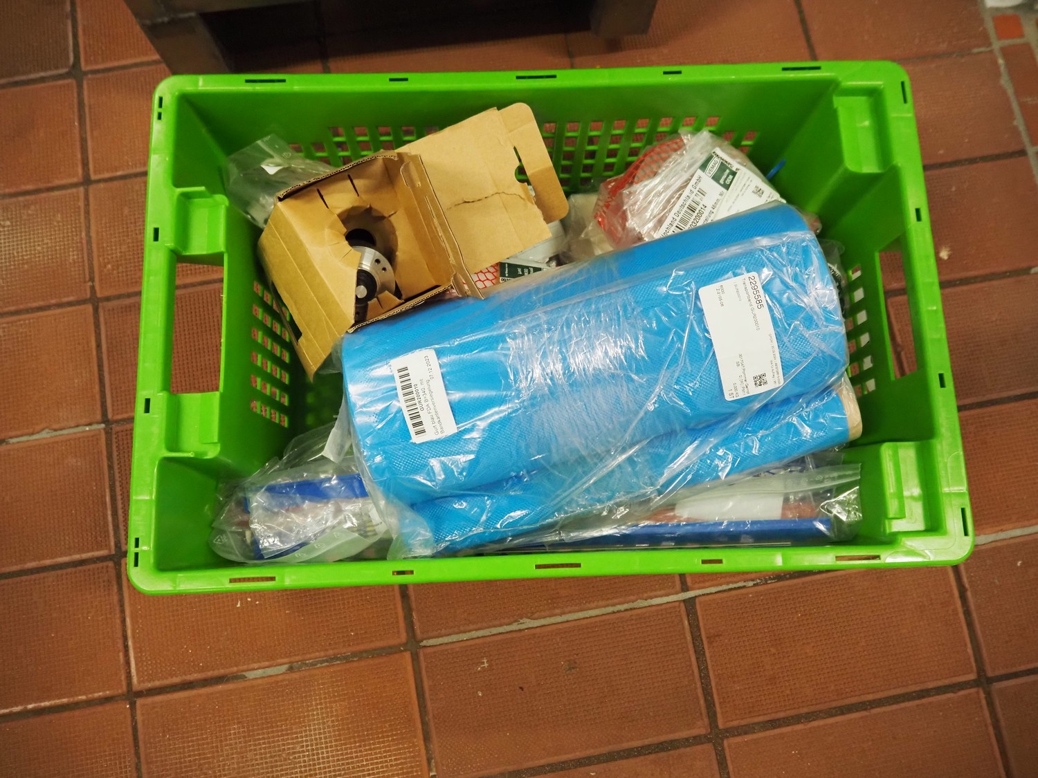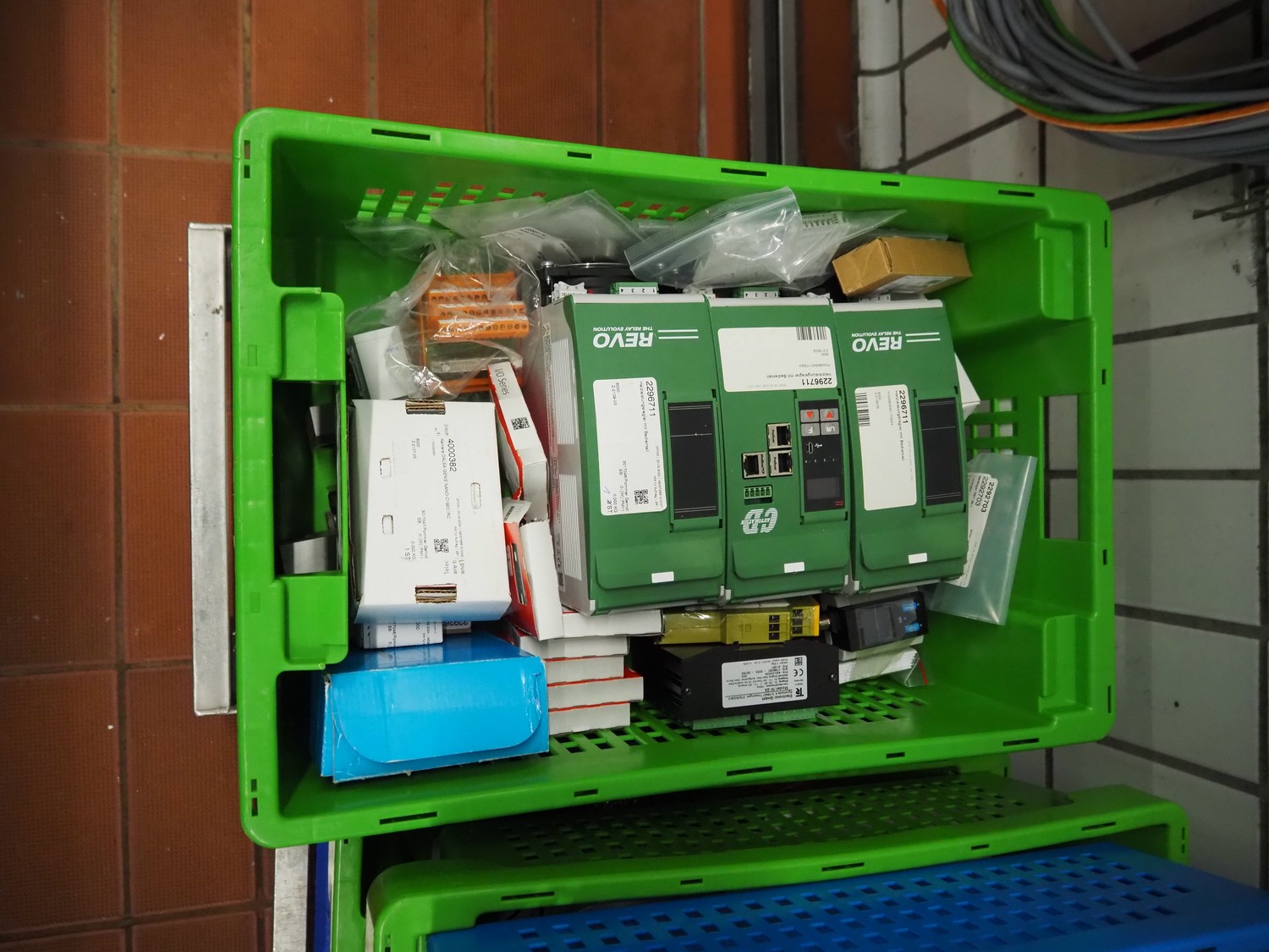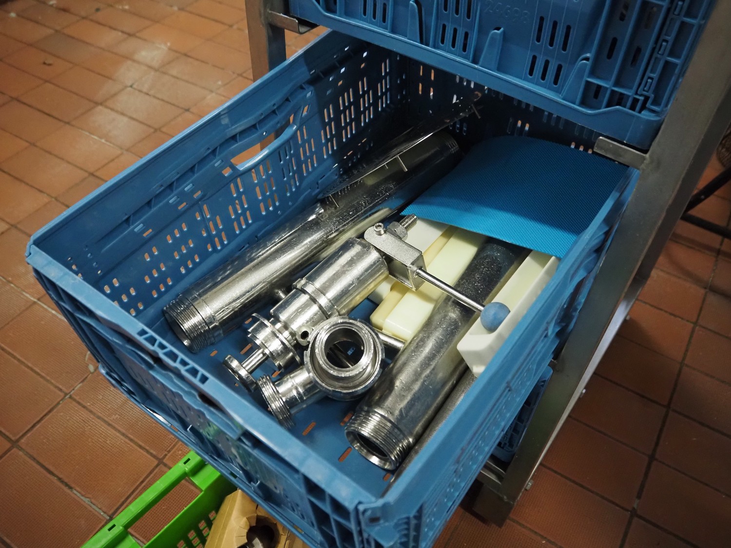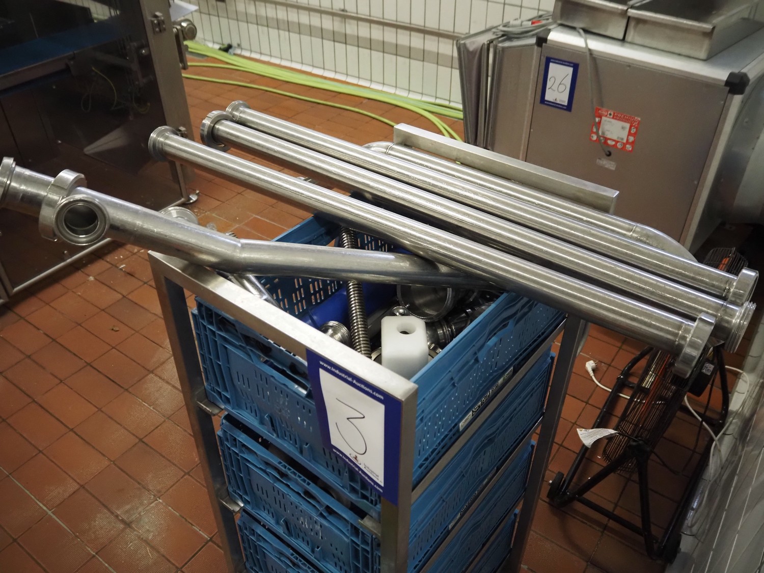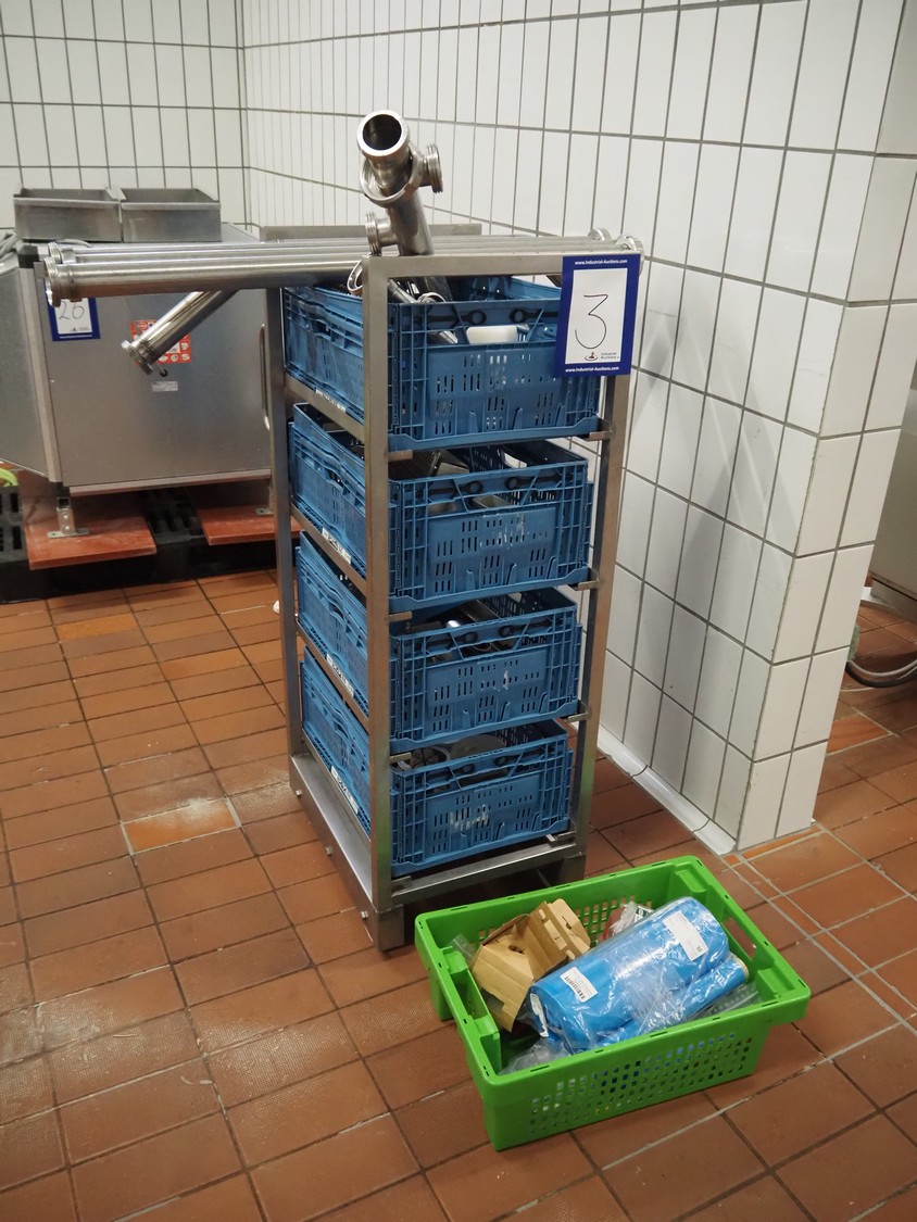 - (3x) rollie with crates with various parts.