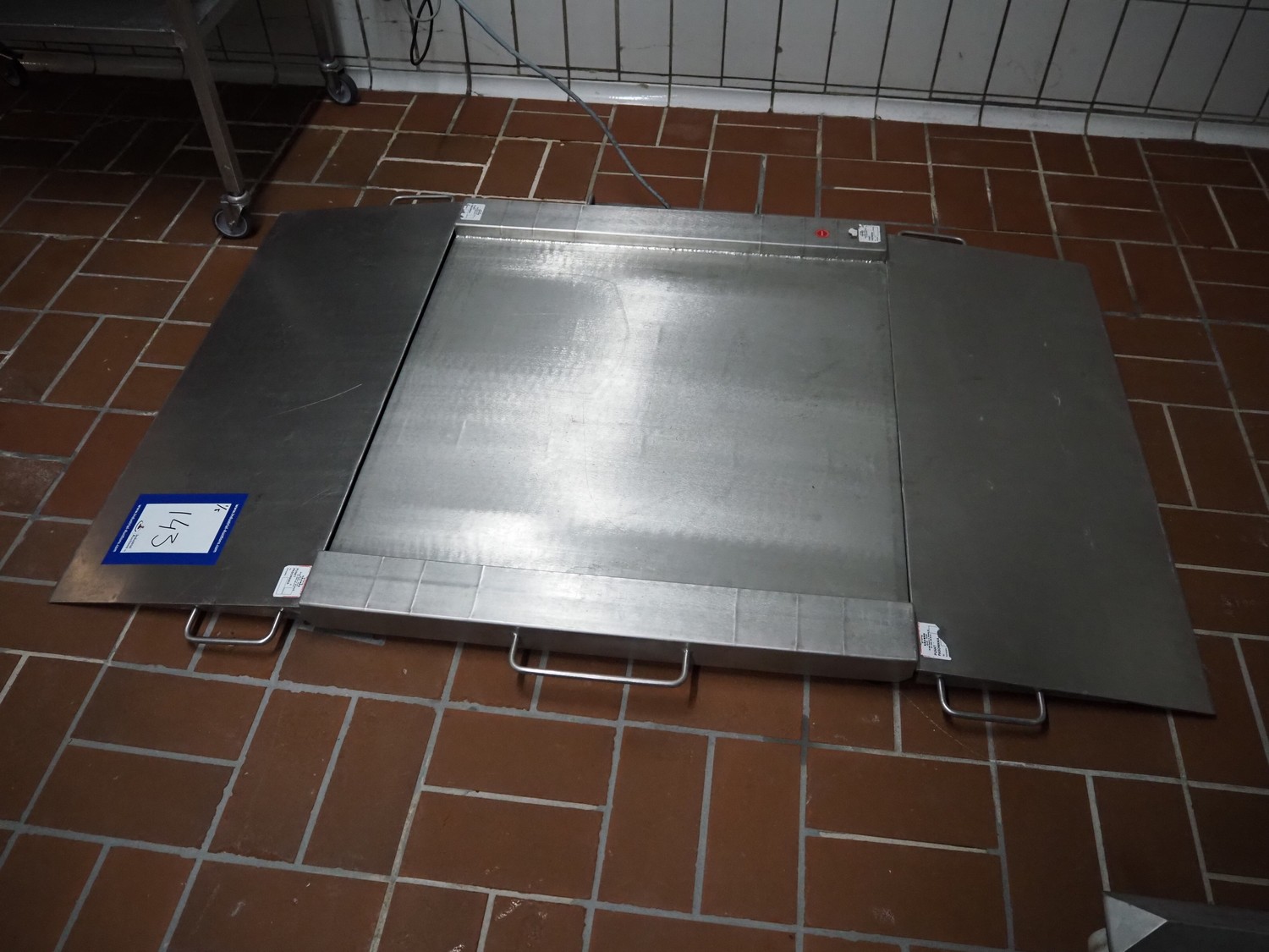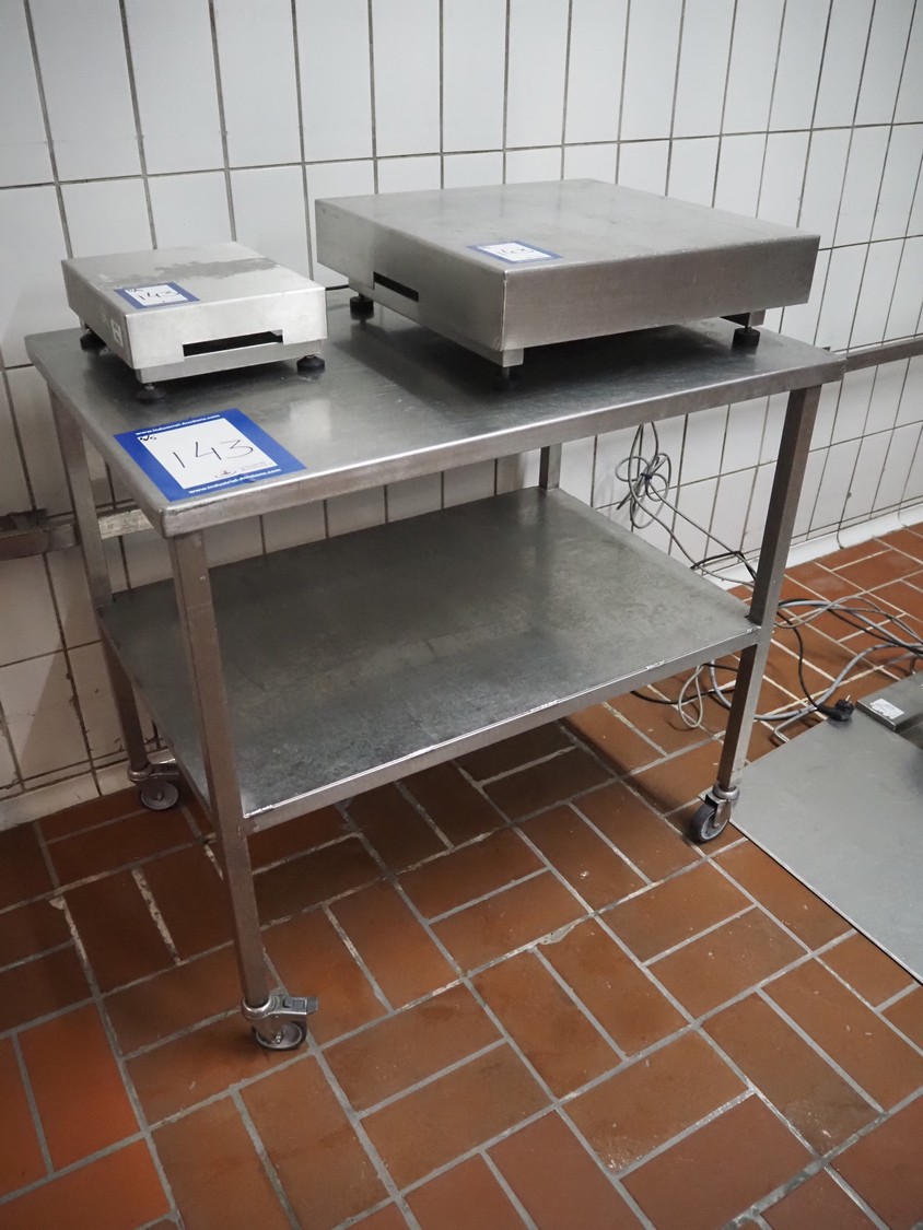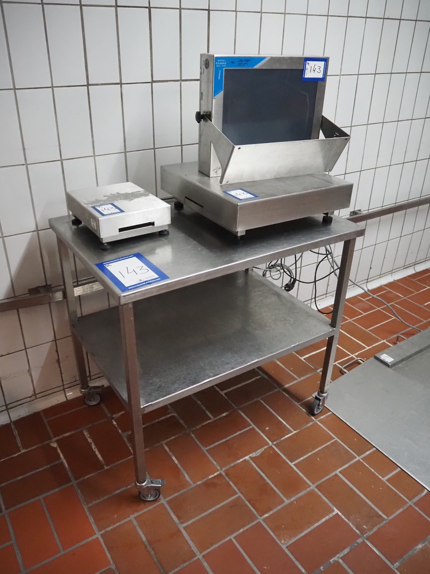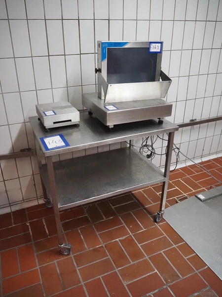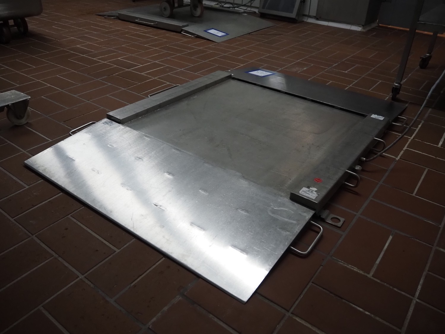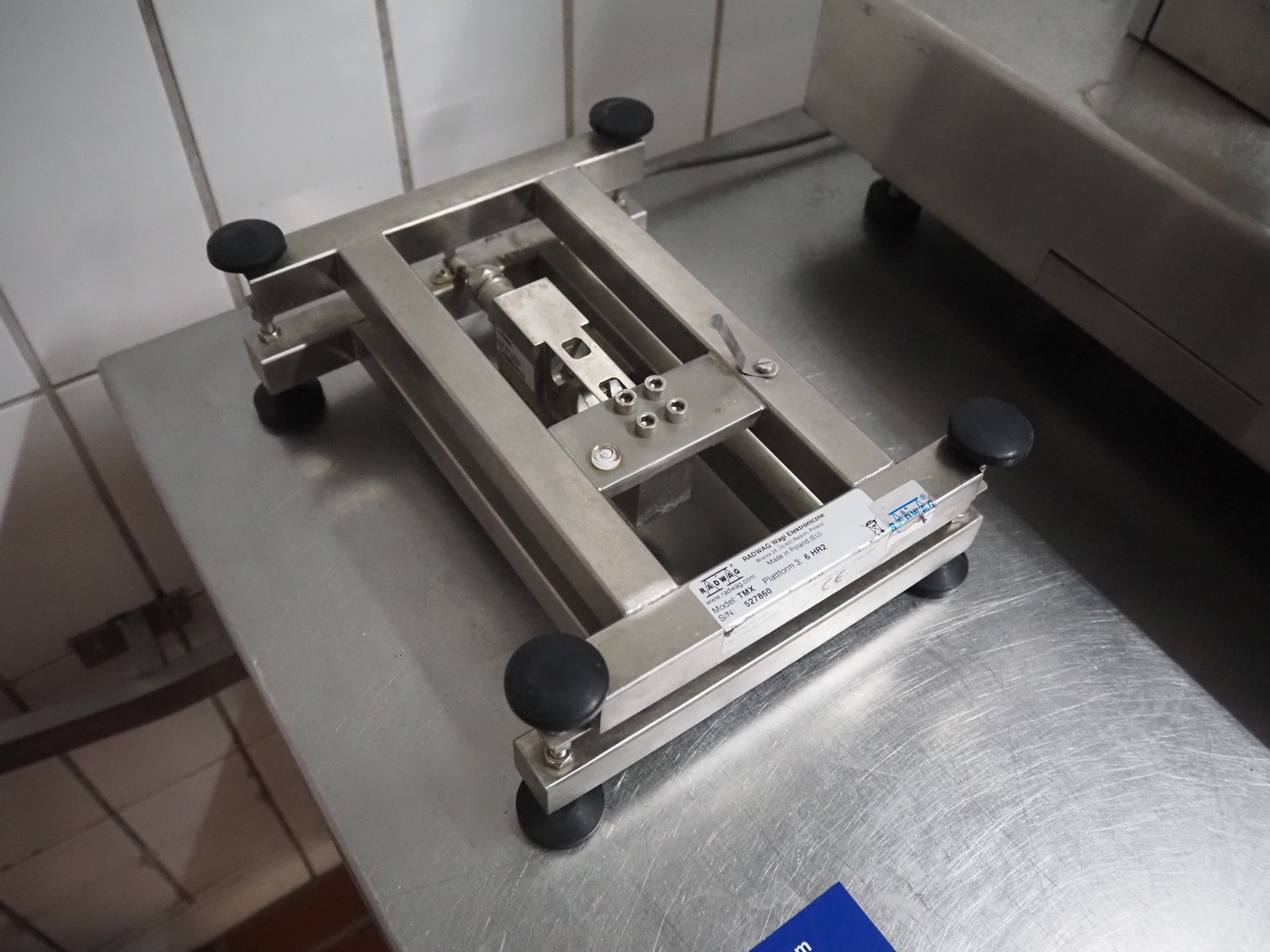 Radwag weighing scales with indicator, indicator model: TMX, serial number: 527863, 100/240 V, 50/60 Hz, 0.6 A, floor weighing scale dimensions: 860 mm x 840 mm, total dimensions floor weighing scale: 1700 mm x 1150 mm x 80 mm, Radwag weighing scale: model: TMX, serial number: 527860, Fintec weighing cell, type: PC6-10kg C3-s, serial number: 12777069, scale dimensions: 300 mm x 250 mm. Radwag weighing scale, model: TMX, serial number: 527860, Flintec weighing cell, type: PC6-100kg C3-s, serial number: 11240903, scale dimensions: 500 mm x 500 mm, dimensions s/s trolley: 950 mm x 650 mm x 1430 mm.