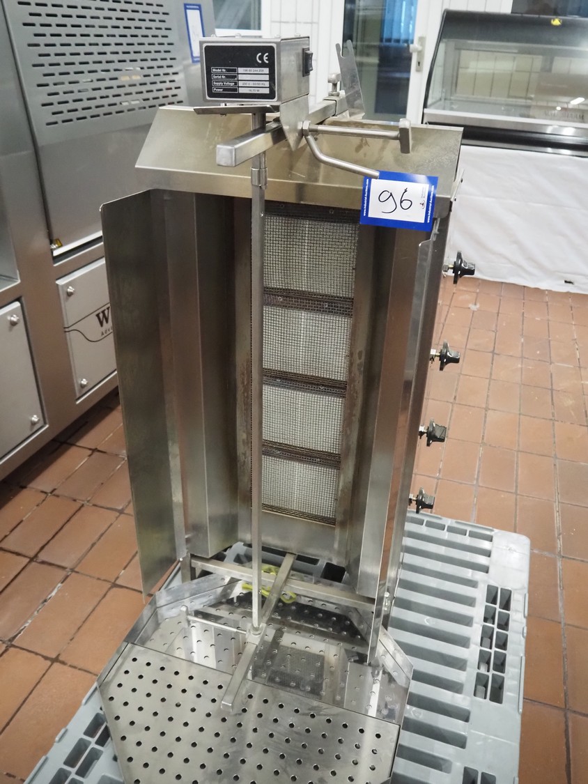 S/s kebab grill, model number: 196 60 244 259, serial number: 73, 230 V, 50/60 Hz, 16.70 W, dimensions: 700 mm x 550 mm x 670 mm.