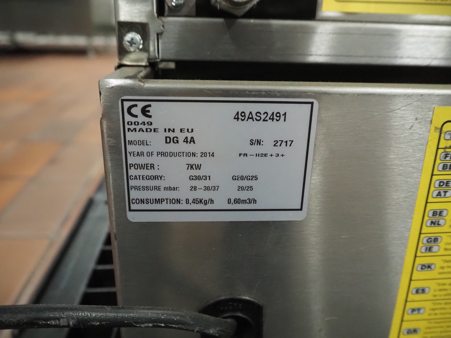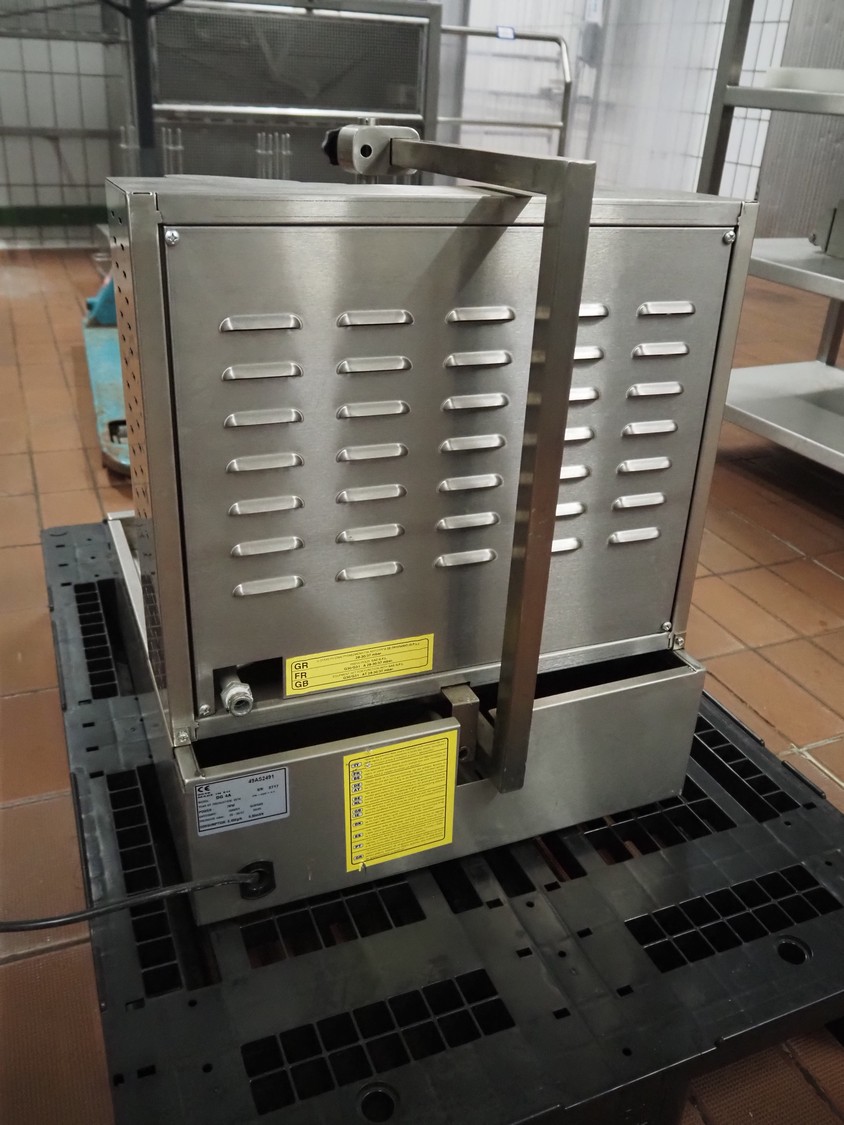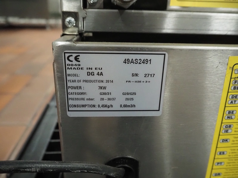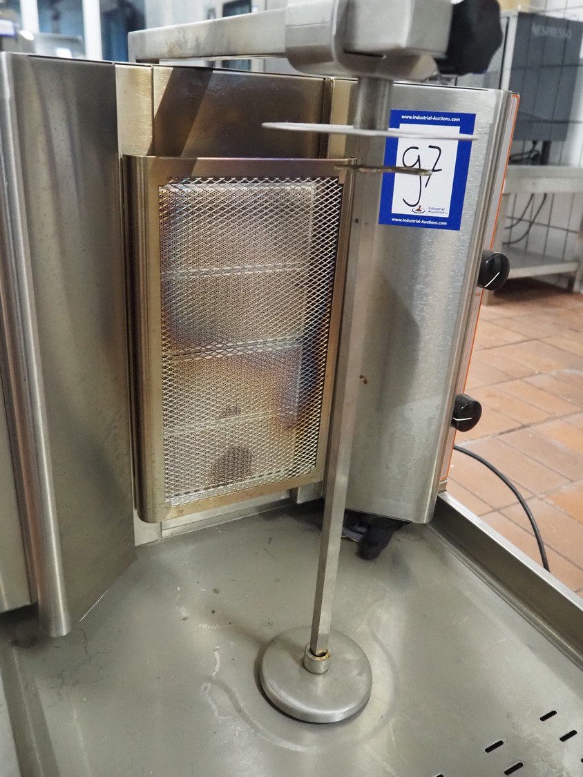S/s kebab grill, model: DG 4A, serial number: 2717, year of construction: 2014, 28-30/37 mbar, dimensions: 650 mm x 550 mm x 670 mm.