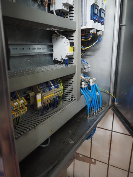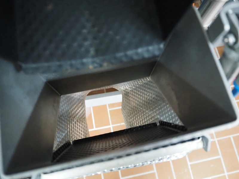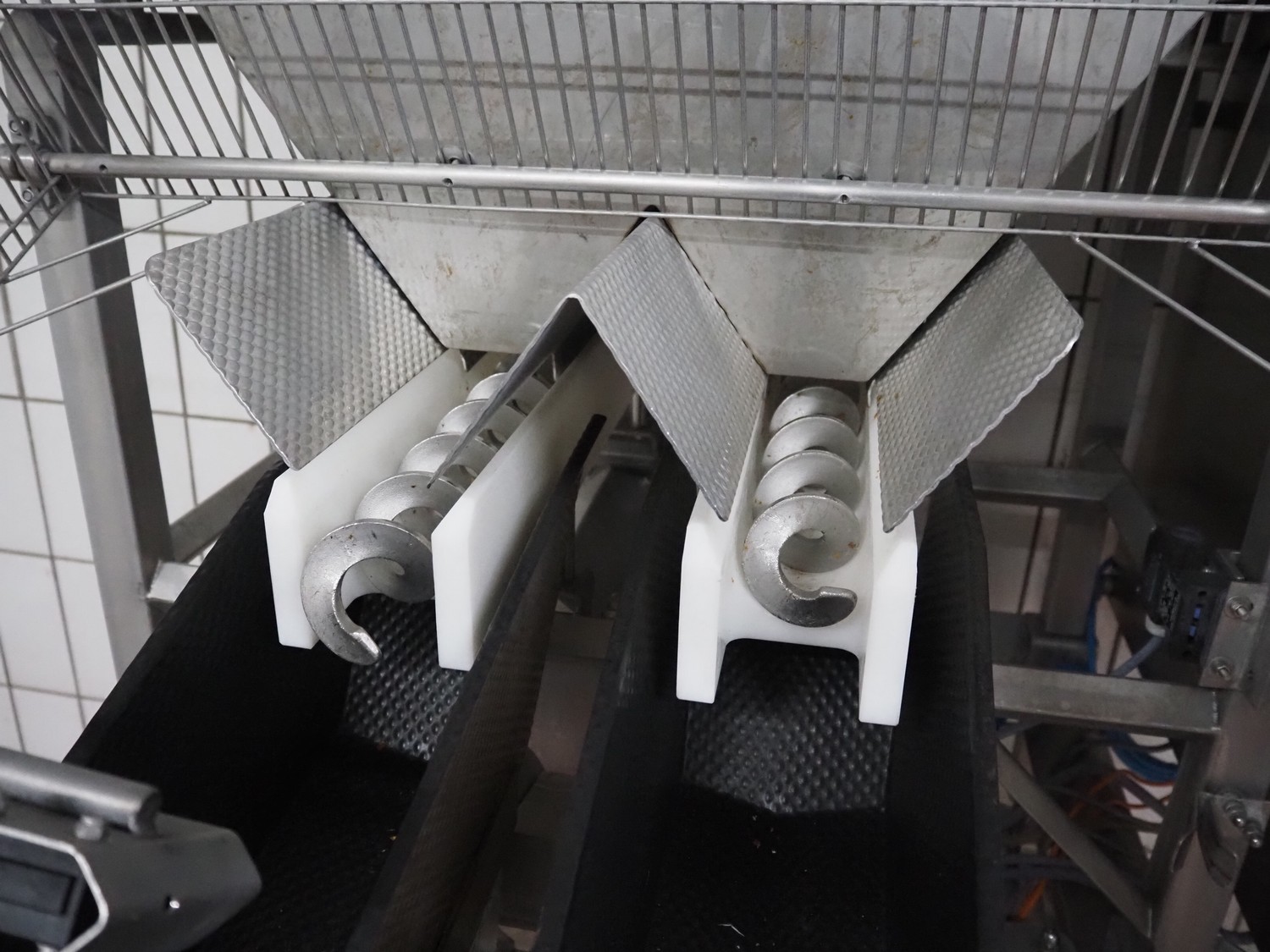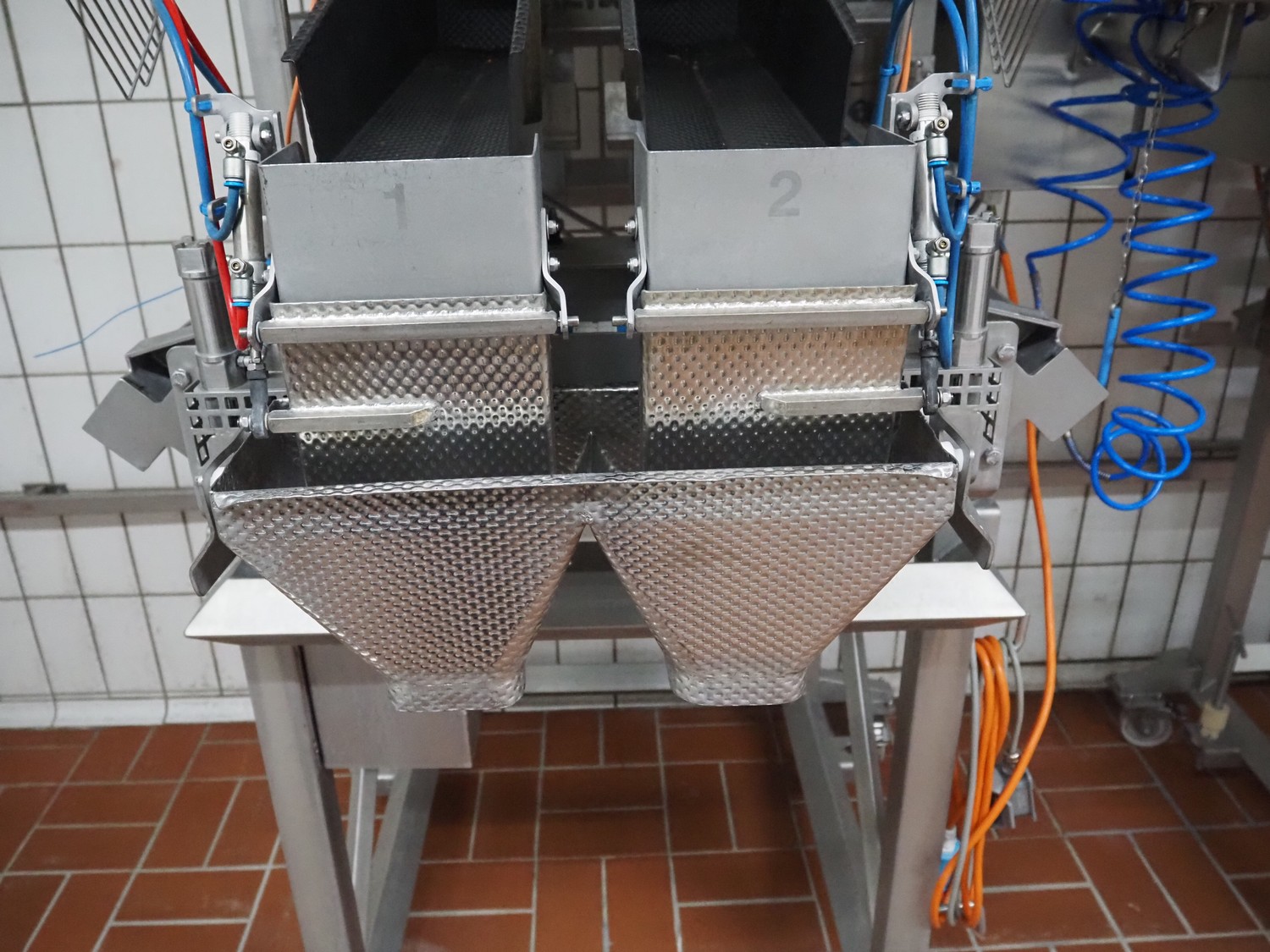 Böske GmbH mobile dual head weigher, type: DW2-V2N-150, number: 089, year of construction: 2016, 400 V, 6 bar, infeed clearance: 620 mm x 400 mm, diameter screw: 60 mm, vibrating gutter length: 550 mm, gutter width: 120 mm, basket dimensions: (2x) 145 mm x 90 mm x 170 mm, total dimensions: 1380 mm x 1150 mm x 2050 mm.