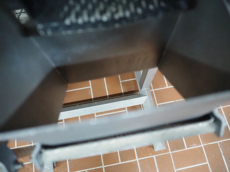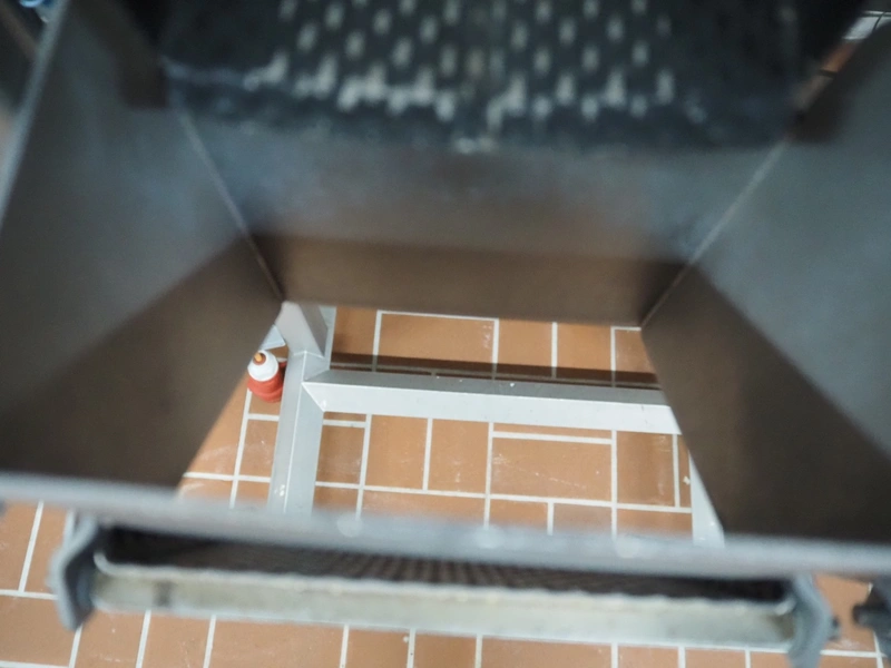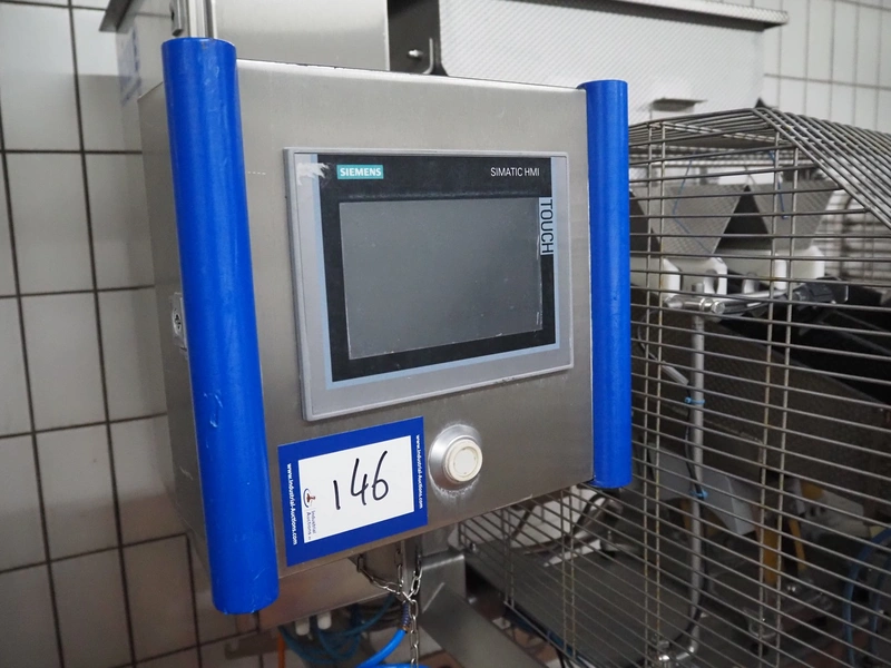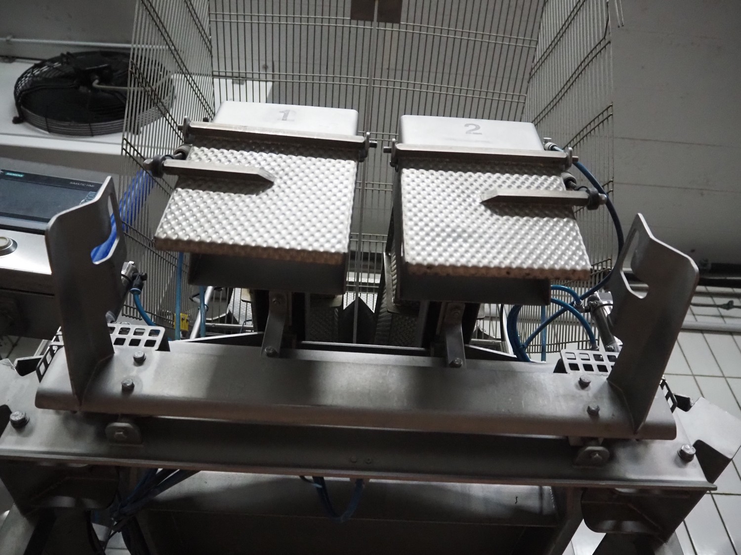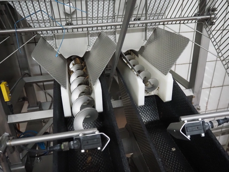 Böske GmbH mobile dual head weigher, type: DW2-V2N-10-320, number: 095, year of construction: 2016, 400 V, 6 bar, infeed clearance: 620 mm x 400 mm, diameter screw: 60 mm, vibrating gutter length: 550 mm, gutter width: 120 mm, basket dimensions: (2x) 145 mm x 90 mm x 170 mm, total dimensions: 1380 mm x 1150 mm x 2050 mm.