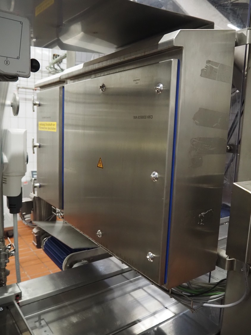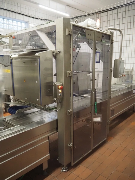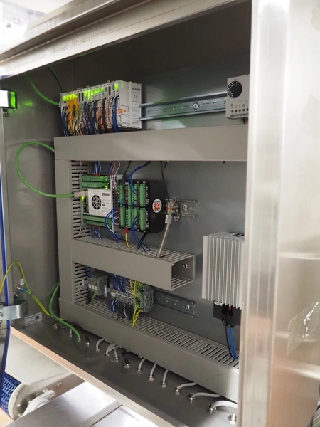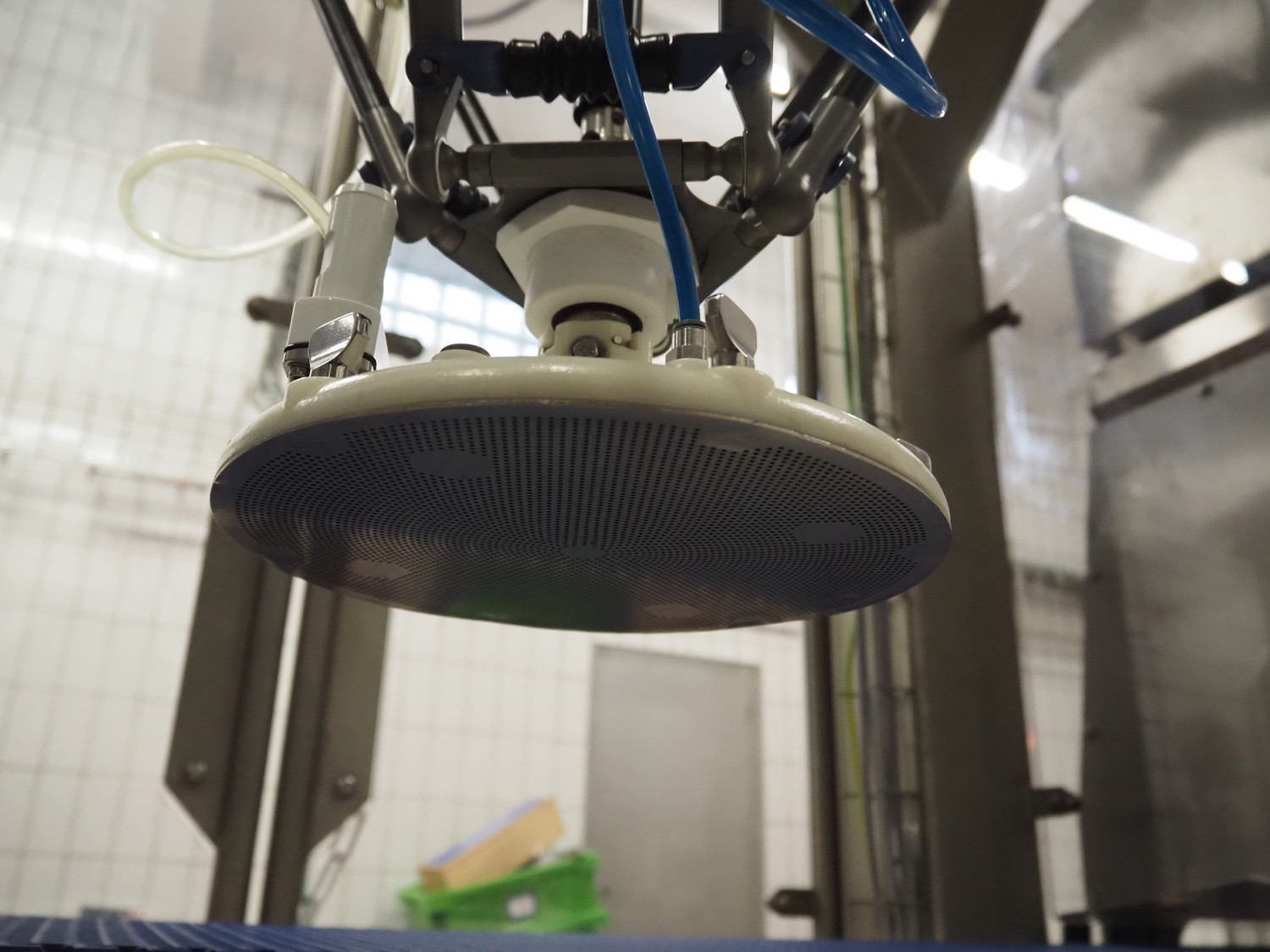 Robomotion automatic dough placer with ABB pick and place robot, diameter picker: 230 mm, total dimensions: 1700 mm x 2000 mm x 2700 mm.