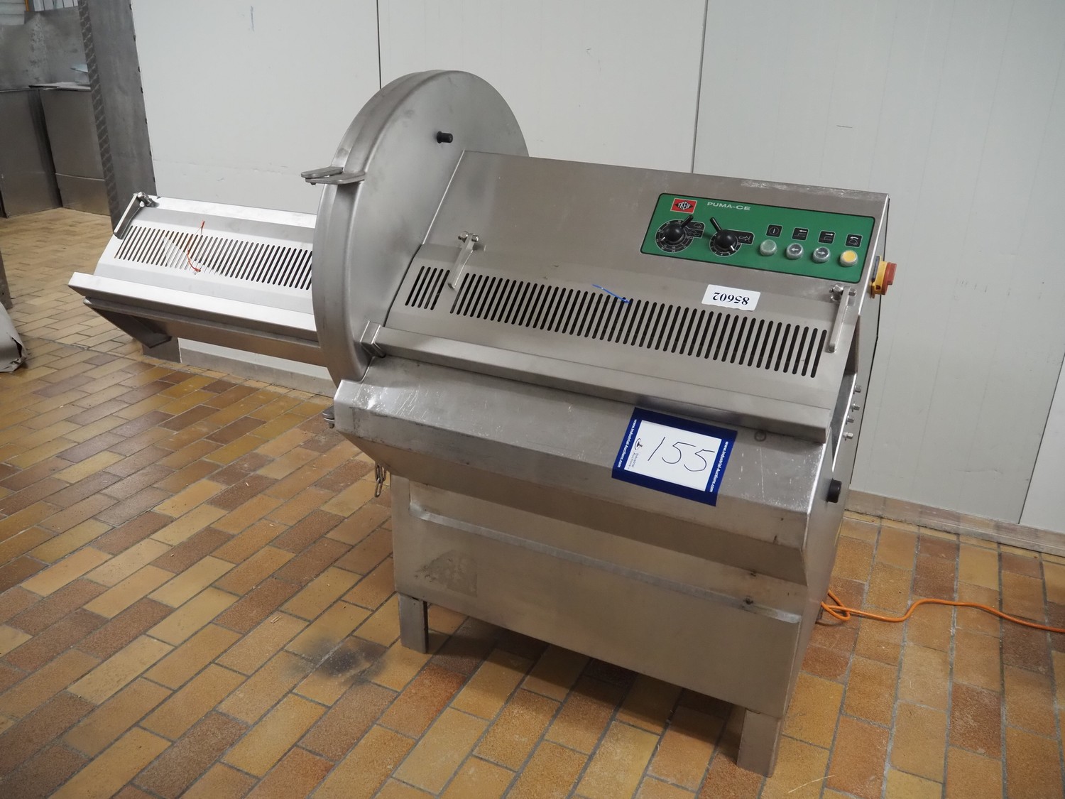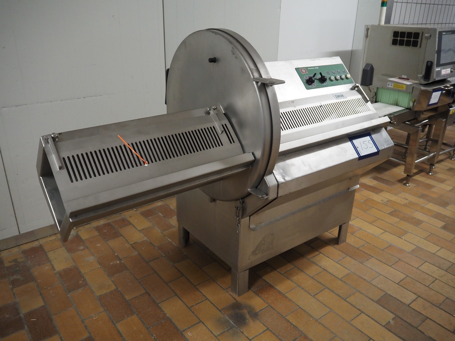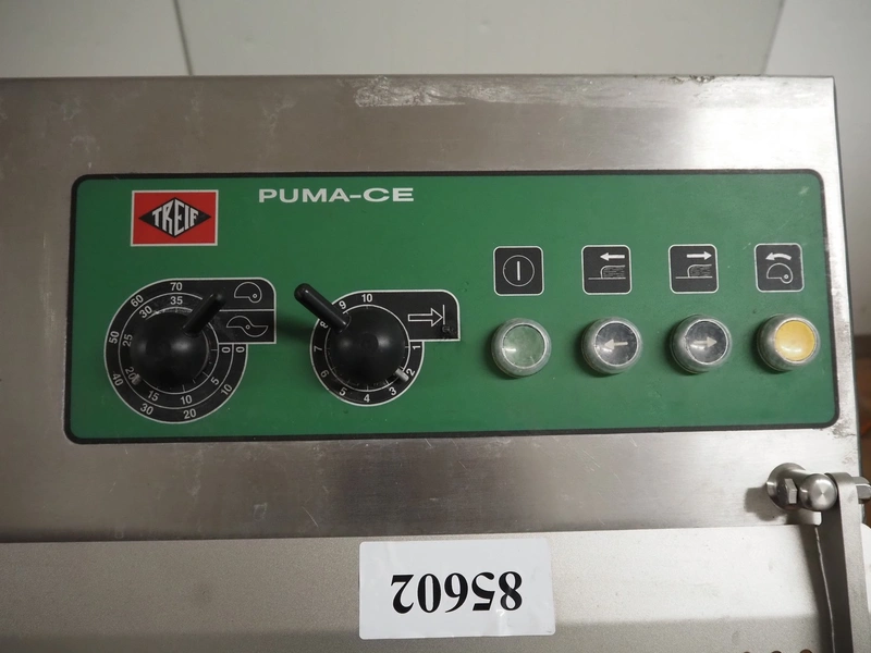 Treif maschinenbau GmbH slicer, model: PUMA-CE, chamber: 230 mm x 250 mm, diameter knive: 550 mm, total dimensions: 1830 mm x 900 mm x 1410 mm.