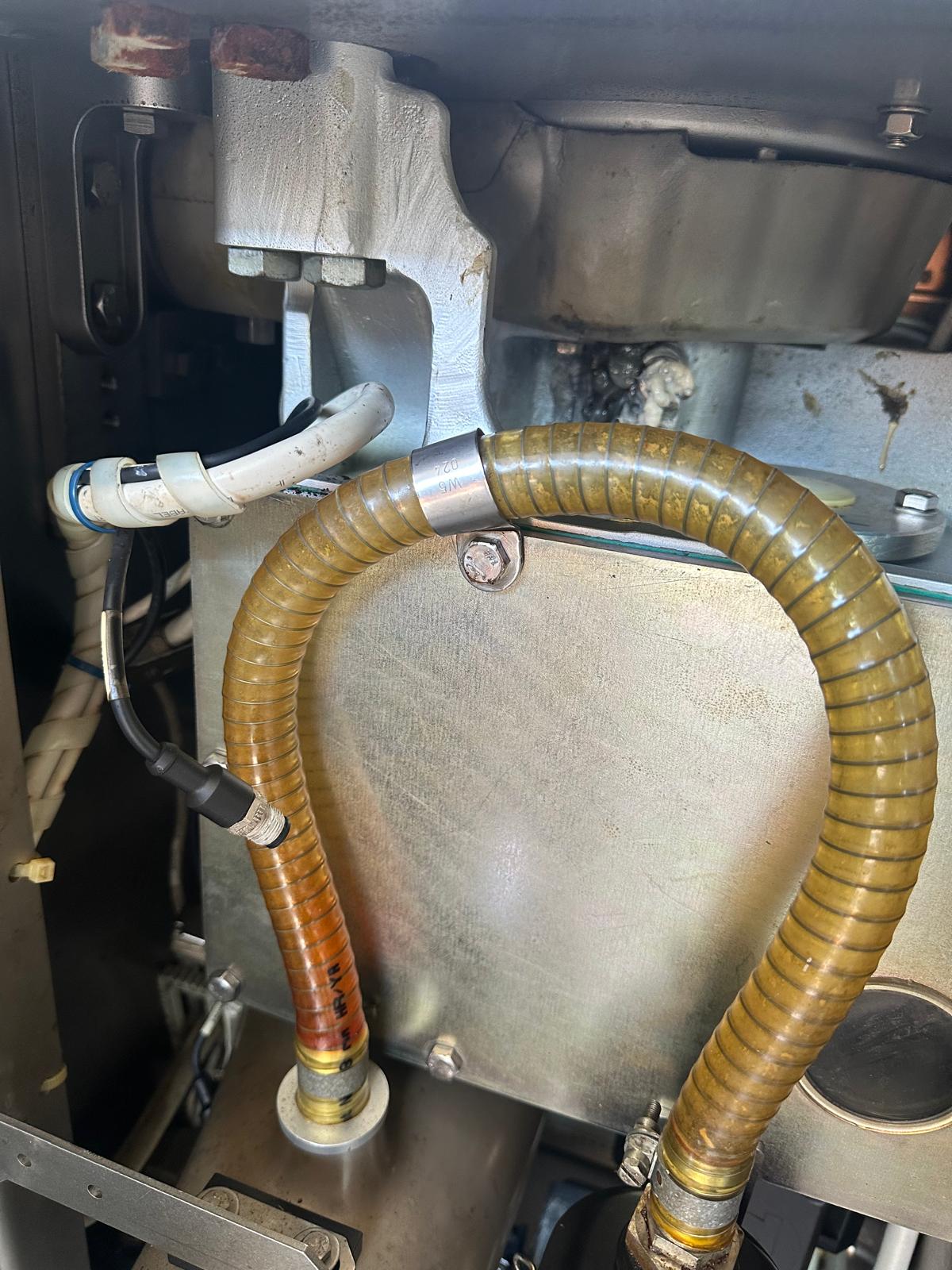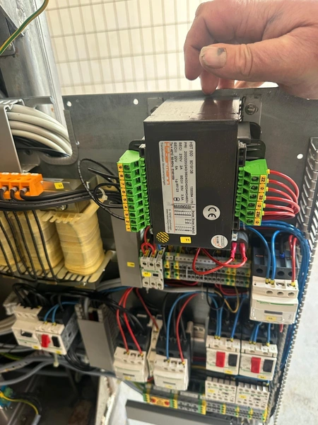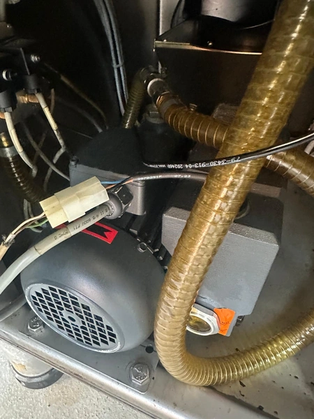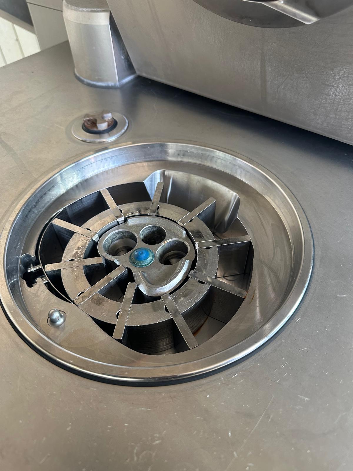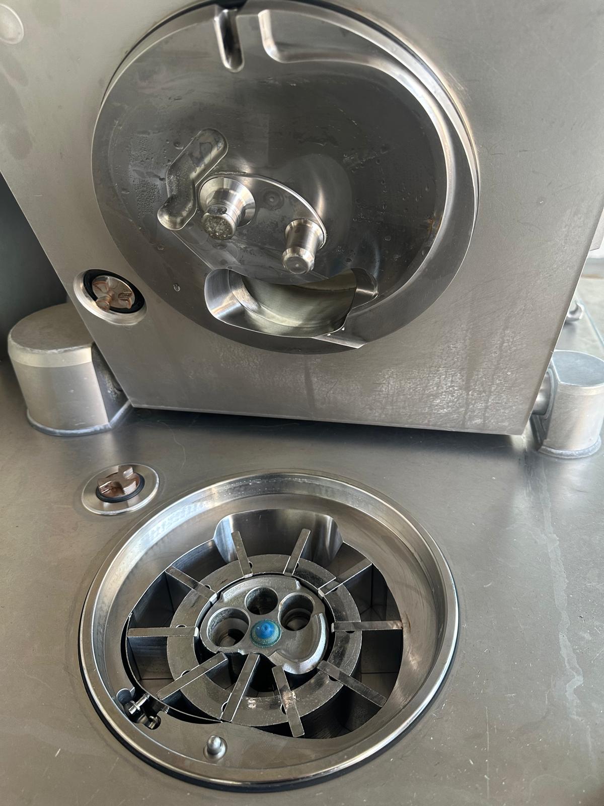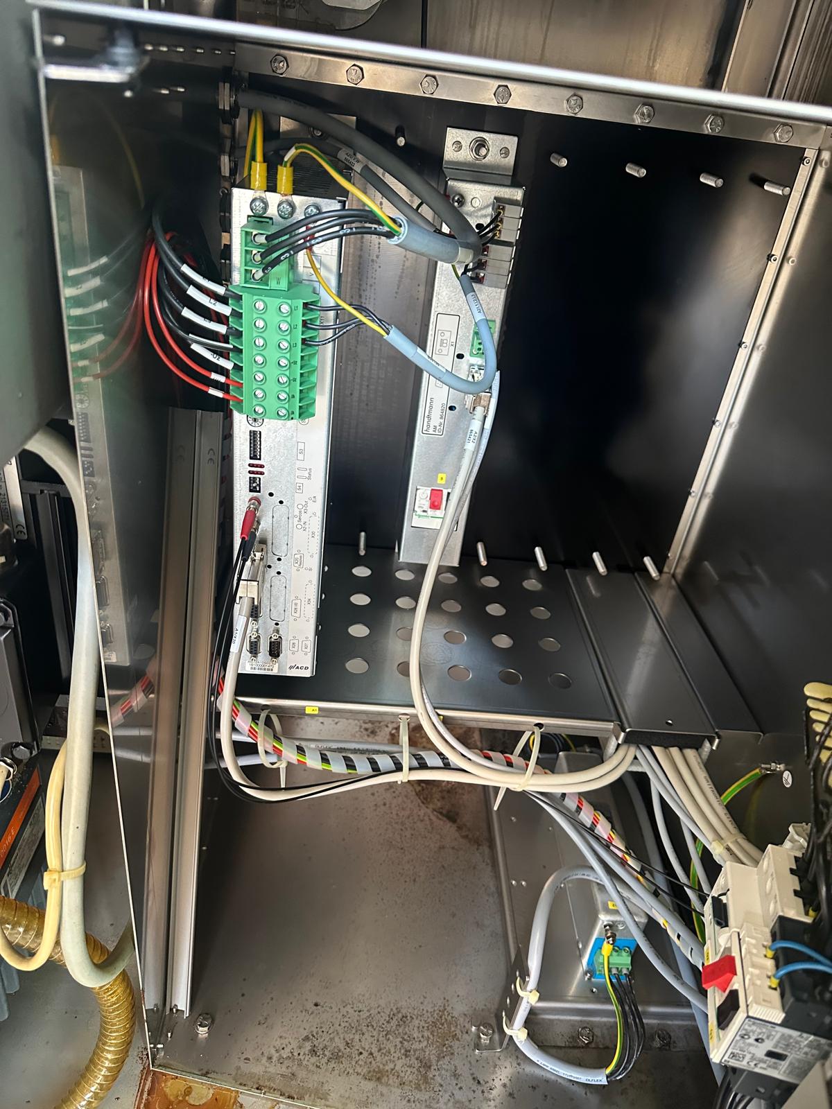 Handtmann vacuum filling machine with lifter for 200 liter meat bins, type: VF612K, number: 33293, year of construction: 2013, 400 V, 3 Ph, 50 Hz 4.5 kW, 6.5 A, 1200 kg, dimensions: 2100 mm x 1400 mm x 2200 mm.