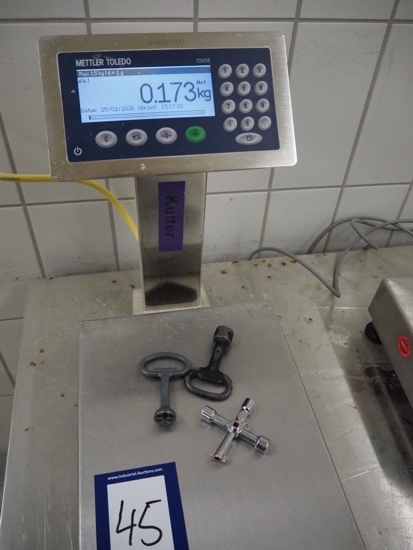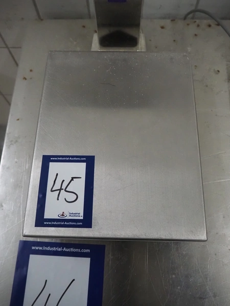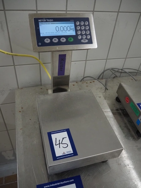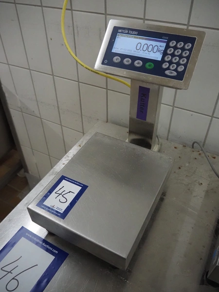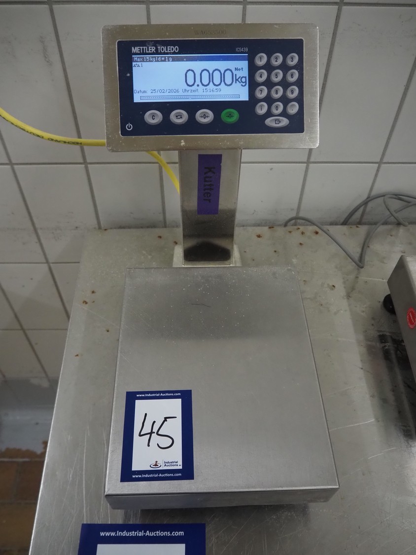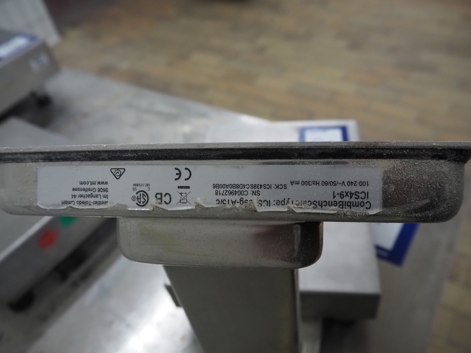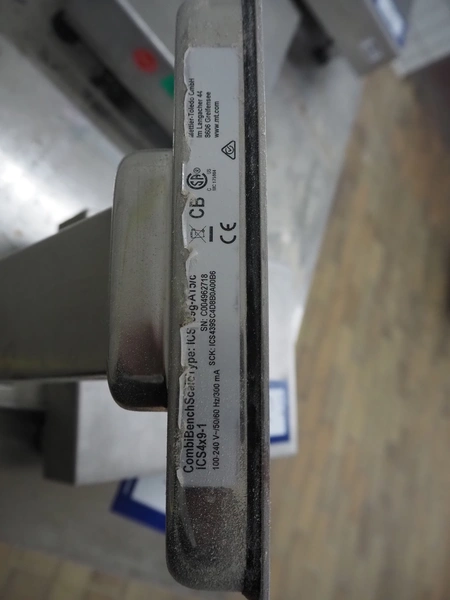 Mettler Toledo weighing scale with indicator, type: ICS4x9-1, serial number: C004962718, 100/240 V, 50/60 Hz, 300 mA, scale dimensions: 300 mm x 240 mm, total dimensions: 420 mm x 240 mm x 390 mm.