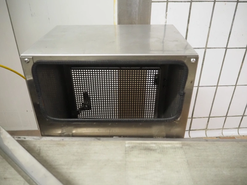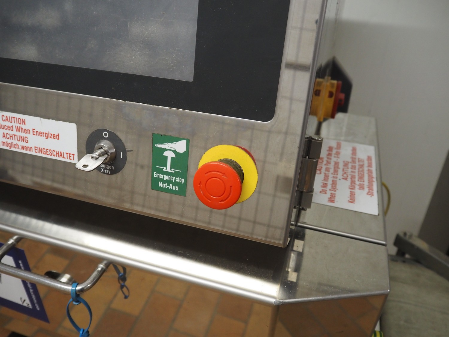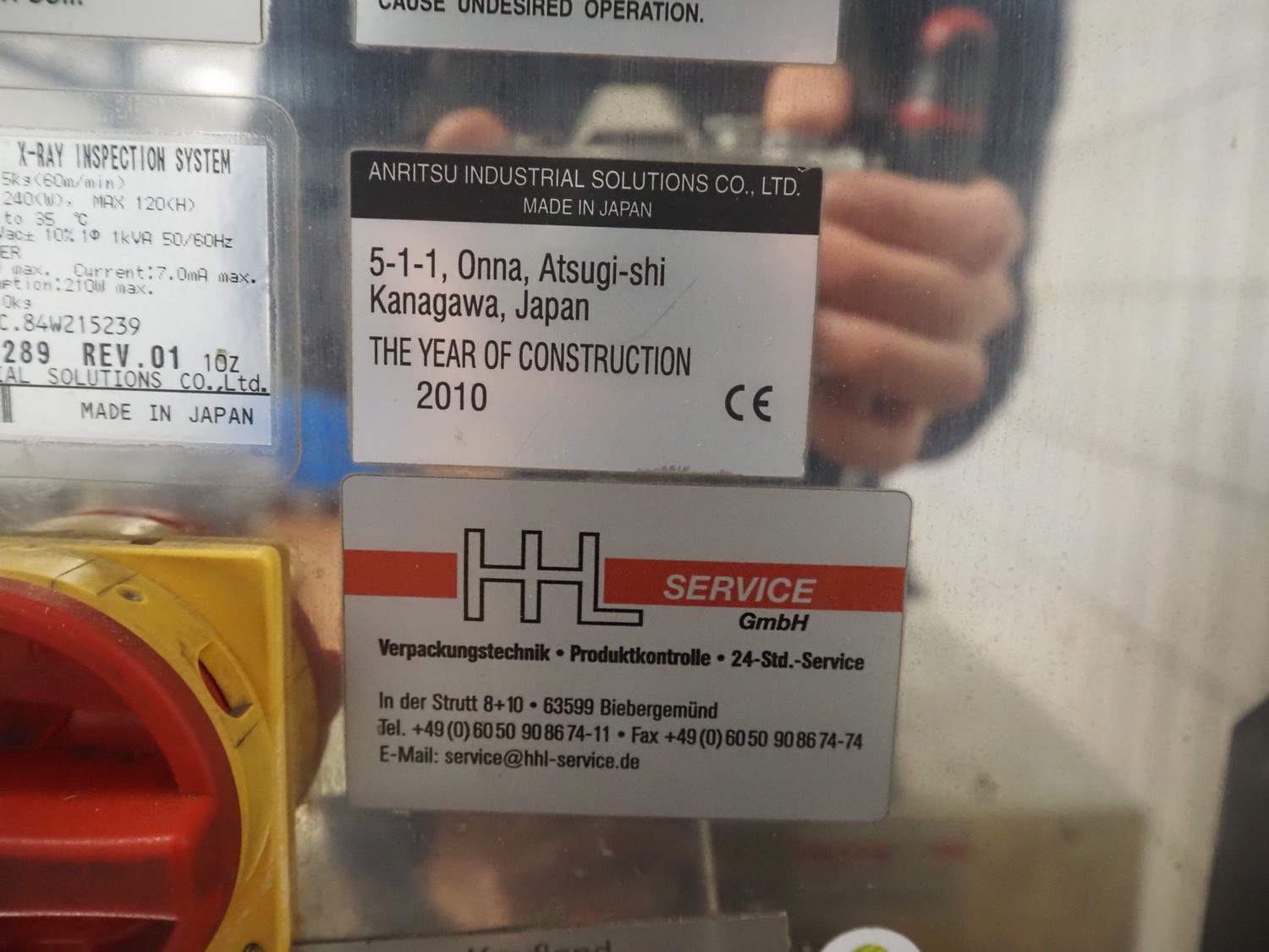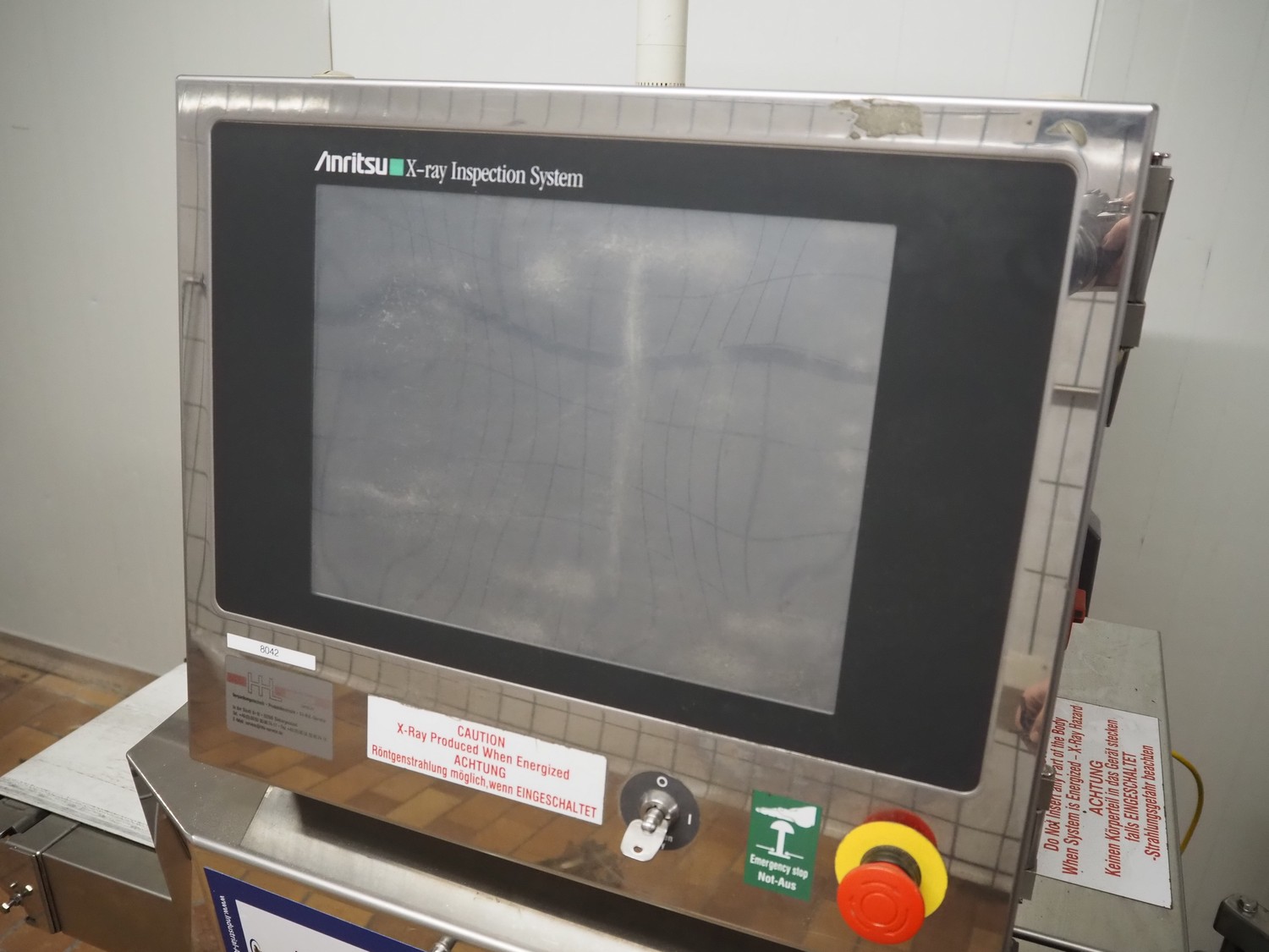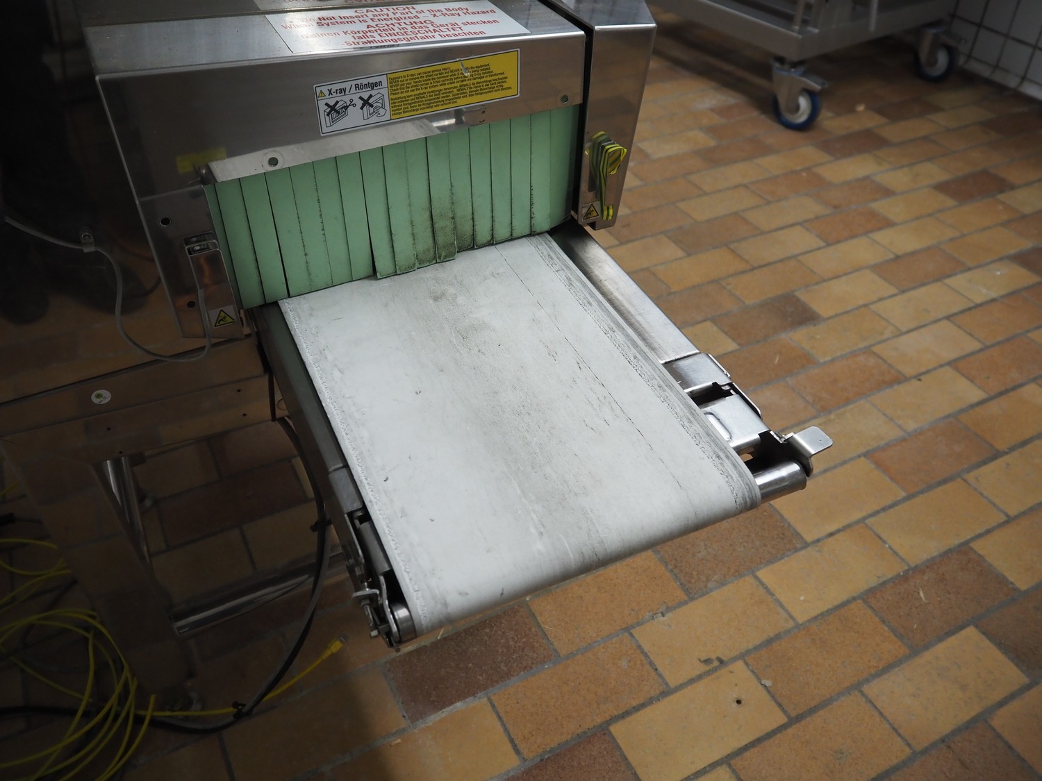 Anritsu Industrial Solutions Co.,Ltd. X-ray scanner with rejector, type: KD7405AWH, serial number: 4600139289, 230 V, 50/60 Hz, maximum product weight: 5 kg, maximum product size: width: 240 mm, height: 120, clearance: 340 mm x 140 mm, plastic belt, belt width: (1x) 270 mm, (1x) 220 mm, total dimensions: (1x) 1100 mm x 760 mm x 1680 mm, (1x) 690 mm x 700 mm x 870 mm.
