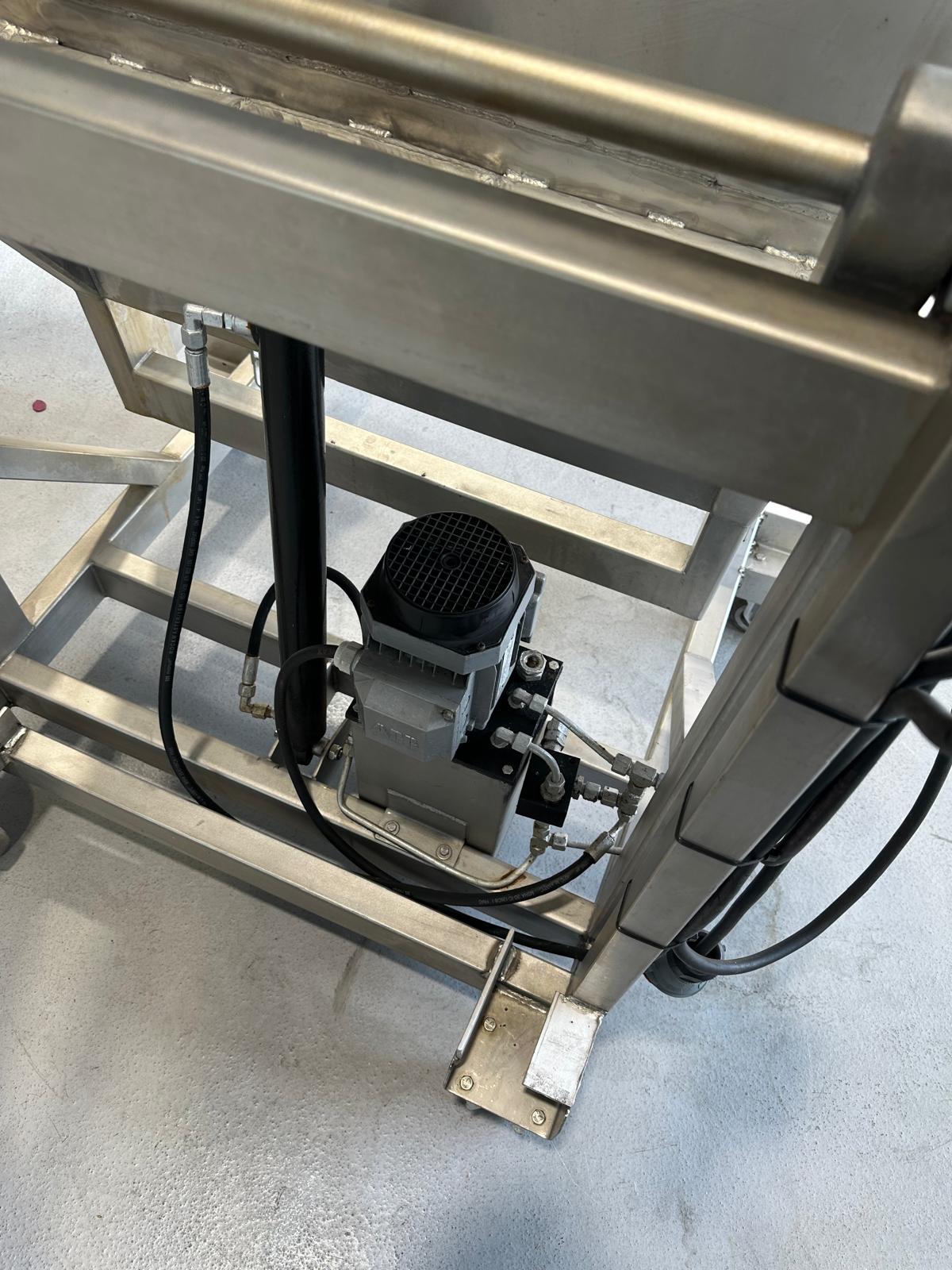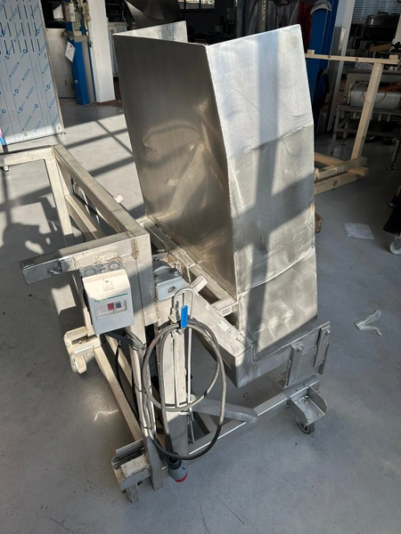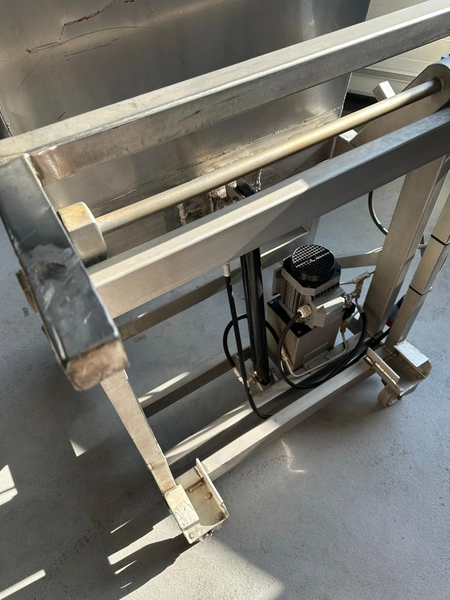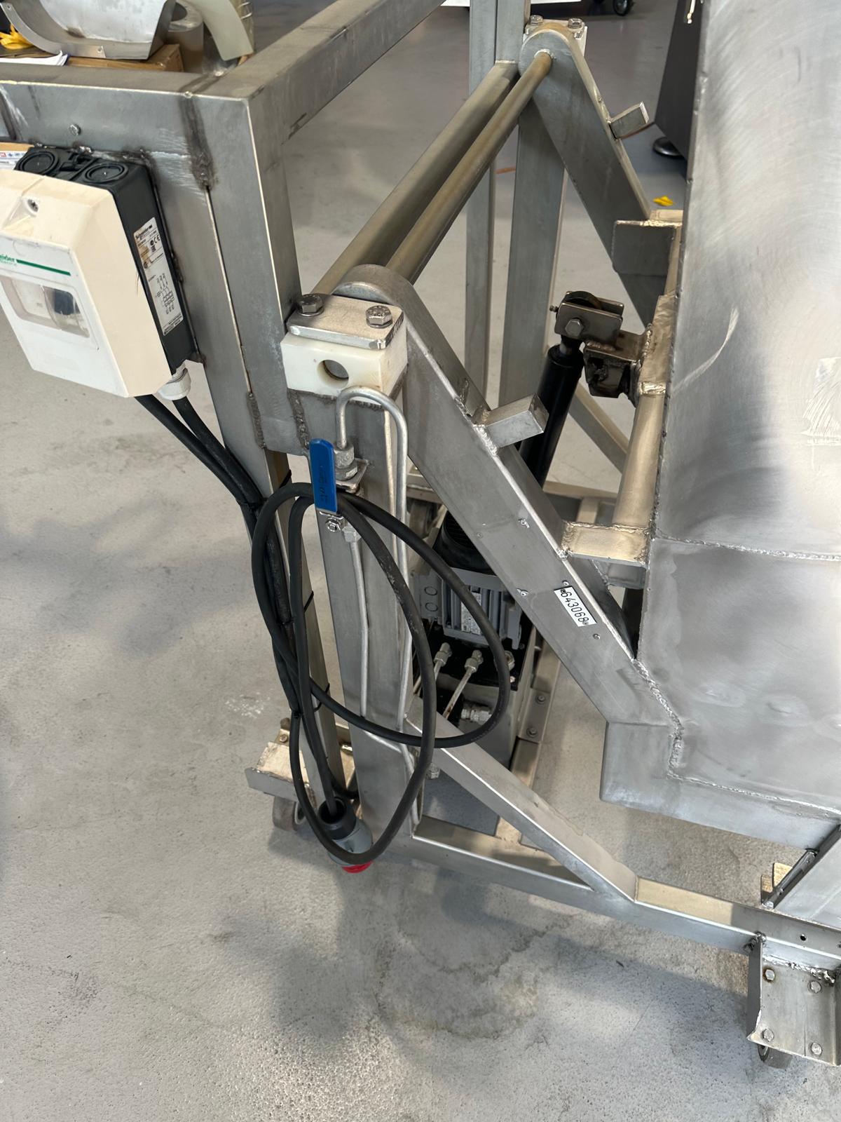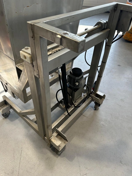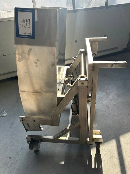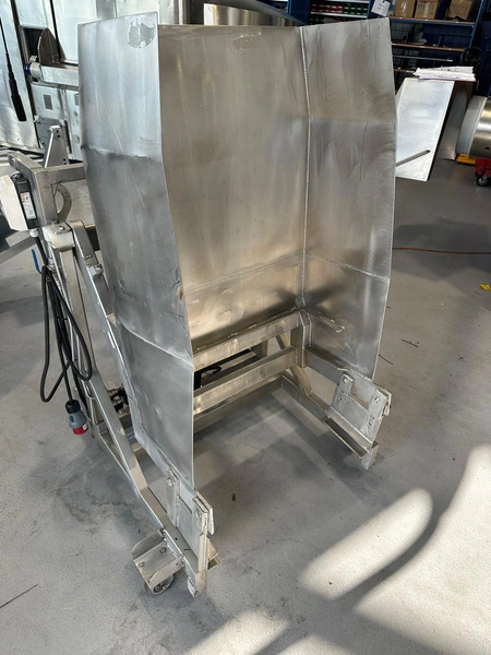 Mobile s/s tilting device for meat bins used for tumbler.