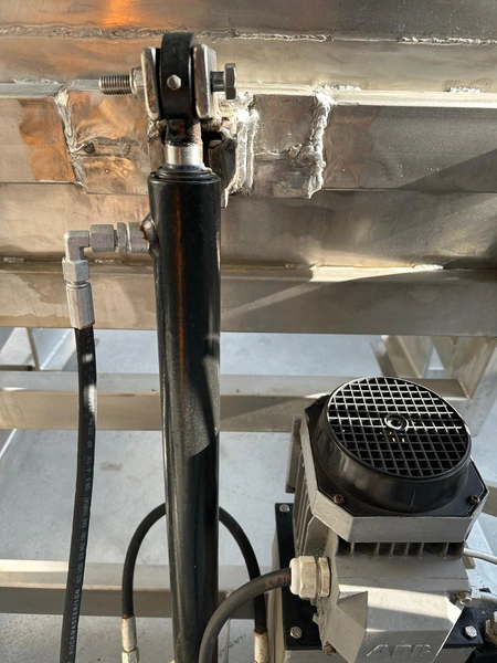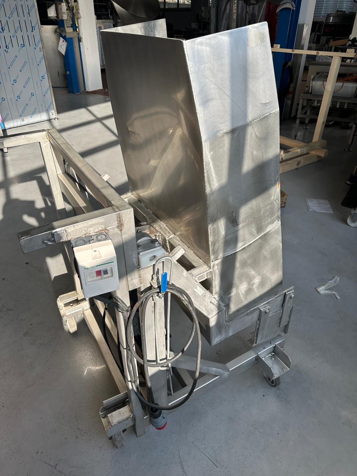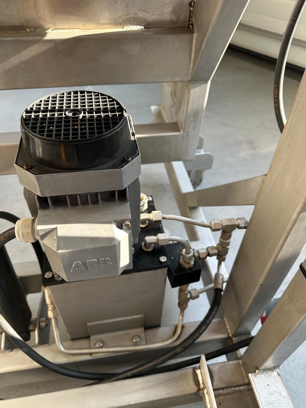Mobile s/s tilting device for meat bins used for tumbler.