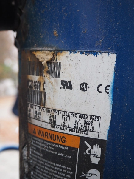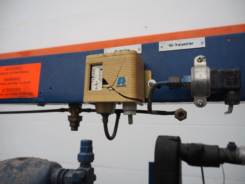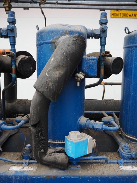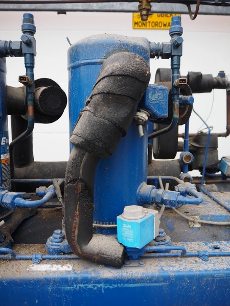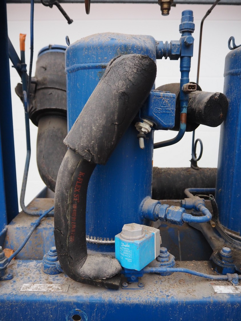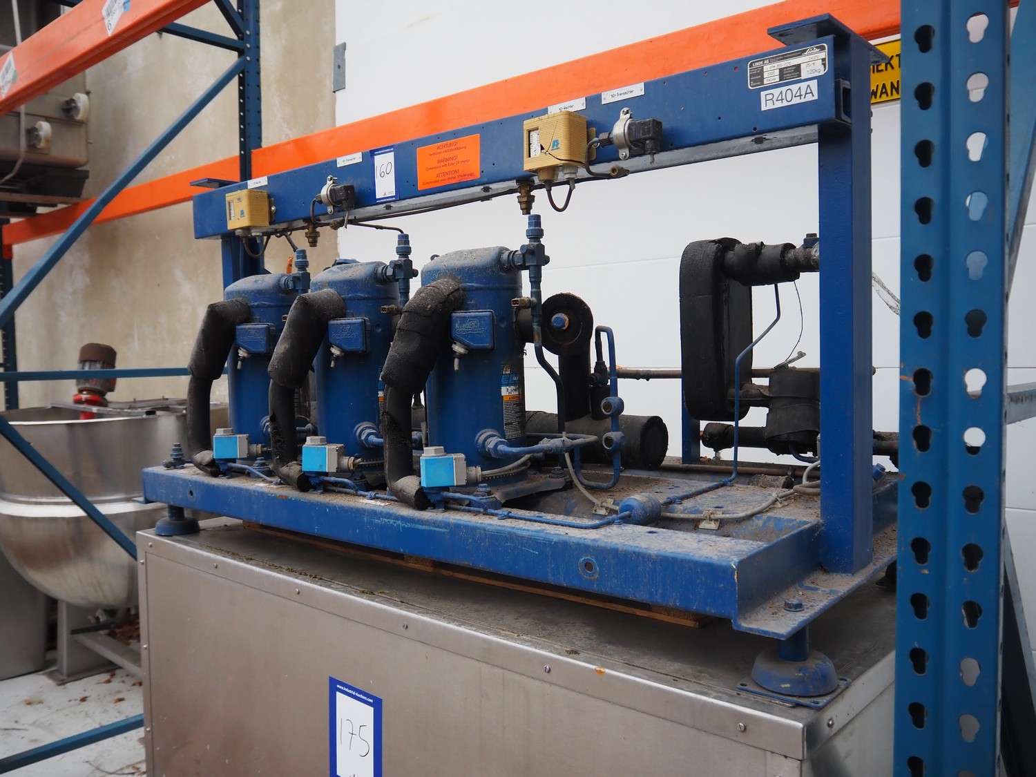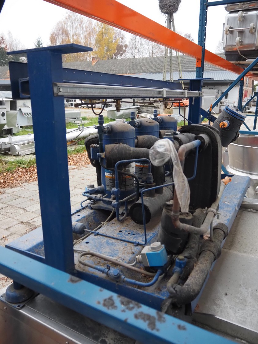 Linde AG compressor rack, type: VPM 355-2210, serial number: 24370, year of construction: 2000, refrigerant: R404A, with 3 Copeland scroll compressors, type: ZF09K4E-TFD-551, dimensions: 1530 mm x 730 mm x 810 mm.