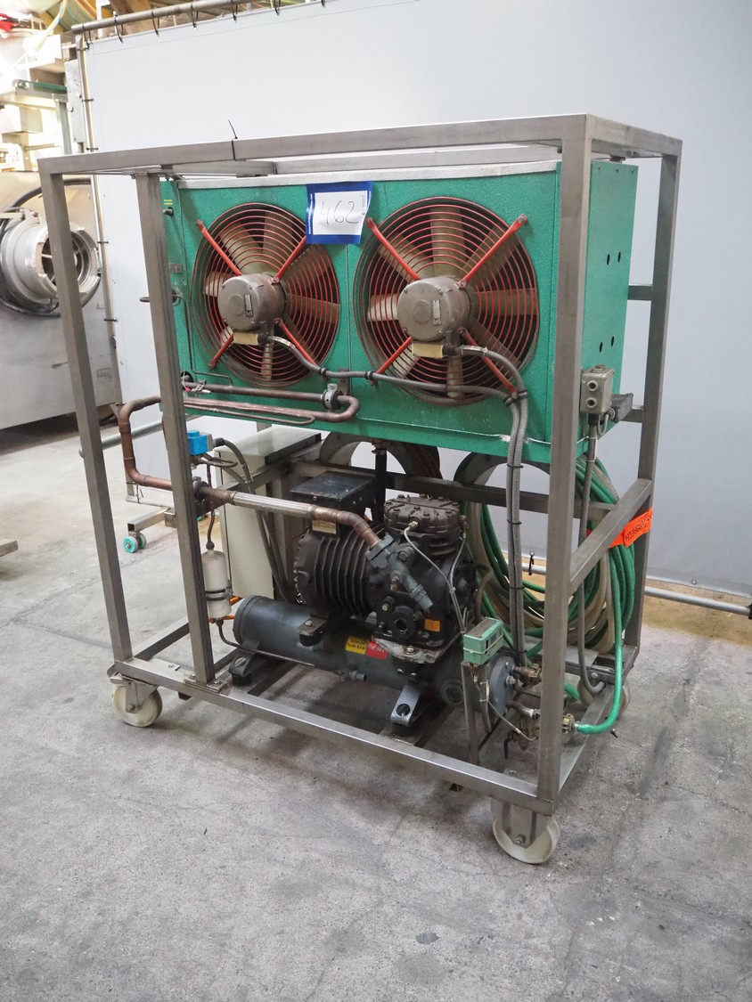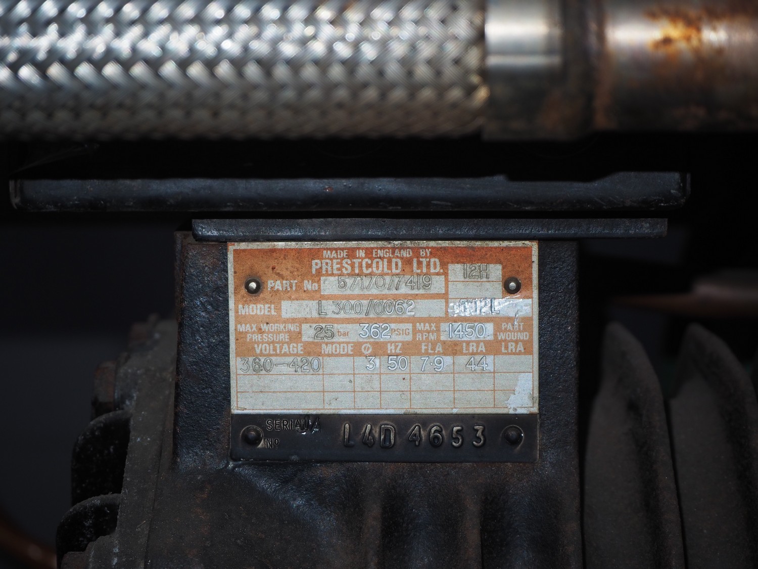 Prestcold mobile cooling compressor, type: L300/0062, number: 57170/7419, 360-420 V, 3 Ph, 50 Hz, dimensions: 1400 mm x 800 mm x 1650 mm.