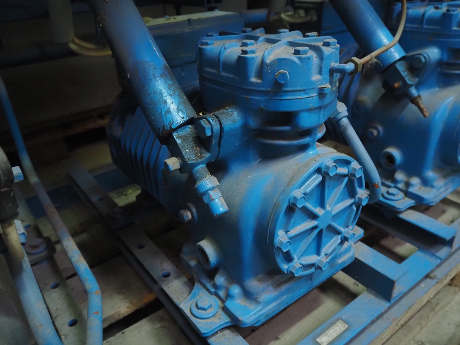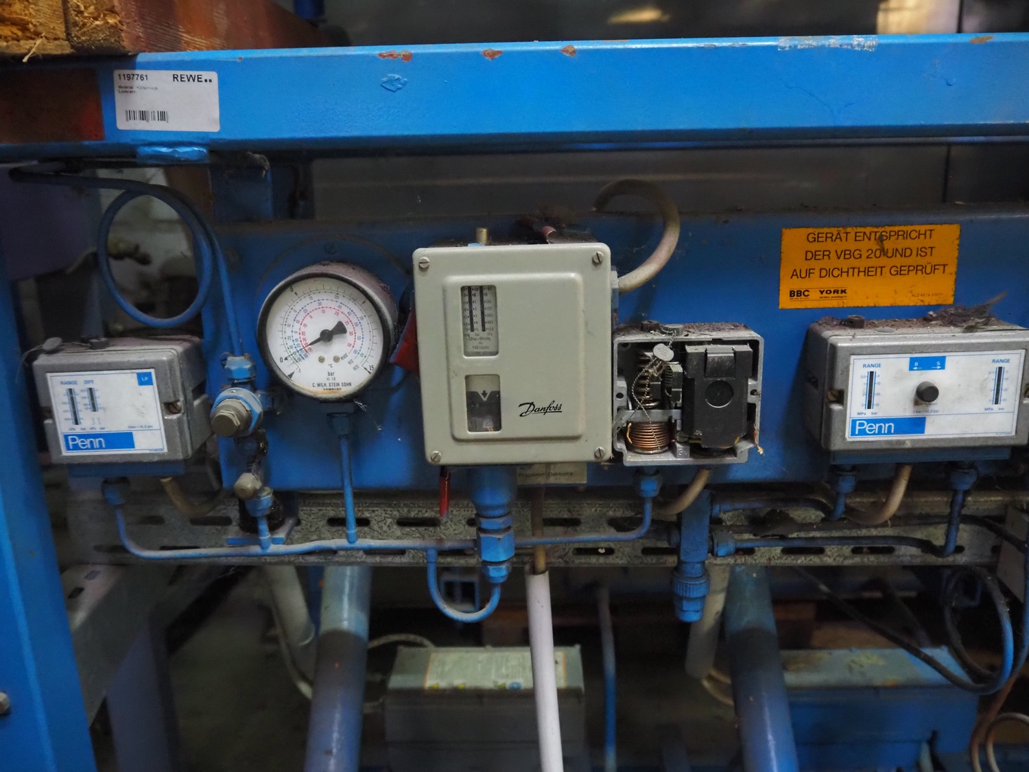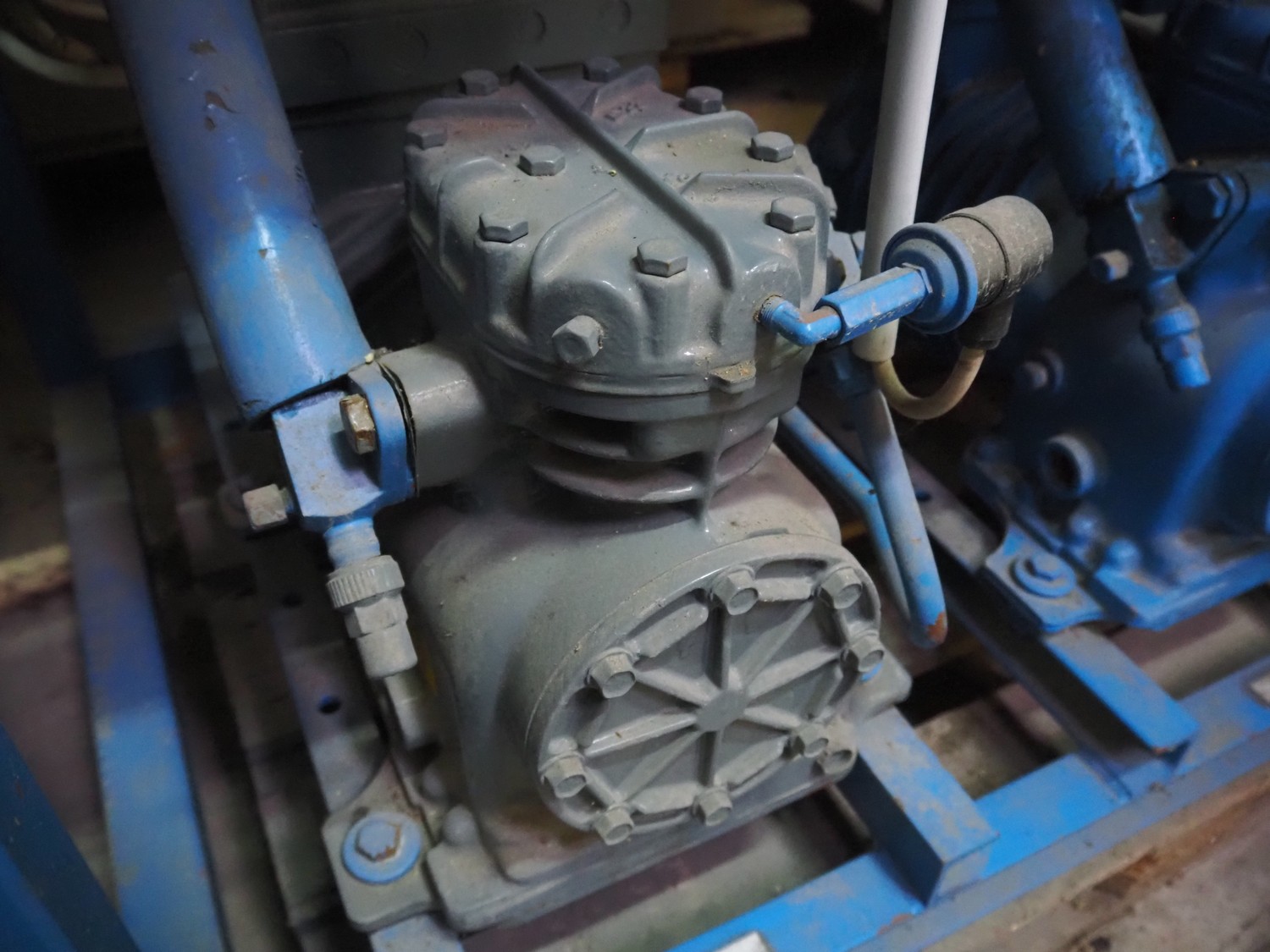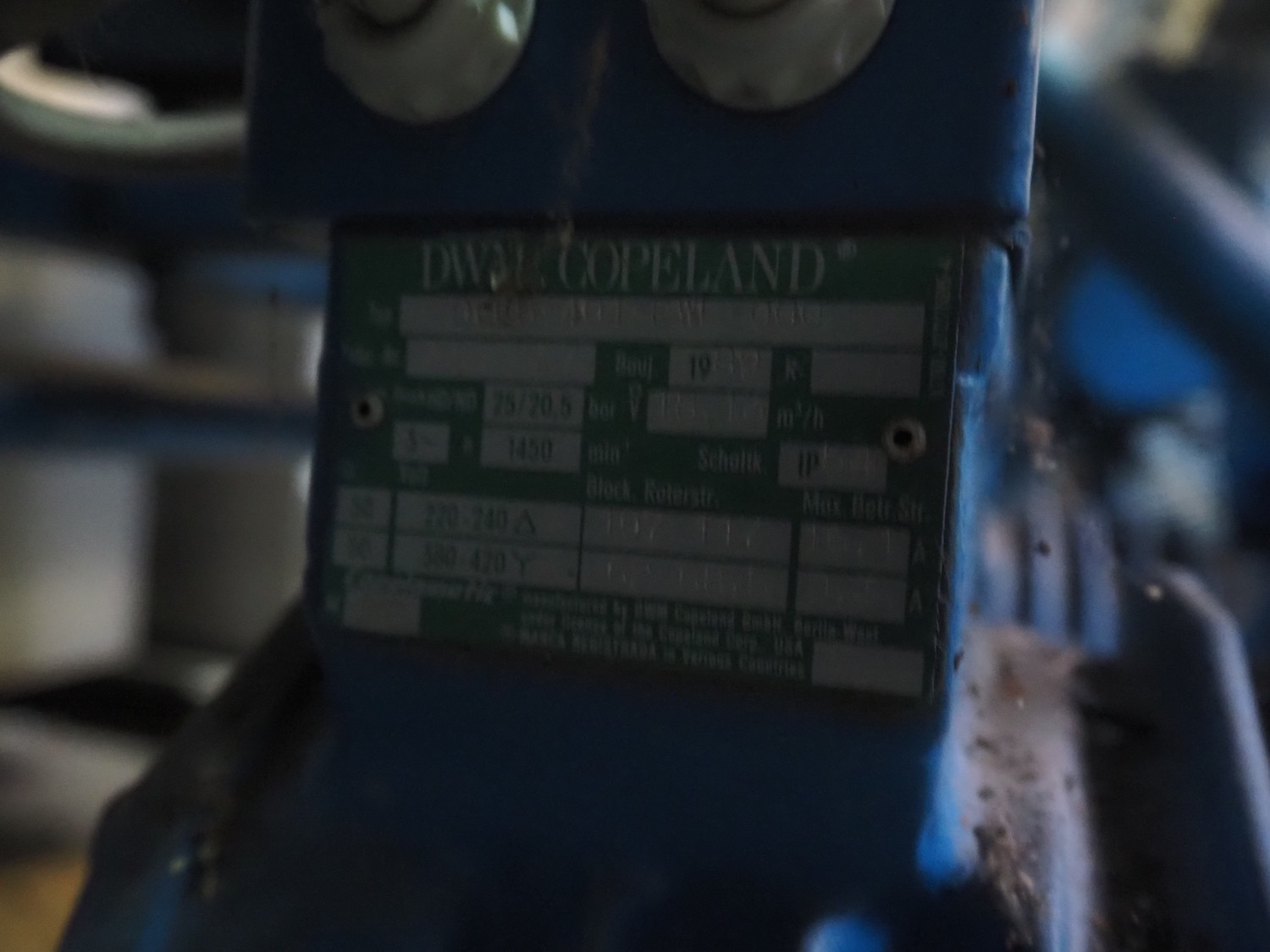 BBC York compressor rack with 3 Copeland cooling compressors, model: DLLE-401-EWL and DLLB 401 EWL, 220-240/380-420 V, 3 Ph, 50 Hz, dimensions: 2100 mm x 900 mm x 1100 mm.