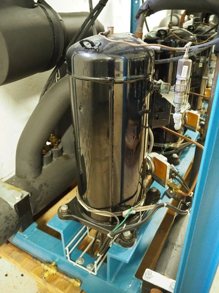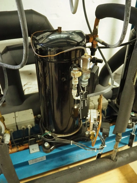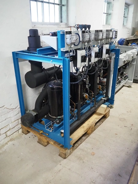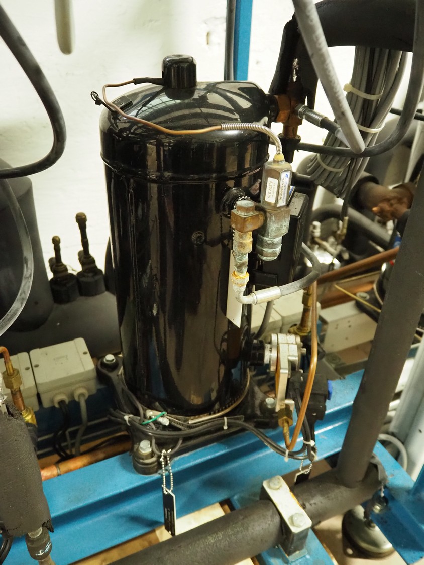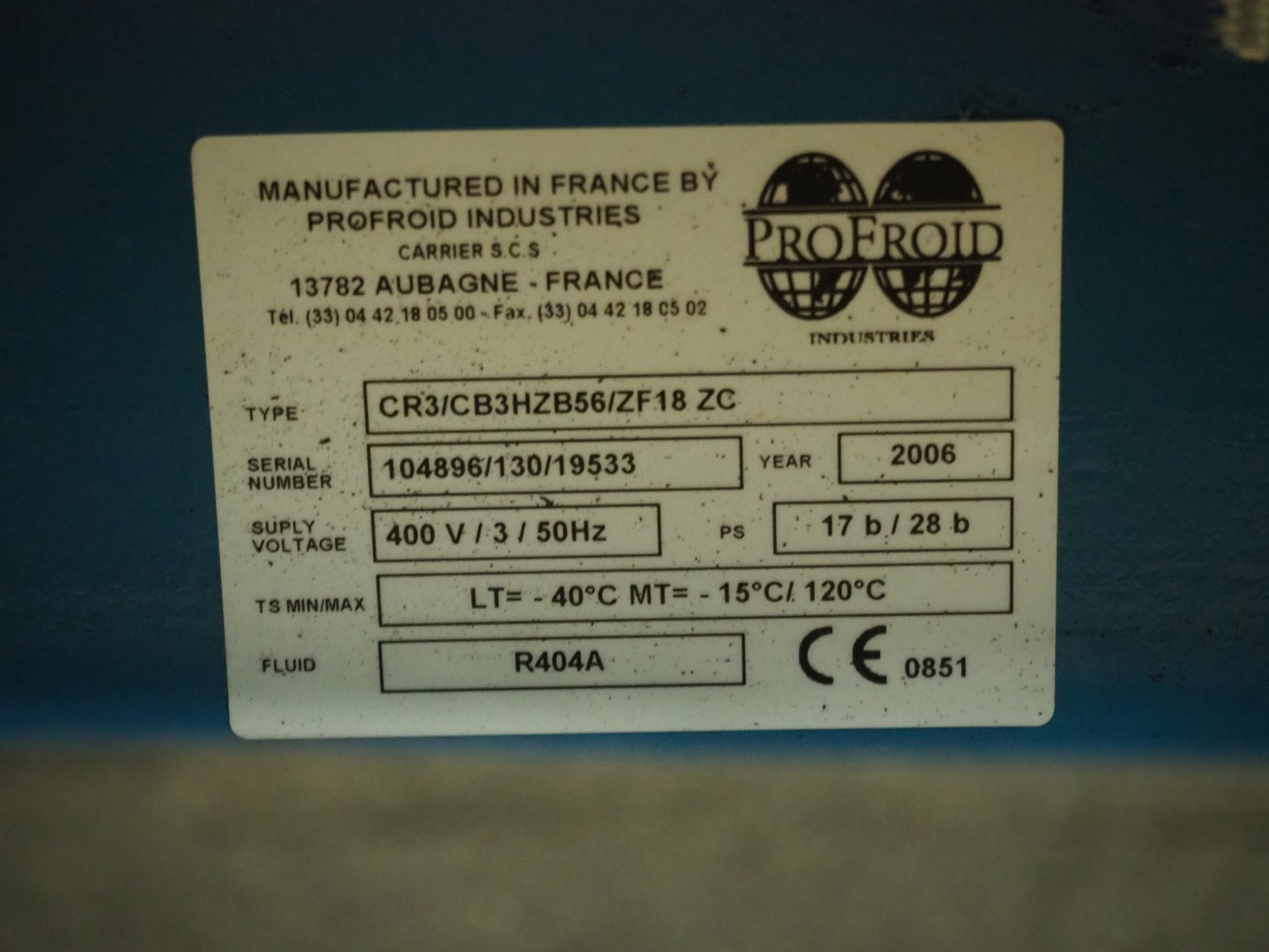 Profroid compressor rack, type: CR3/CB3HZB56/ZF18 ZC, serial number: 104896/130/19533, year of construction: 2006, 400 V, 3 Ph, 50 Hz, refrigerant: R404A, 3 Copeland Scroll cooling compressors, model: ZF18K4E-TFD-551, dimensions: 1350 mm x 770 mm x 1330 mm.
