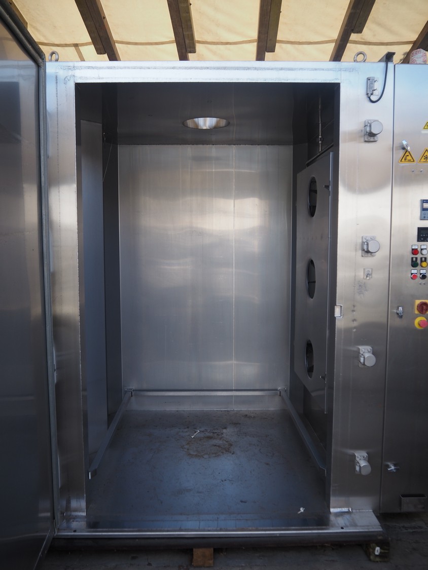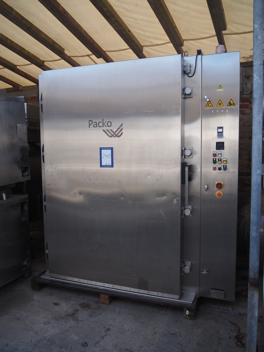 Packo blast chiller, model: Batch Freezer 3750L, serial number: 1BF16063, year of construction: 2016, inside dimensions: 1350 mm x 1250 mm x 2150 mm. Missing fan, without cooling compressor.