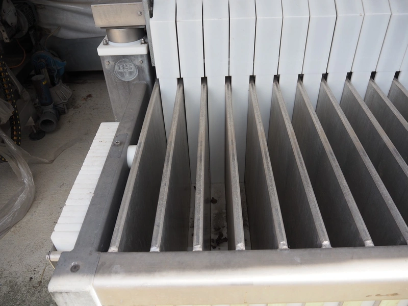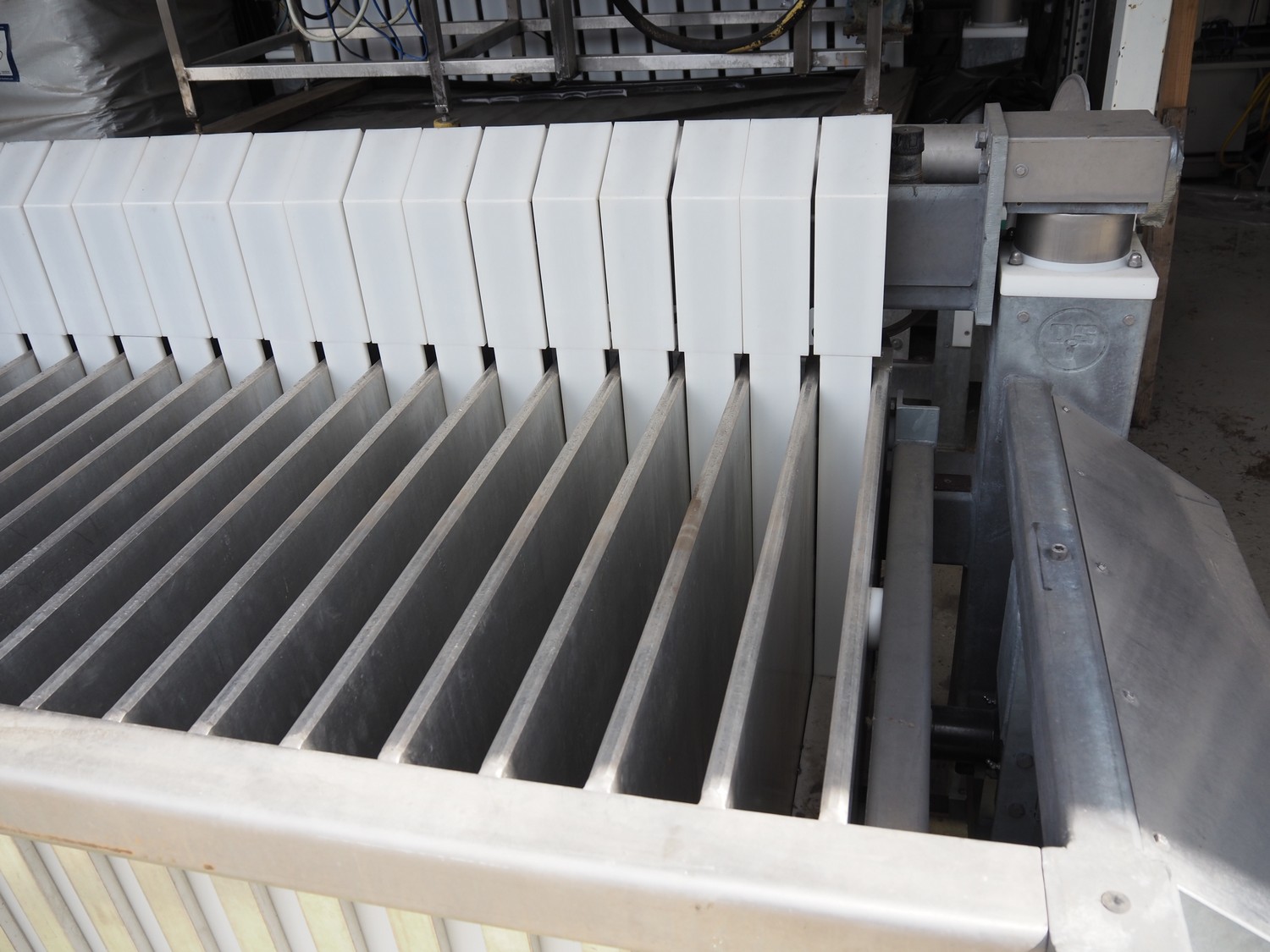 DSI Freezing Solutions vertical plate freezer, type: V-5 25/75, number: 2815, year of construction: 02/2011, fluids: R22/R717, volume: 185 liter, 25 plates, space between plates: 80 mm x 820 mm x 570 mm, total dimensions: 3300 mm x 1360 mm x 1230 mm.