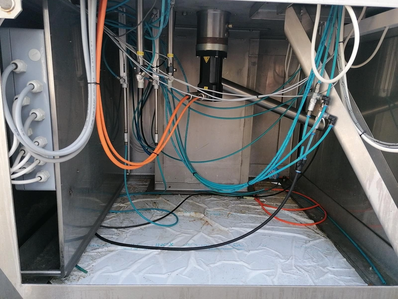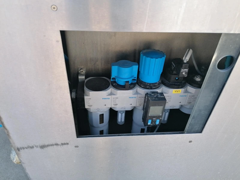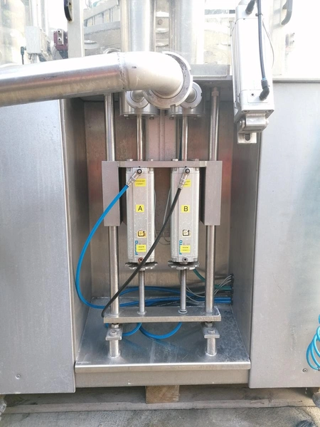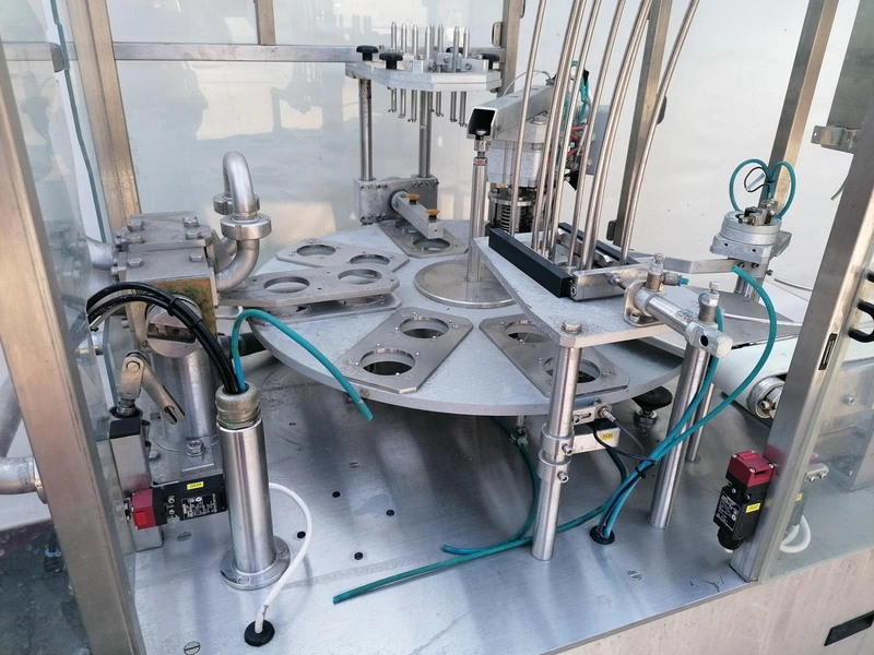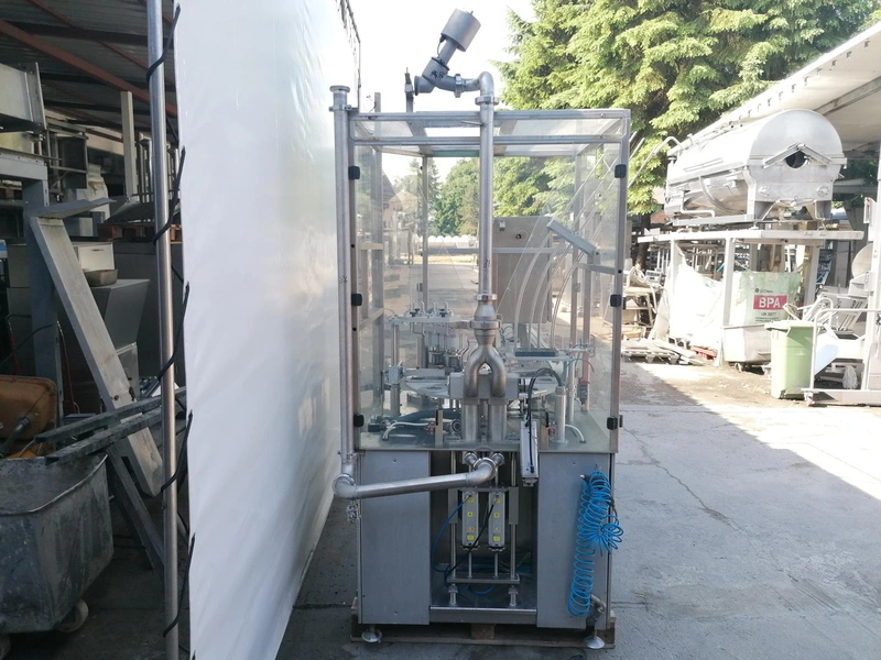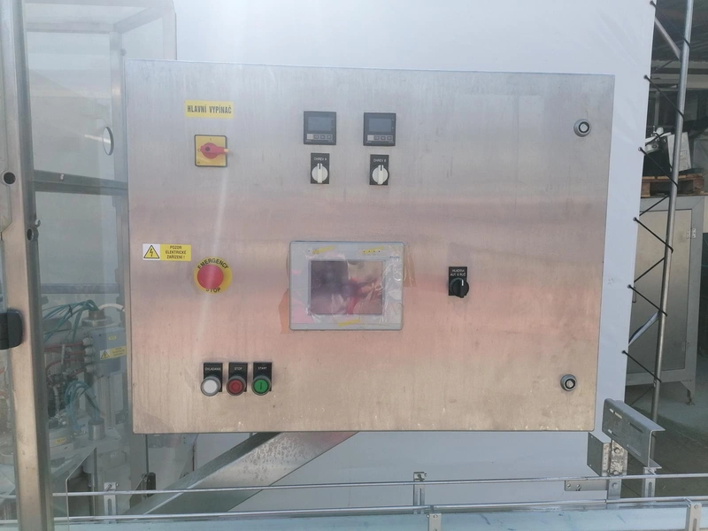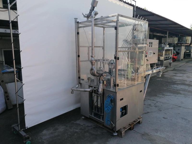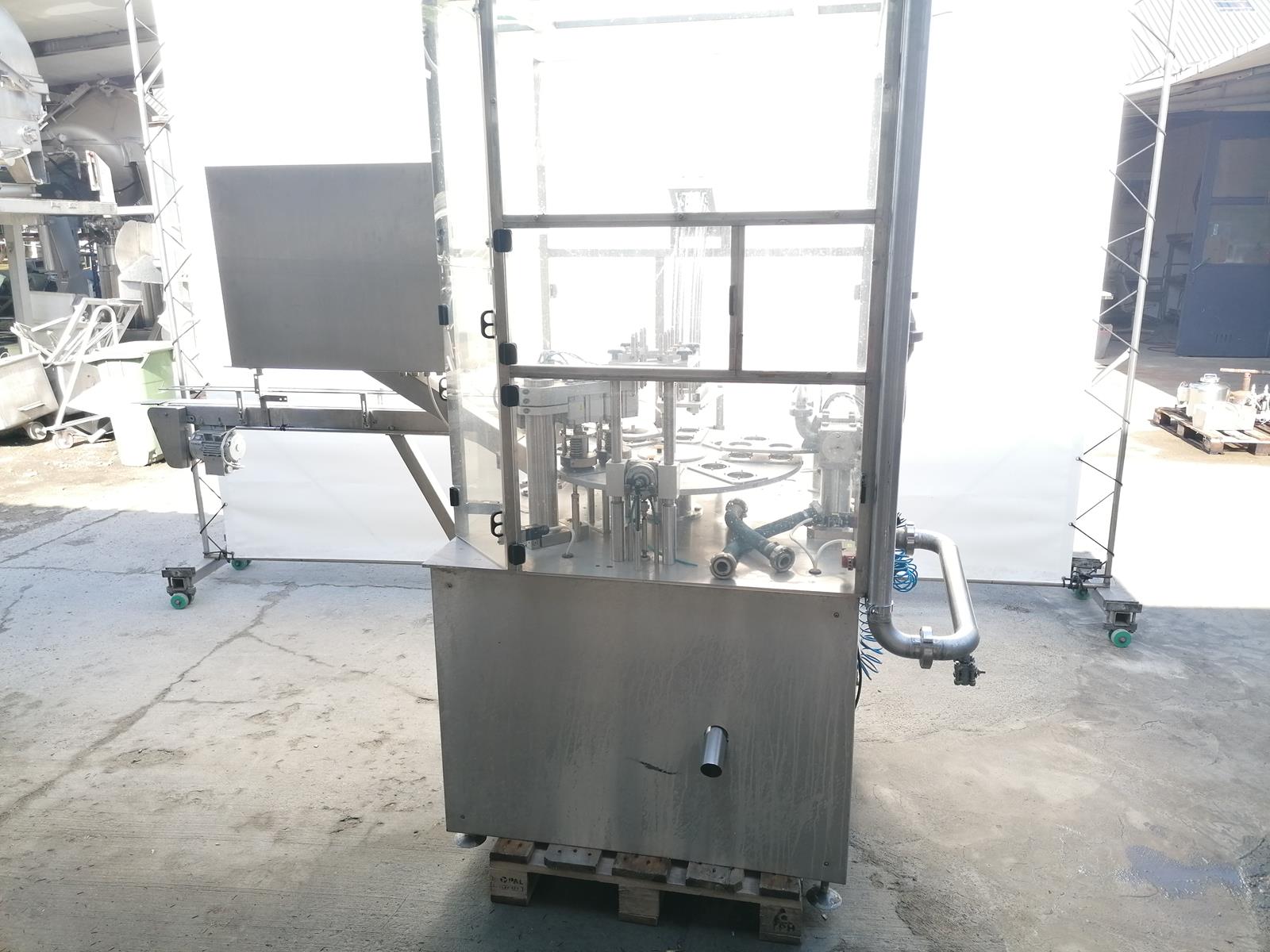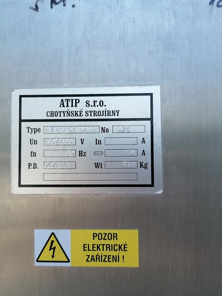 ATIP s.r.o. cup filling and closing machine, type: ATIPACK 5400, number: 026, year of construction: 06/2005, 230/400 V, 50 Hz, 8/20 A, weight: 650 kg, dye: (2x) Ø 70 mm, plastic outfeed belt, belt width: 80 mm, total dimensions: 2000 mm x 1130 mm x 2540 mm.