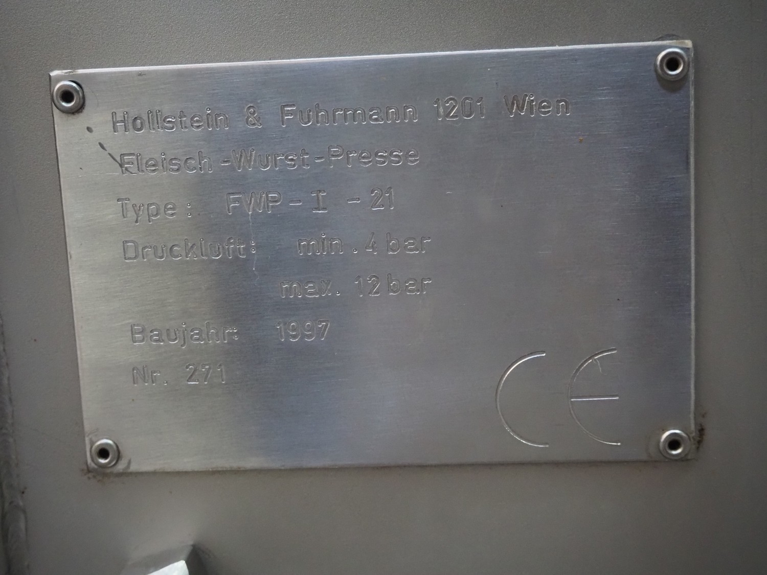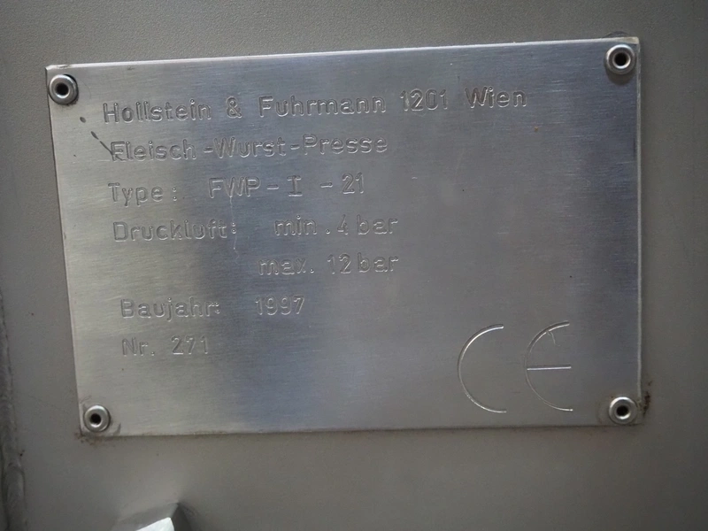 Inject Star meat press for 16 plates, type: FWP-I-21, number: 271, year of construction: 1997, inside dimensions: 1500 mm x 500 mm x 1240 mm, total dimensions: 1970 mm x 600 mm x 1730 mm.