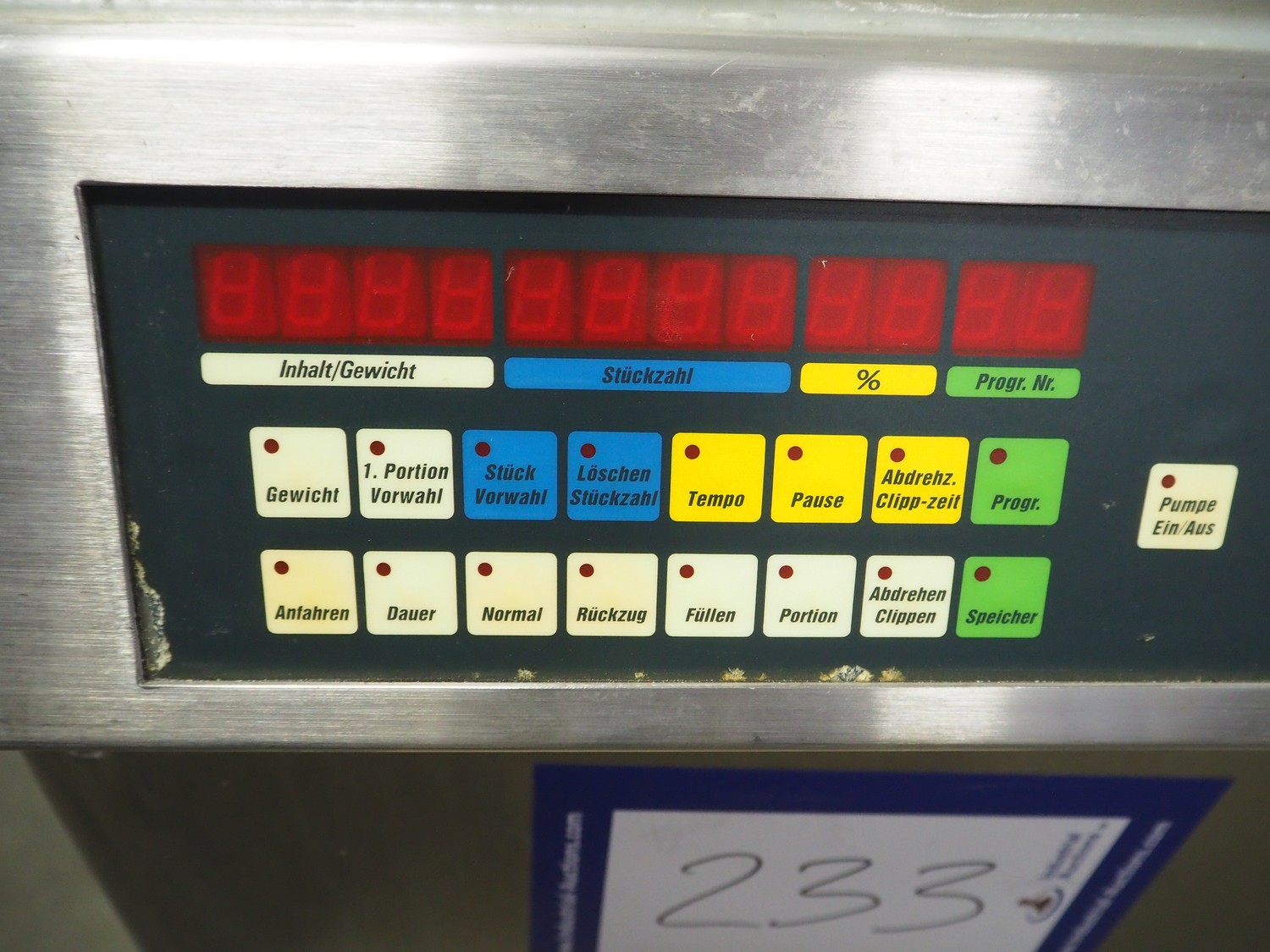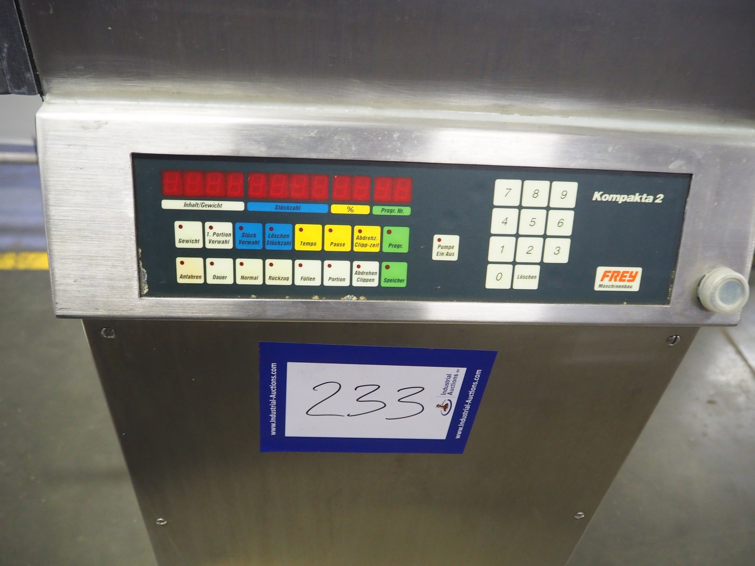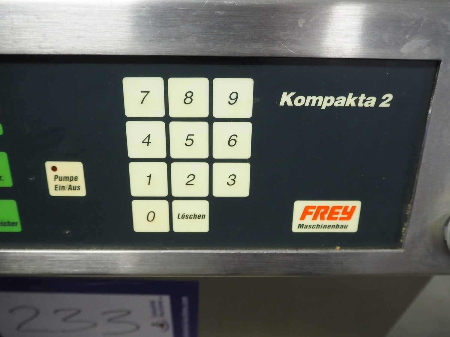 Frey piston filler, type: Kompakta 2, dimensions: 930 mm x 700 mm x 1200 mm. Including extra parts.
