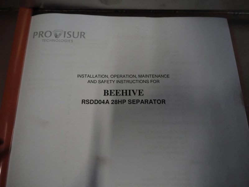 Provisur Technologies beehive separator, type: RSDD04A 28 HP, 380/460 V, 50/60 Hz, 60 A, 34 kVA, s/s worms, dimensions hopper: 650 mm x 500 mm x 300 mm, diameter drum perforations: 1 mm, total dimensions: 2020 mm x 680 mm x 1620 mm.