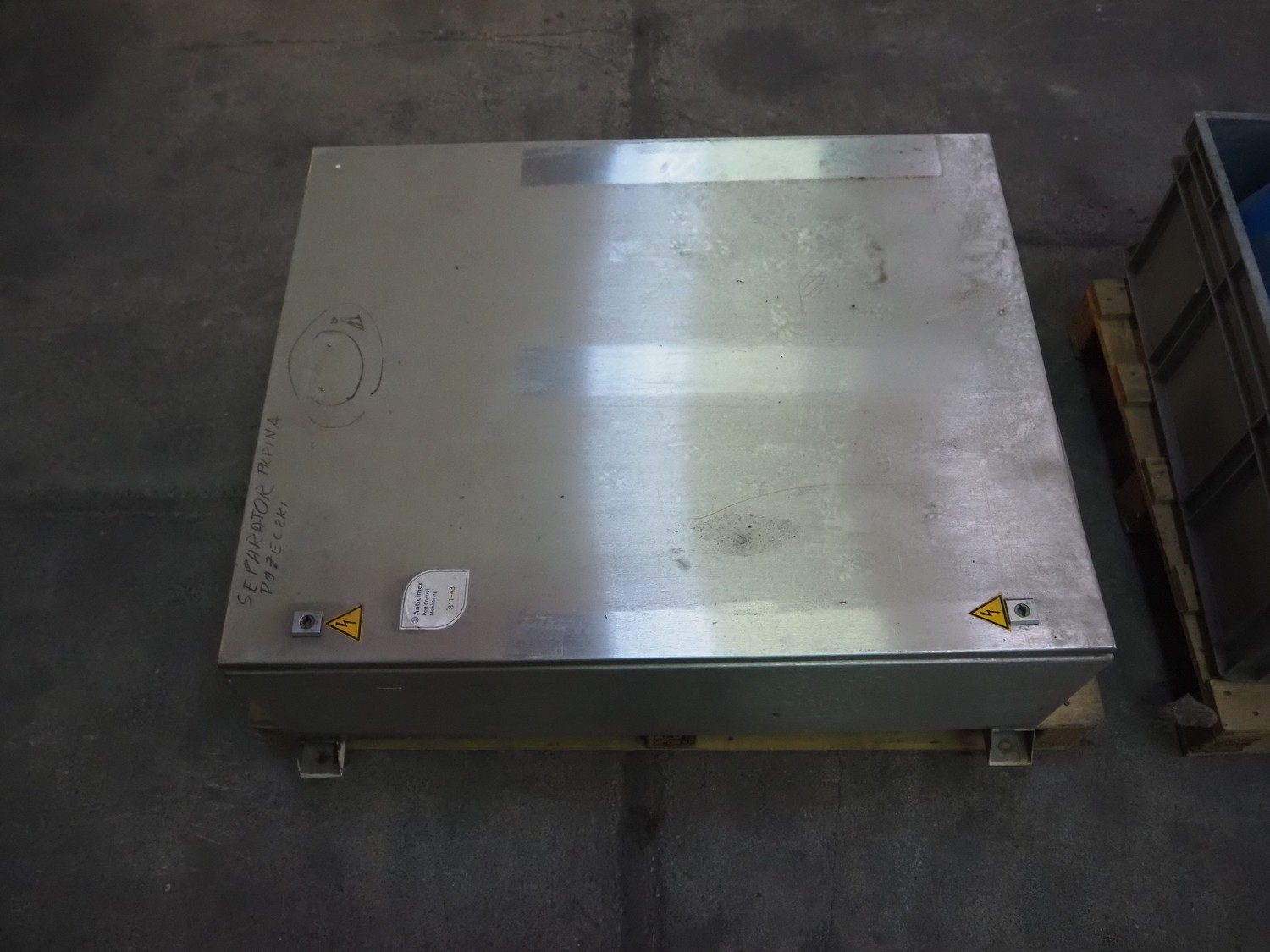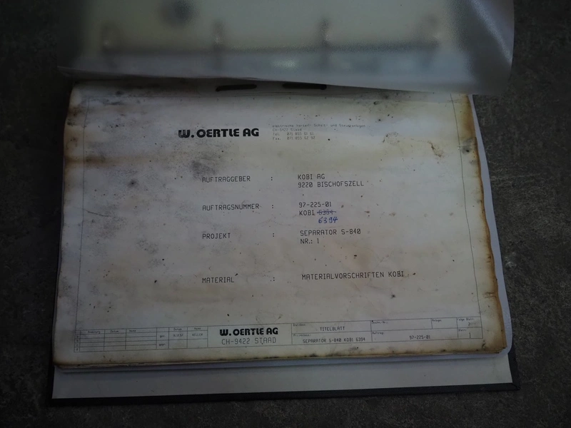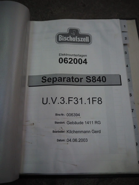 Hoegger Alpina separator, type: S840, plate diameter: 300 mm, dimensions separator: 1450 mm x 1200 mm x 2470 mm, dimensions switch cabinet: 1000 mm x 800 mm x 350 mm.