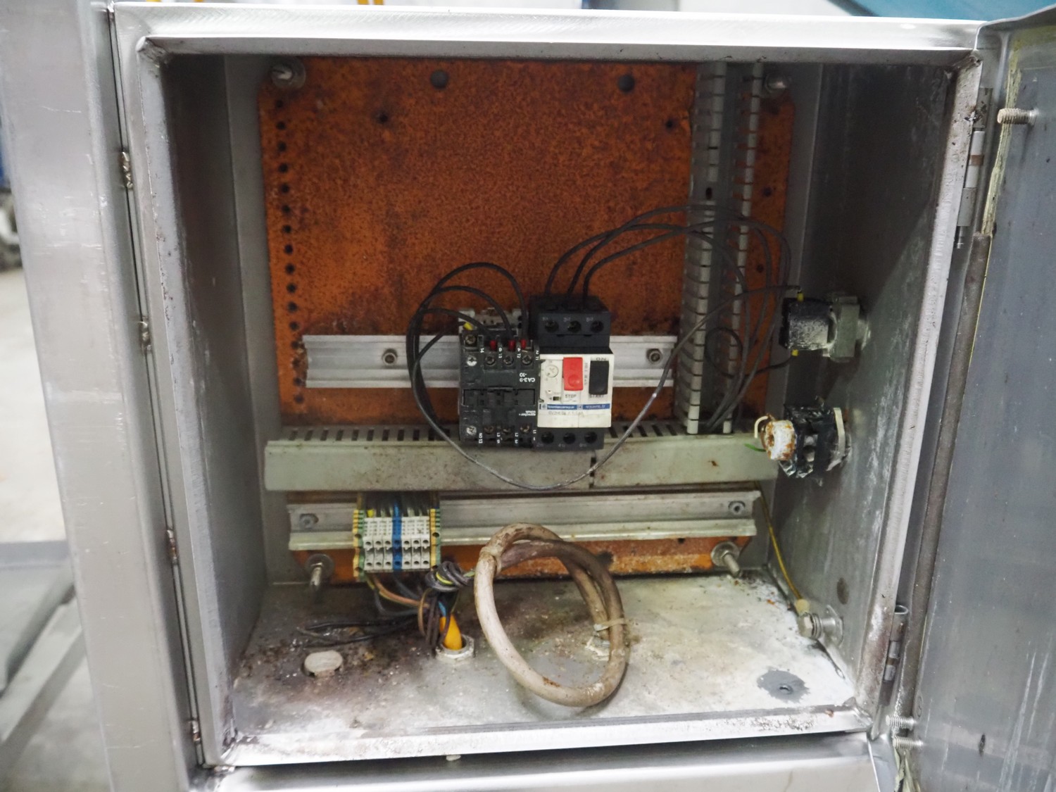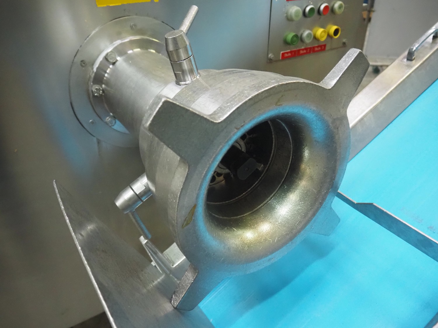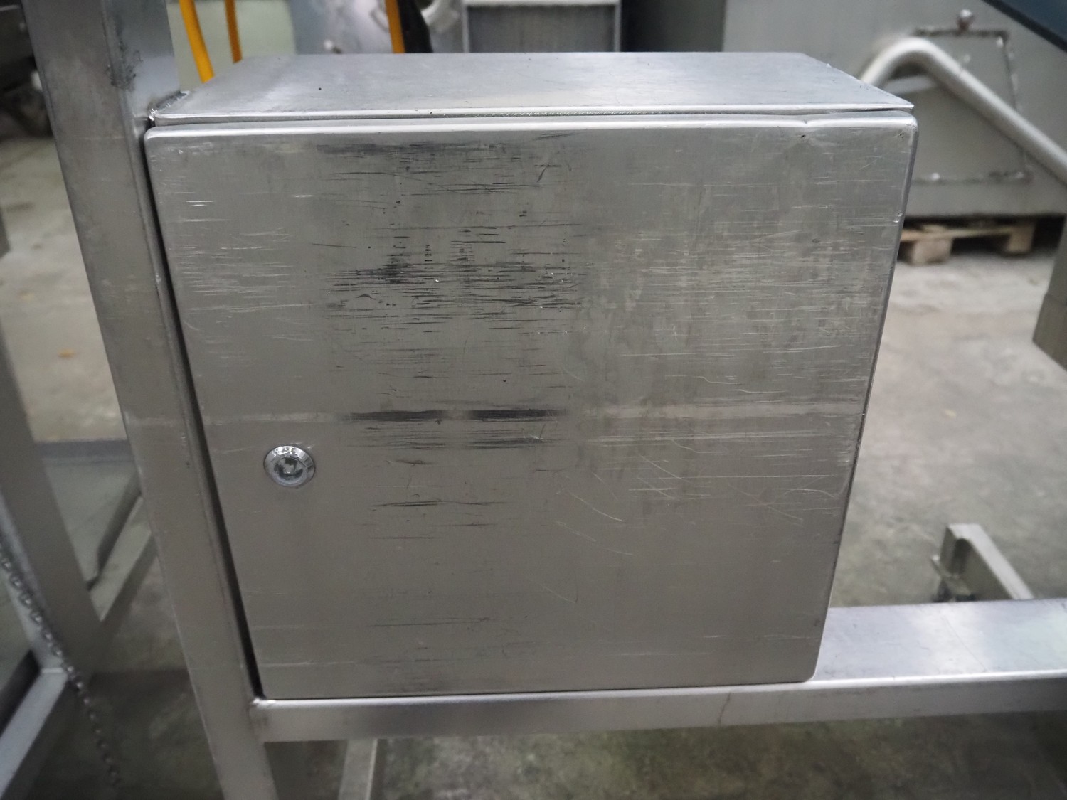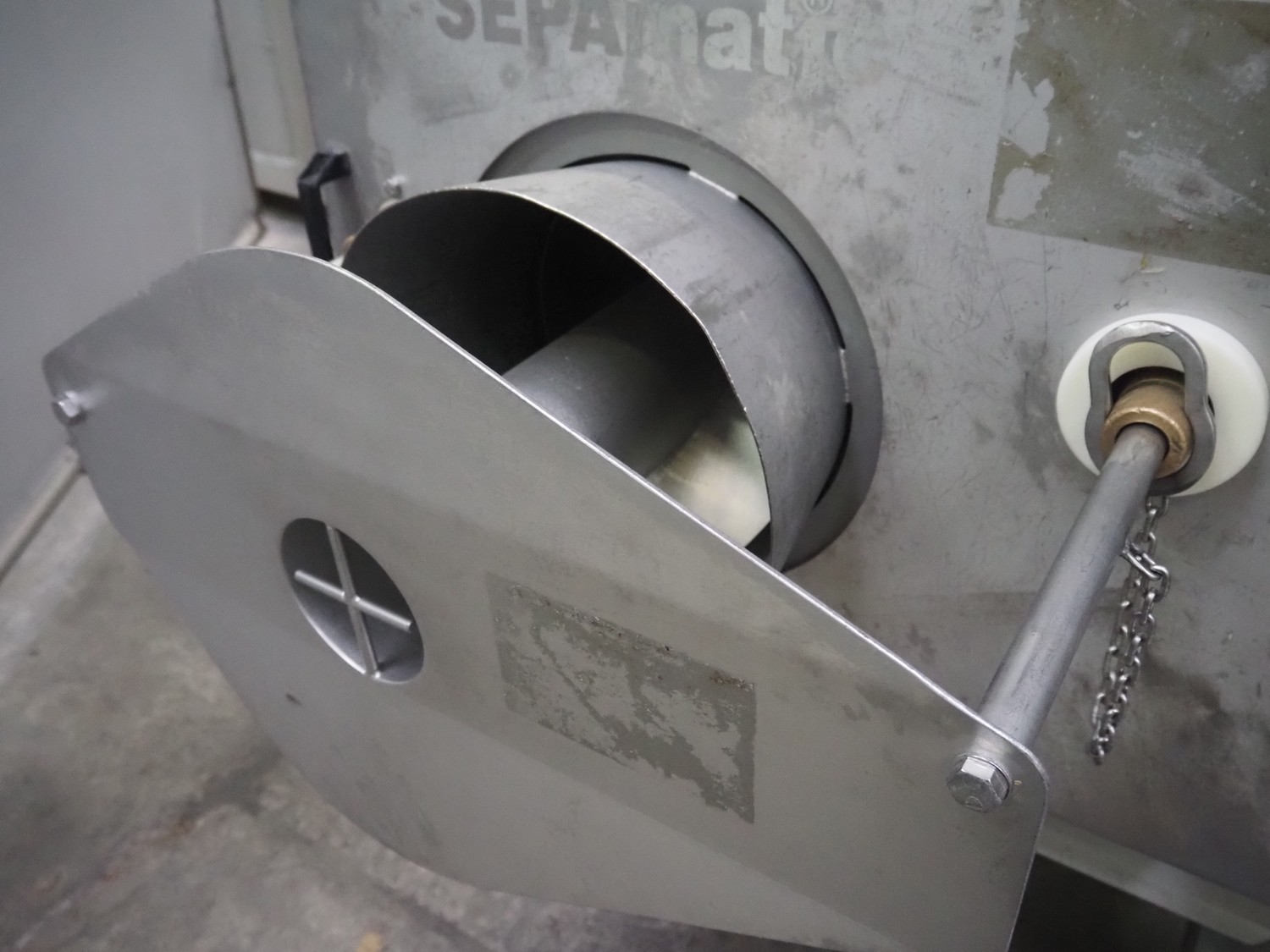 Grinder / separator line, consisting of: Seydelmann mixer-grinder with lifter for 200 liter meat bins, type: MG160B, machine number: 92379-1, 380 V, 50 Hz, 70 A, plate diameter: 160 mm, dimensions: 2000 mm x 1700 mm x 2200 mm.Switch cabinet, dimensions: 1230 mm x 1000 mm x 600 mm.Mobile elevating belt, s/s frame, plastic belt, belt width: 370 mm, elevating height: 1950 mm, total dimensions: 2950 mm x 850 mm x 2080 mm.Sepamatic separator, type: SEPA 1200, machine number: 195712, 400 V, 50 Hz, 12 A, 6 kW, 24 volt, plastic belt, belt width: 180 mm, perforations: 3 mm, total dimensions: 1500 mm x 1400 mm x 1750 mm.S/s trolley with extra drum, perforations: 4 mm, total dimensions: 850 mm x 700 mm x 1100 mm.