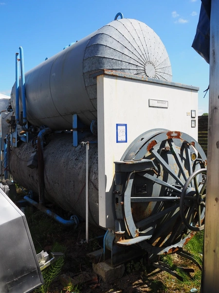 Stock Rotomat autoclave, type: RE 4, fabrication number: 39812-1, year of construction: 1990, volume: 5000 liter, steam heated, dimensions: 5500 mm x 1800 mm x 3100 mm. Including 4 baskets.