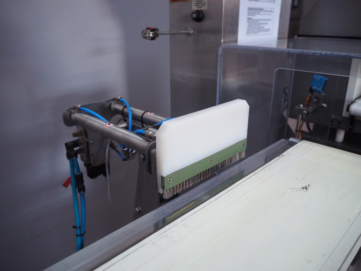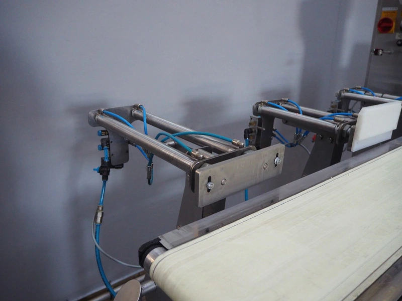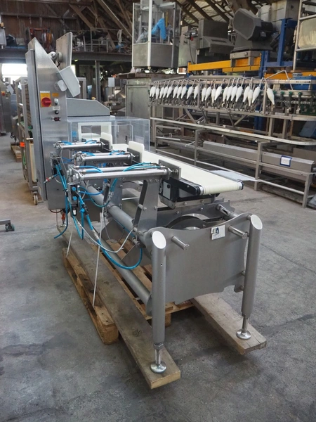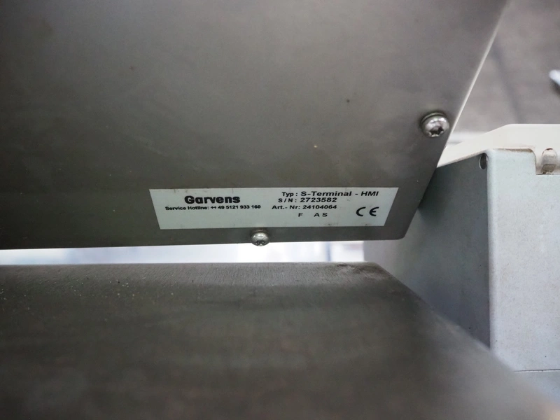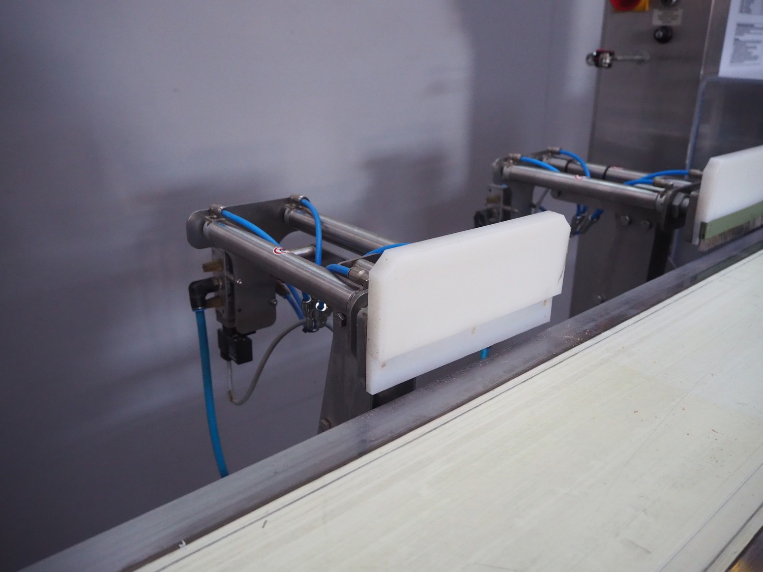 Garvens Mettler Toledo checkweigher and metal detector with 3 rejectors, type: S-Terminal - HMI, number: 24104064, plastic belt, belt width: 185 mm, clearance: 250 mm x 110 mm, total dimensions: 2500 mm x 1000 mm x 1850 mm. Missing checkweigher.