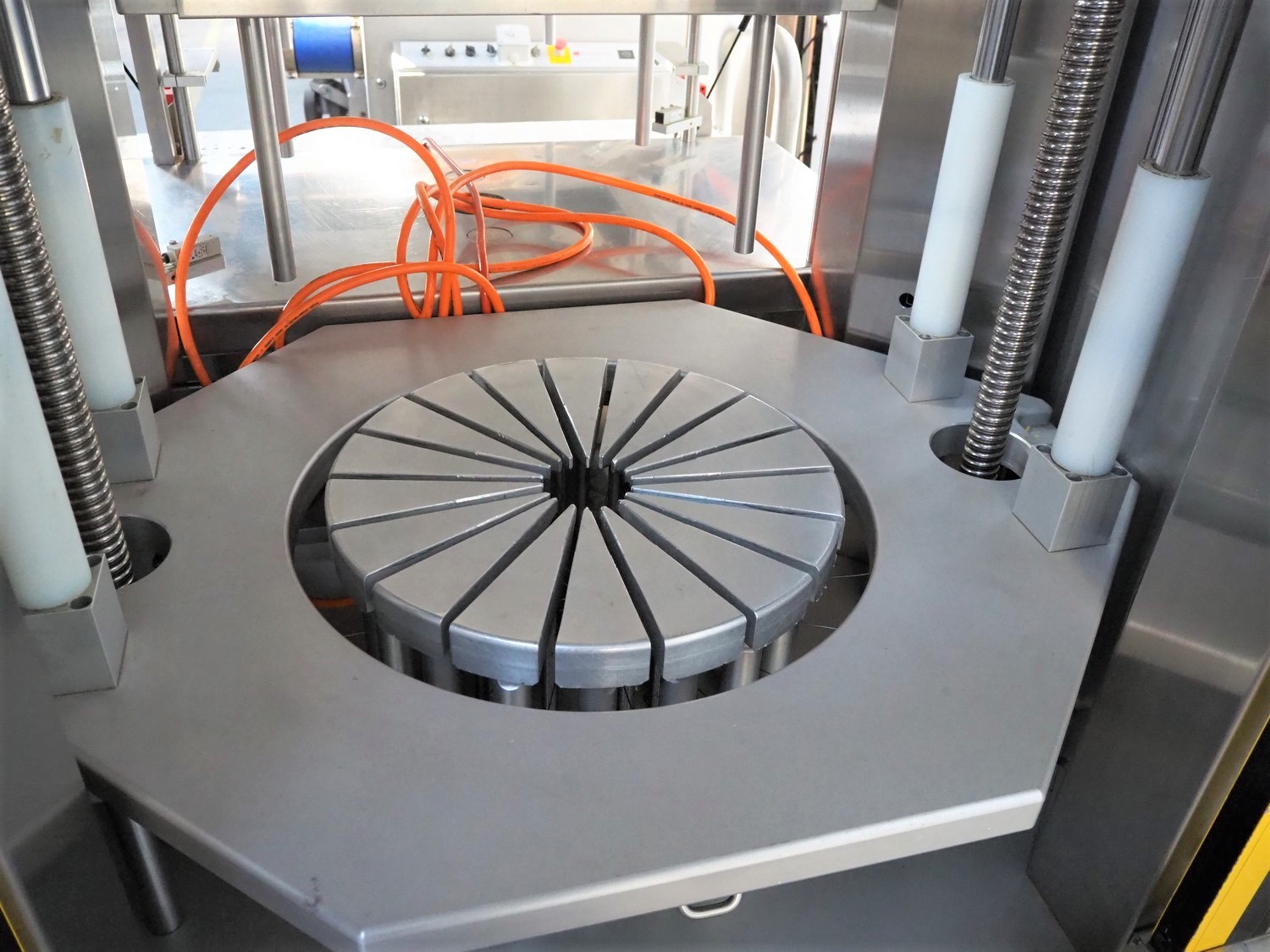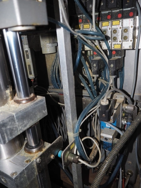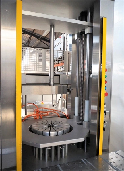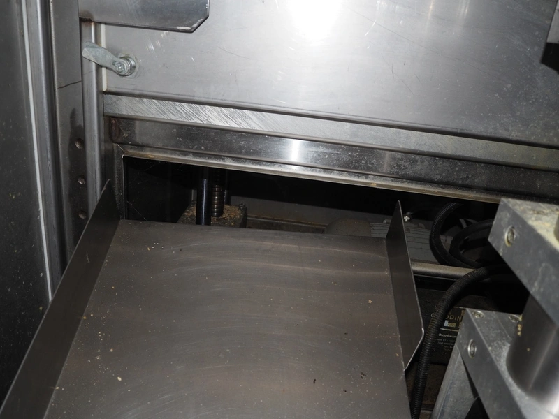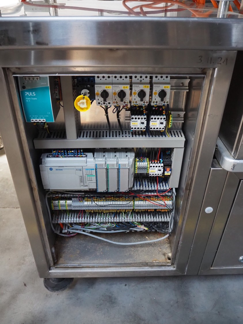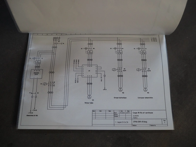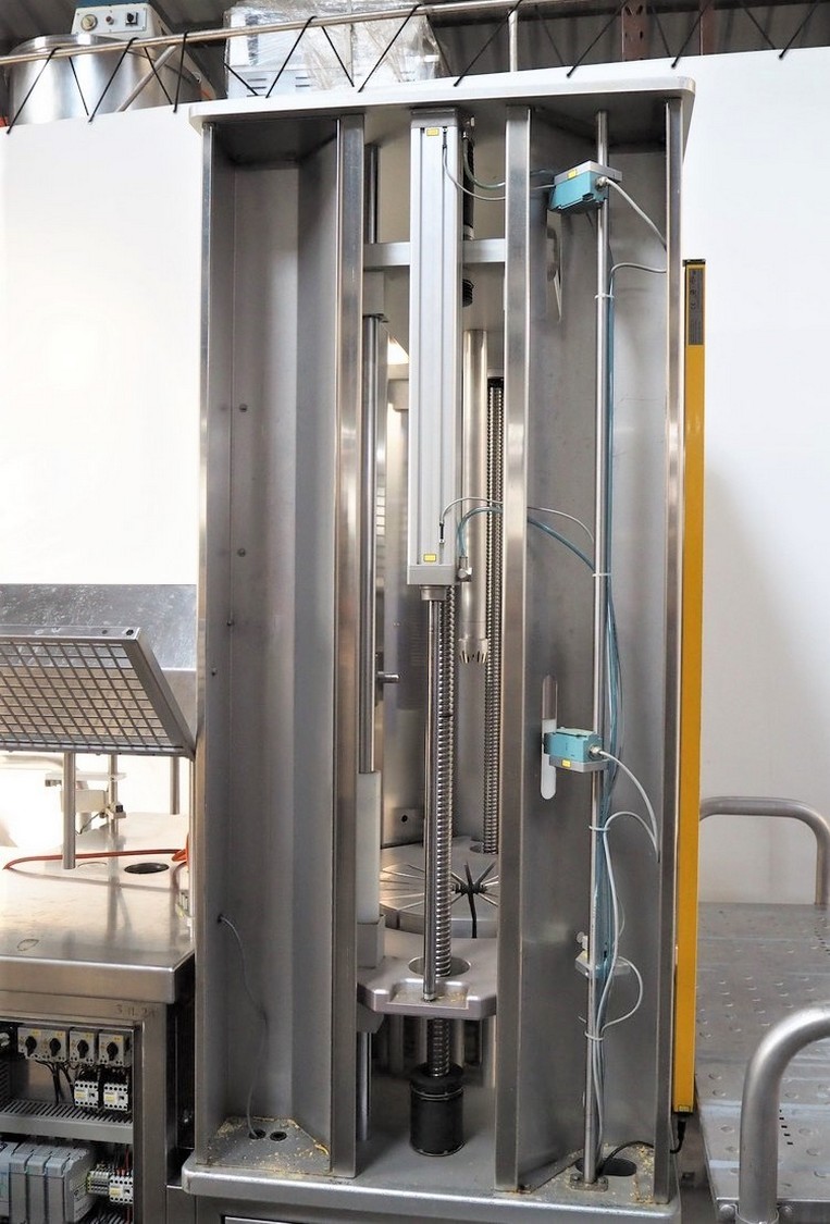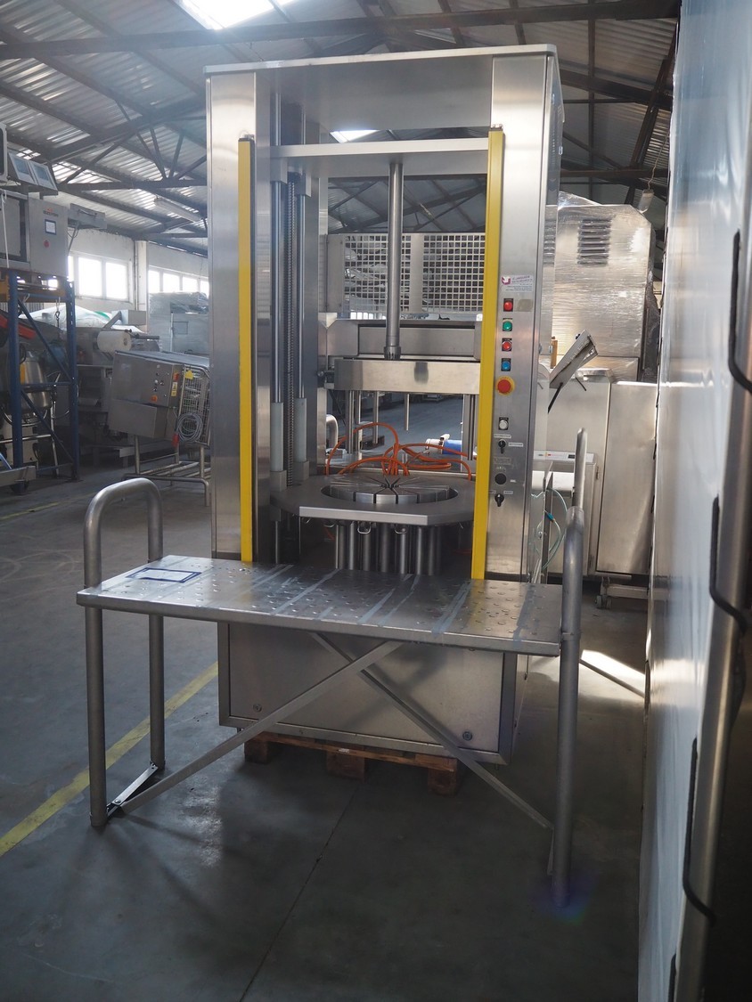 C. Jaquier cheese slicer, type: CP18, year of construction: 2001, diameter plate: Ø 440 mm, total dimensions: 2200 mm x 1550 mm x 2390 mm. Including 2 tables, dimensions : 1040 mm x 560 mm x 1400 mm.