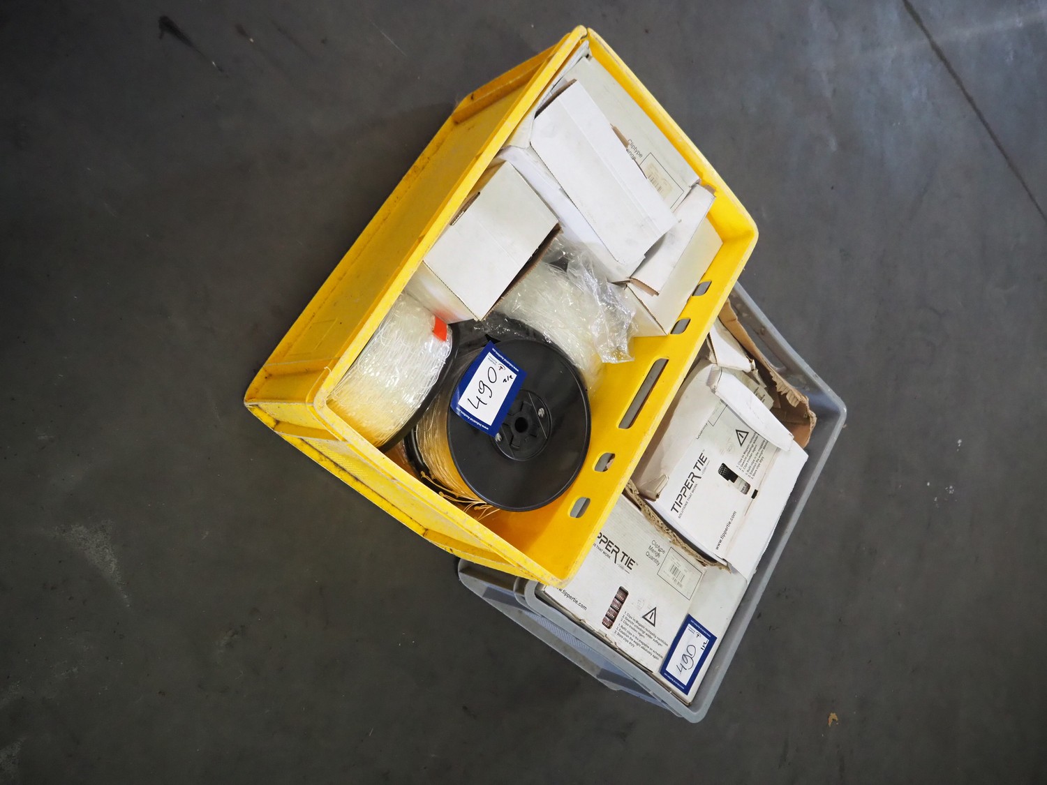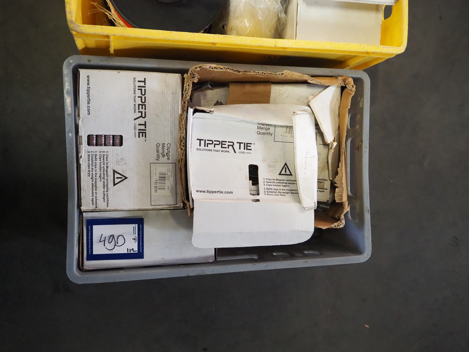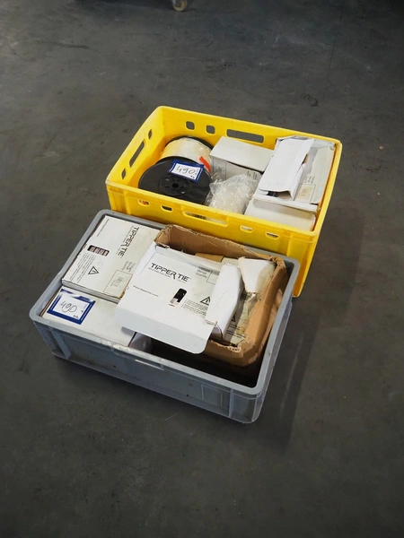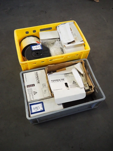 2 crates with large amount of Tipper Tie Technopack clips and loops, type clip: G200.