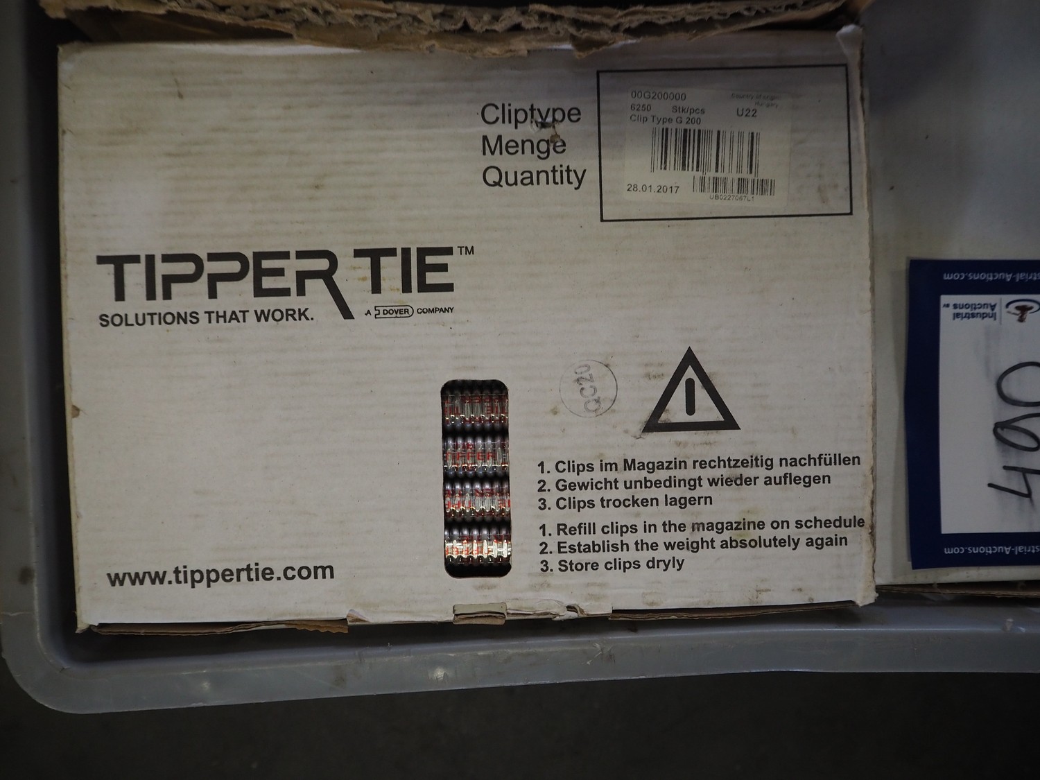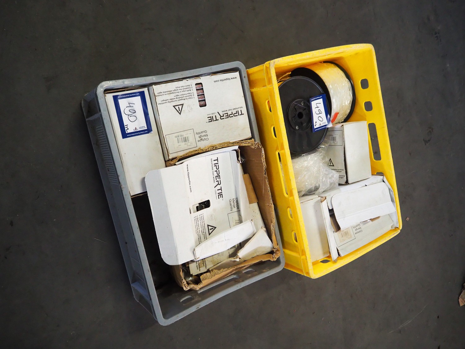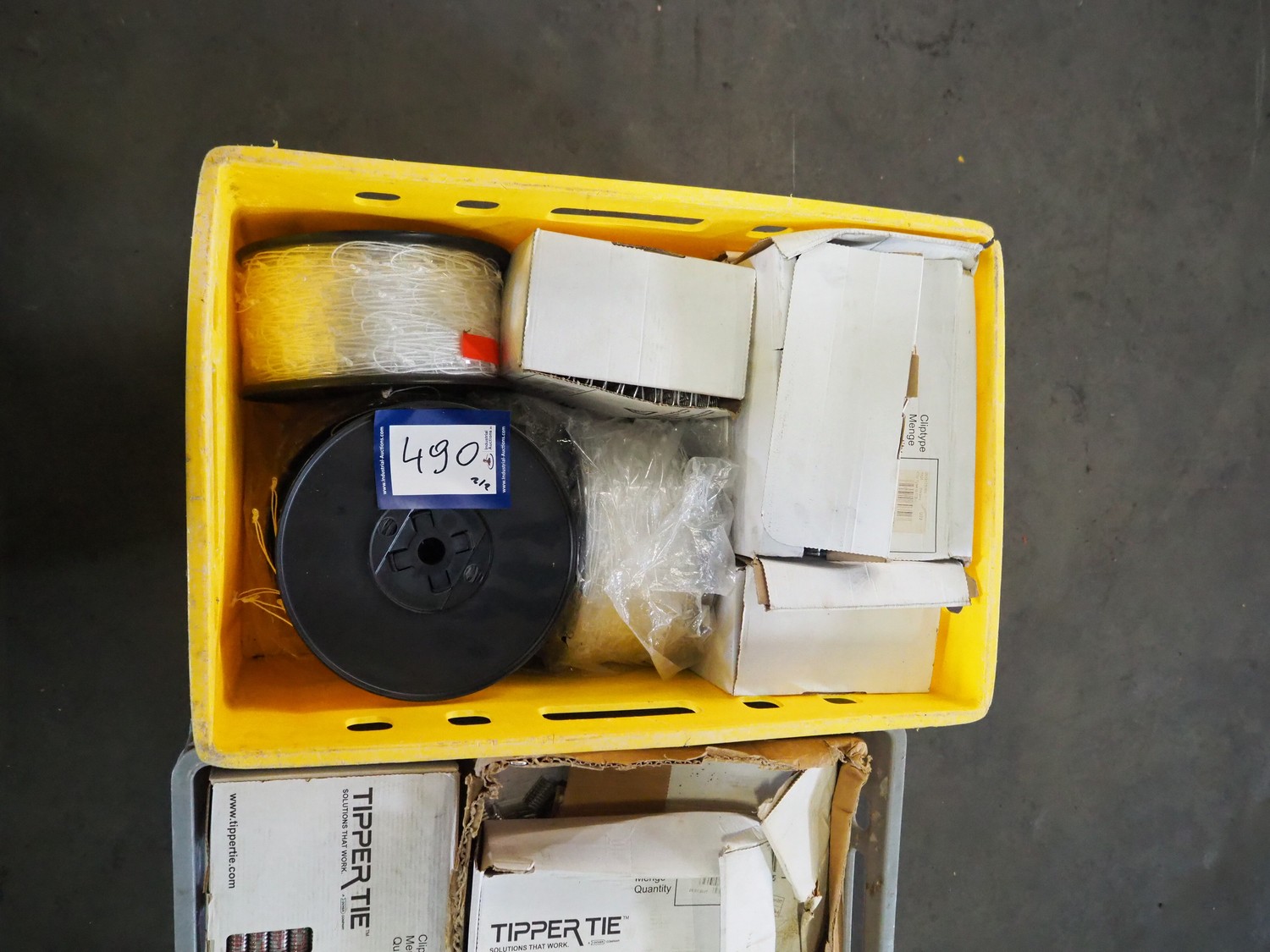 2 crates with large amount of Tipper Tie Technopack clips and loops, type clip: G200.