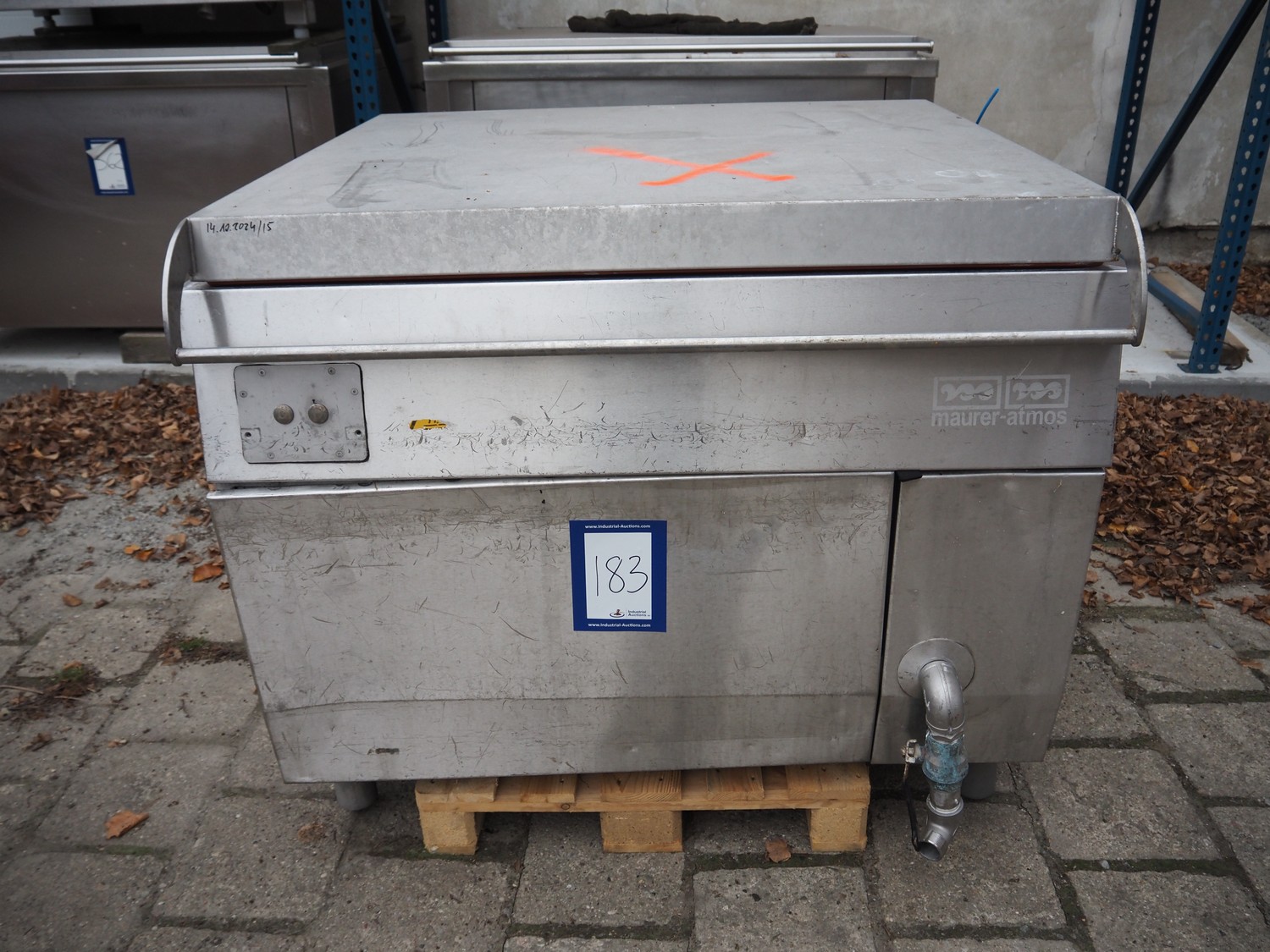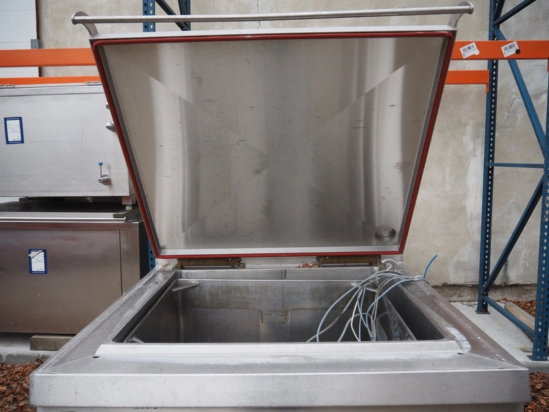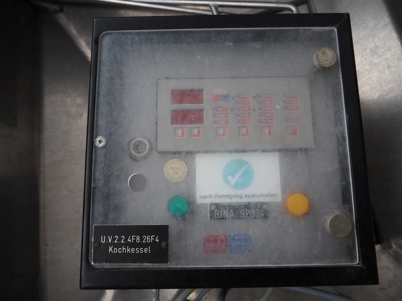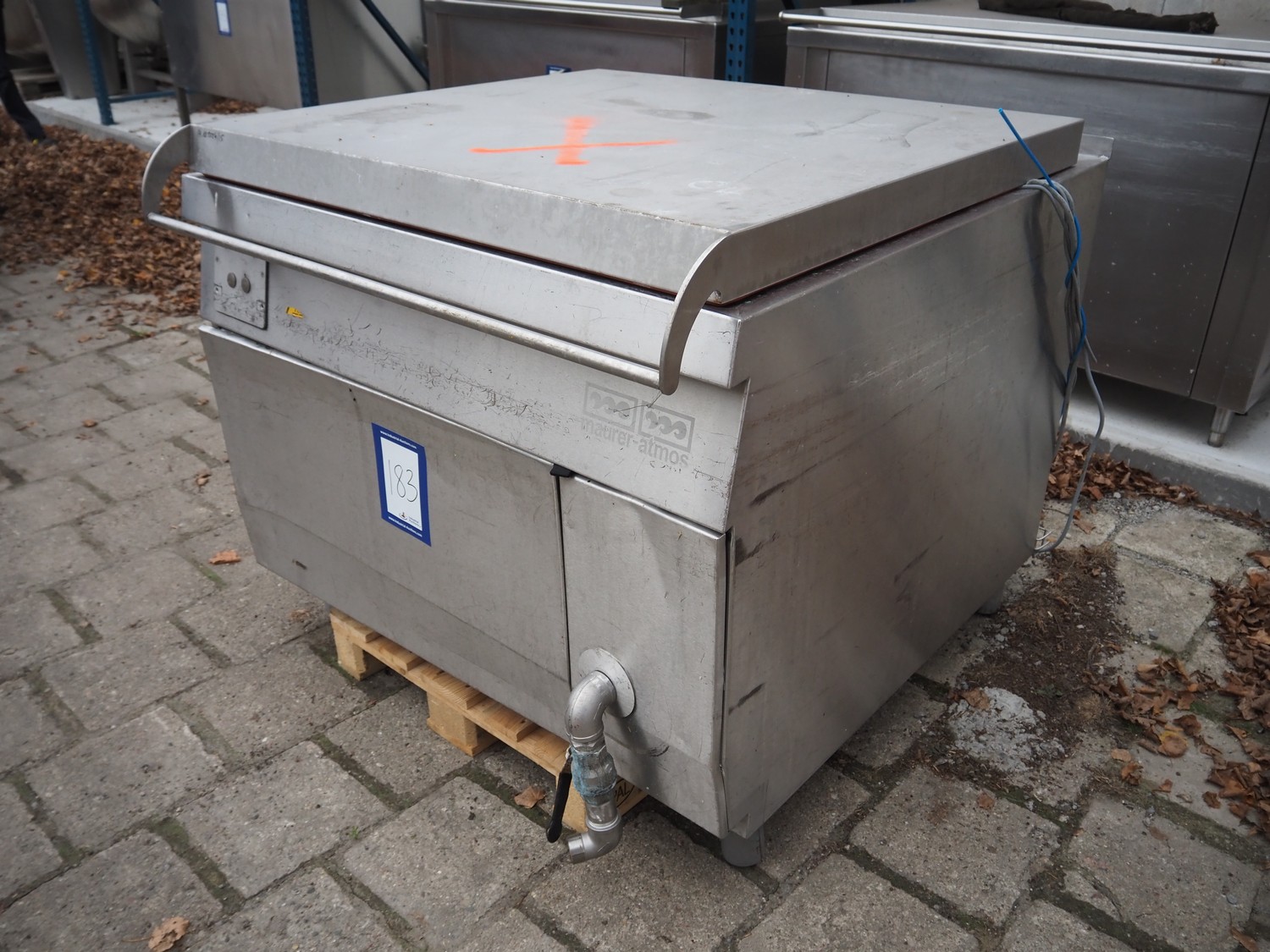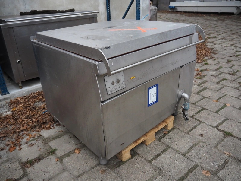 Mauer-Atmos cooking vessel, inside dimensions: 1000 mm x 900 mm x 650 mm, total dimensions: 1300 mm x 1450 mm x 1150 mm.