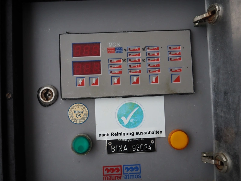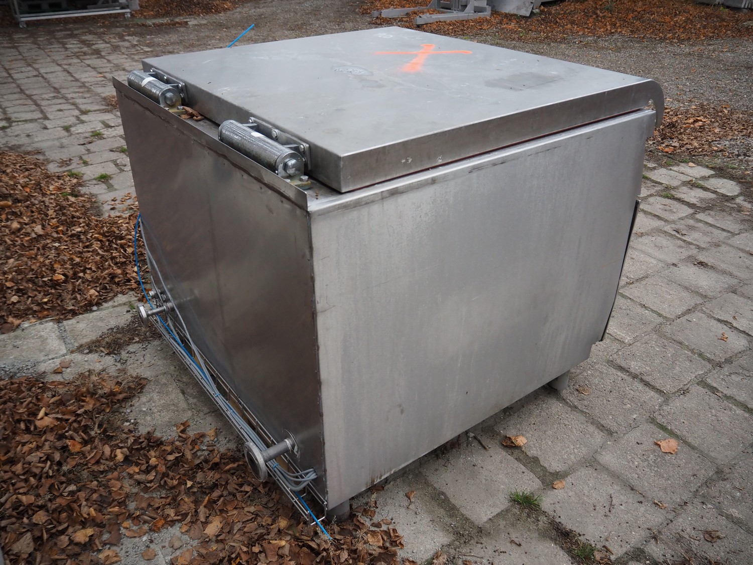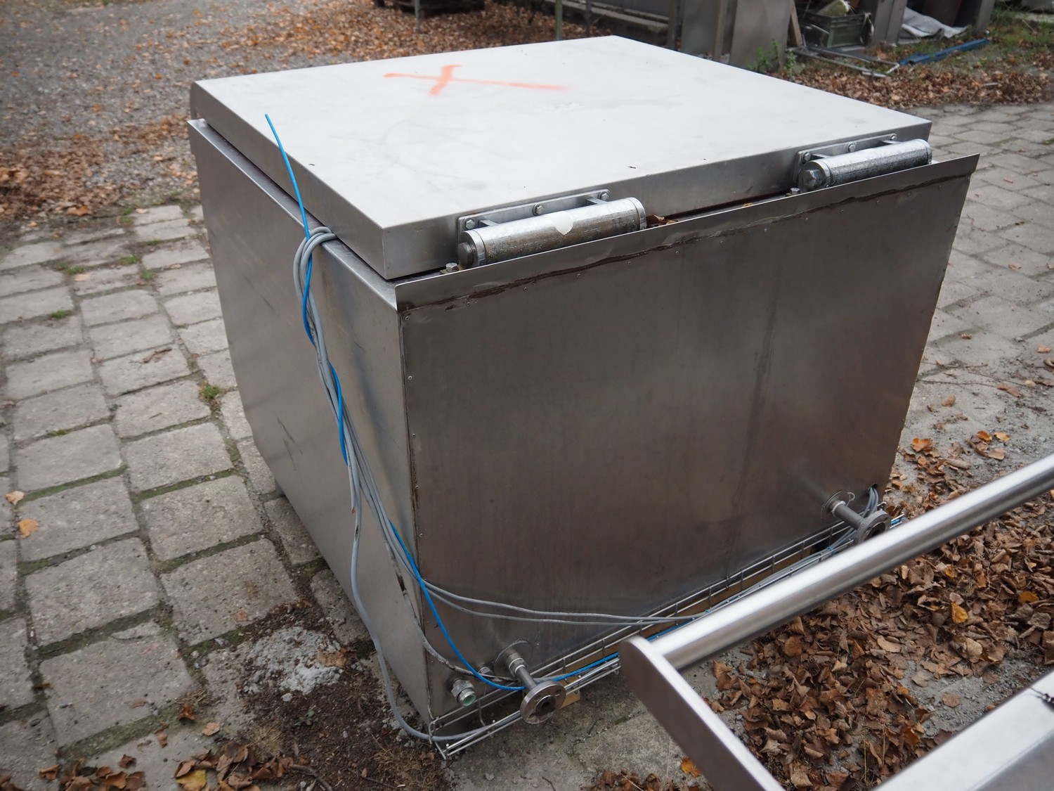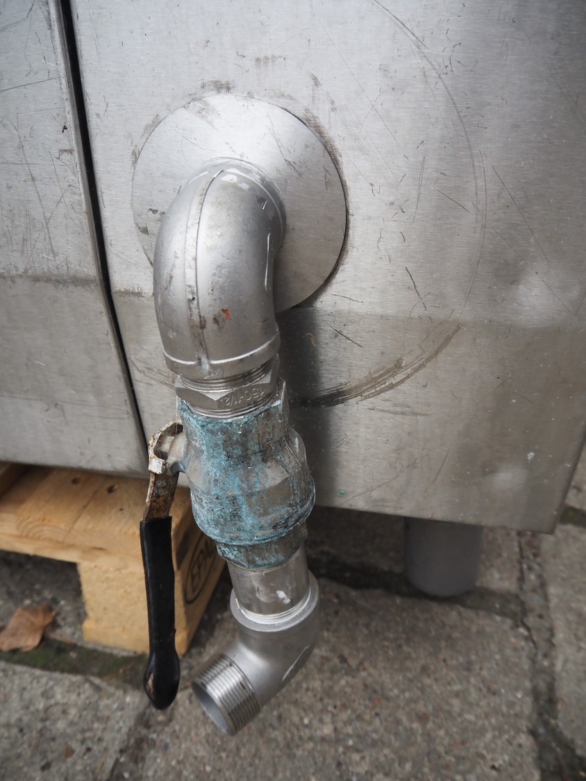 Mauer-Atmos cooking vessel, inside dimensions: 1000 mm x 900 mm x 650 mm, total dimensions: 1300 mm x 1450 mm x 1150 mm.