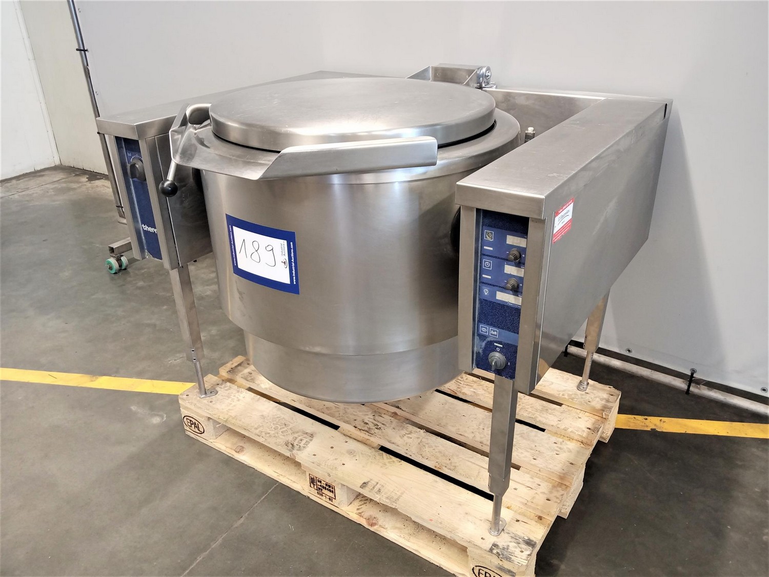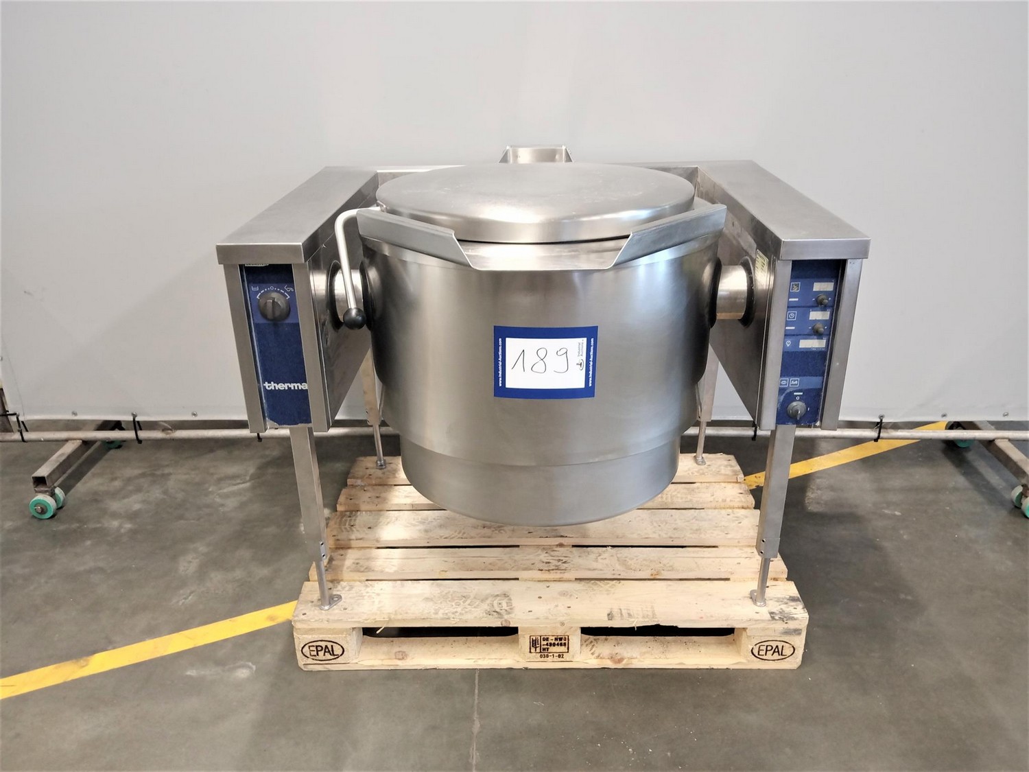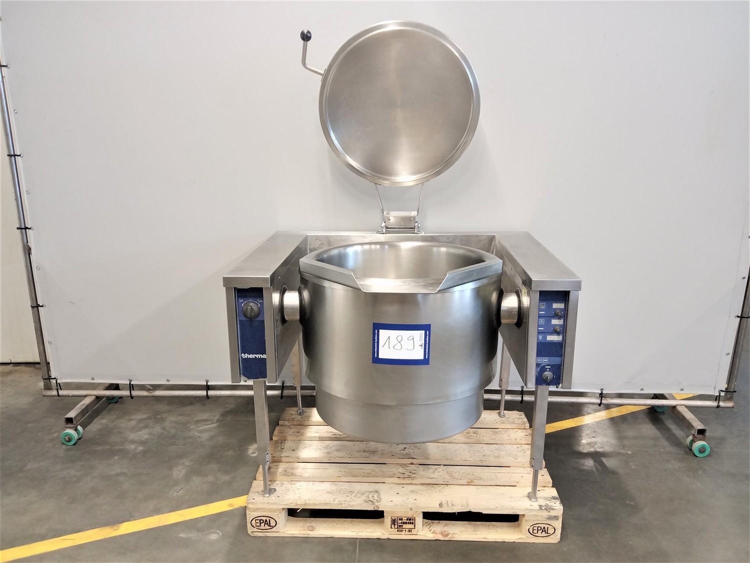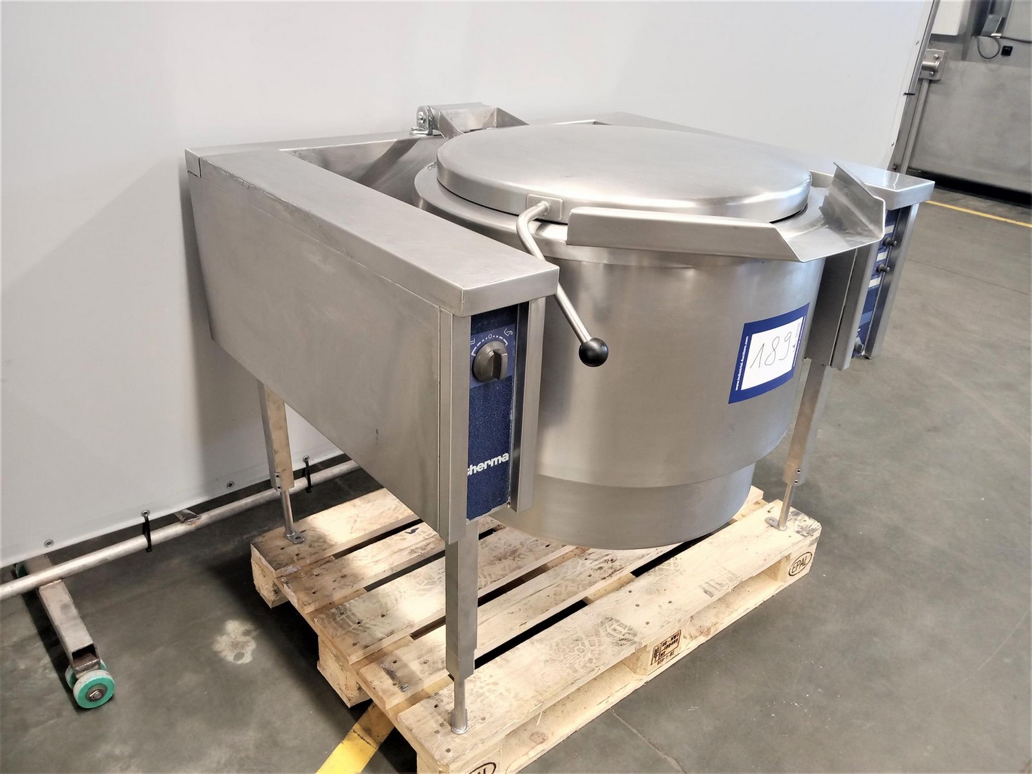 Therma tiltable cooking vessel, type: BOT100E.MC35.W94, serial number: 70700395, 400 V, 3 Ph, 50 Hz, 18.2 kW, 26 A, volume: 100 liter, dimensions: 1200 mm x 1080 mm x 1000 mm.